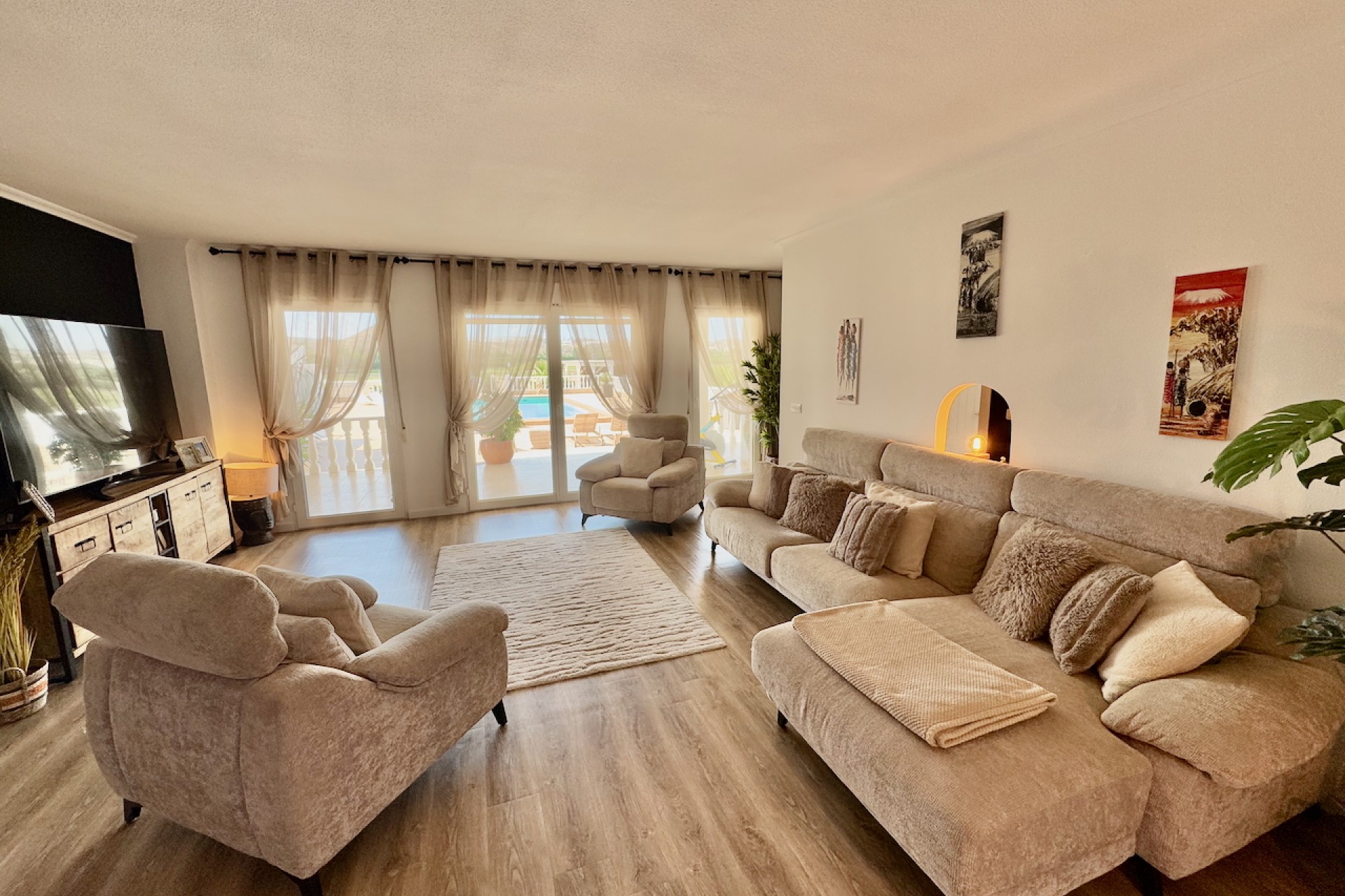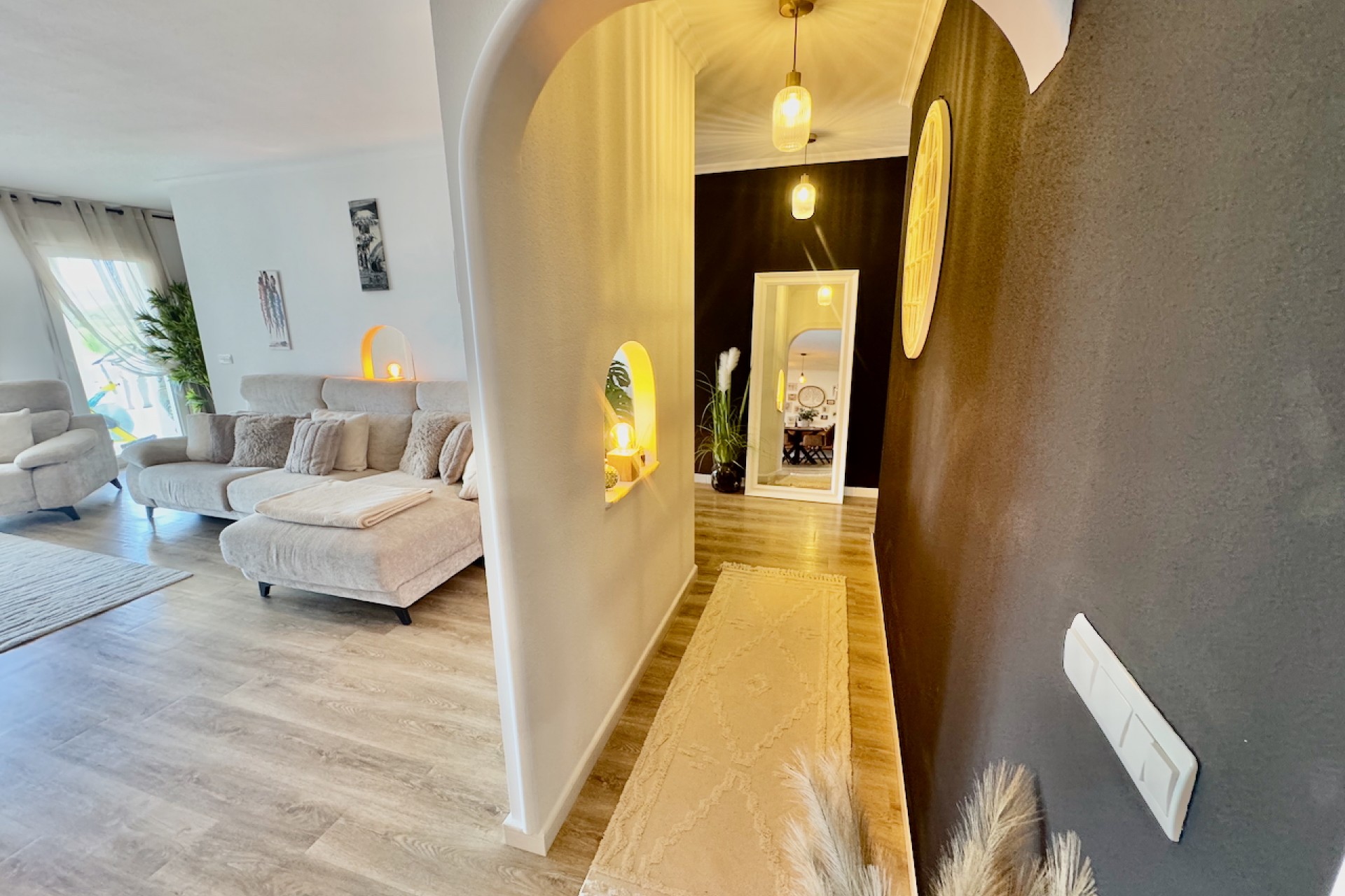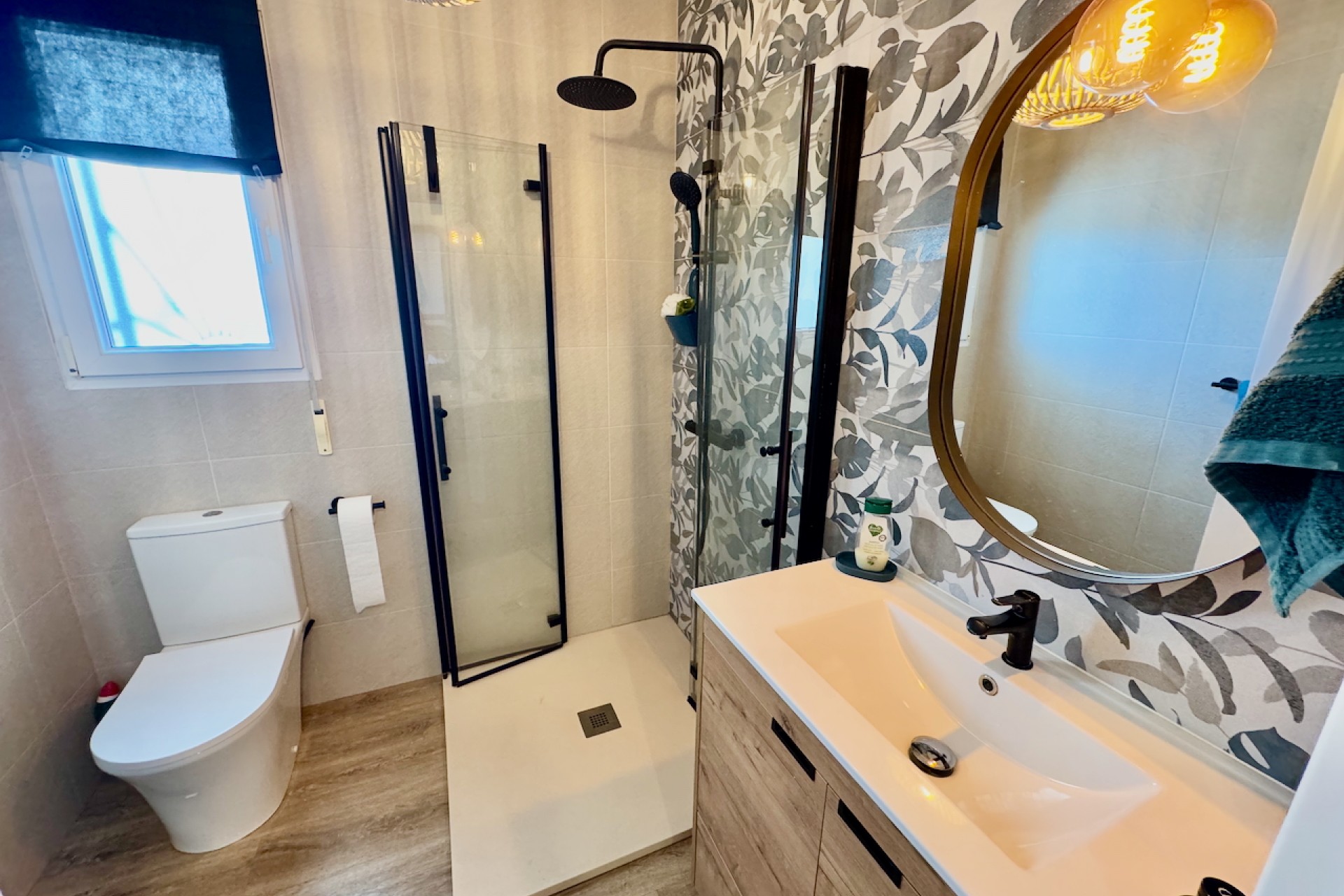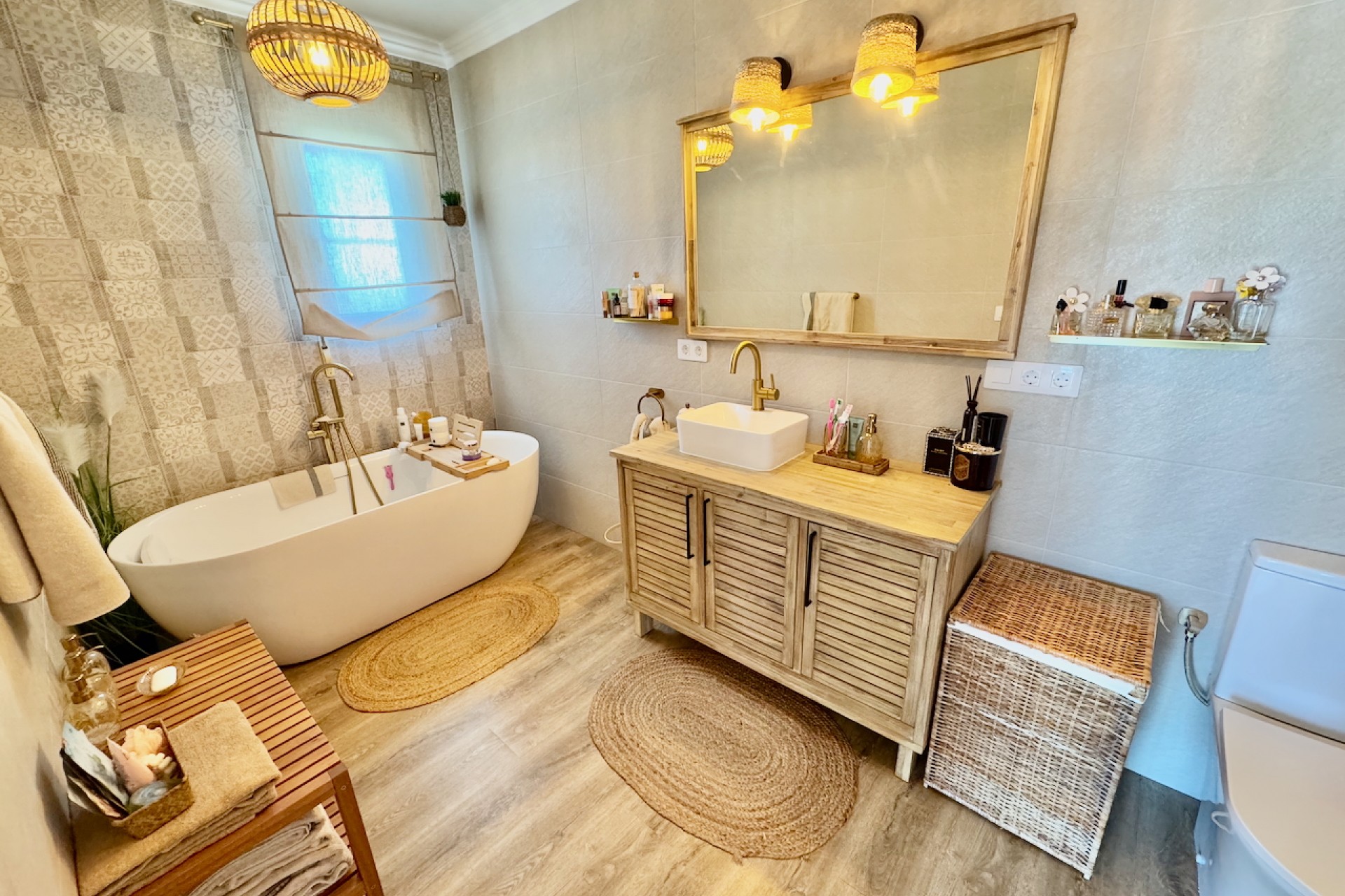 La villa principal , de 240 m² , ha sido completamente modernizada con los más altos estándares. Cuenta con una elegante cocina americana , una espaciosa y moderna sala de estar y tres amplios dormitorios dobles con armarios empotrados. La casa incluye tres baños de lujo , dos de ellos en suite, diseñados para crear un ambiente de spa. Un lavadero independiente aporta comodidad para el día a día.