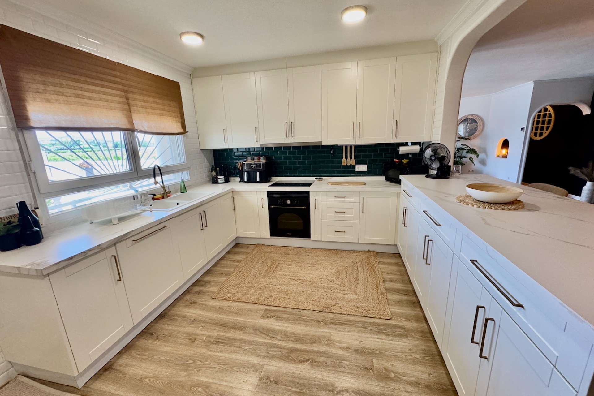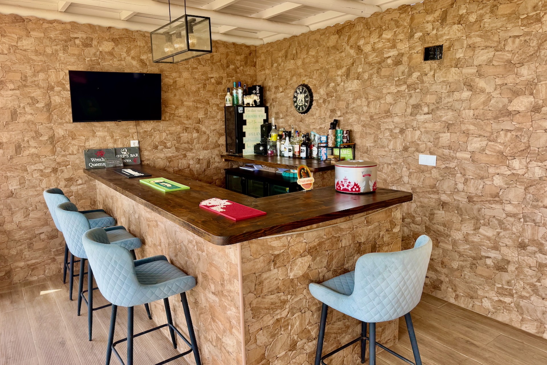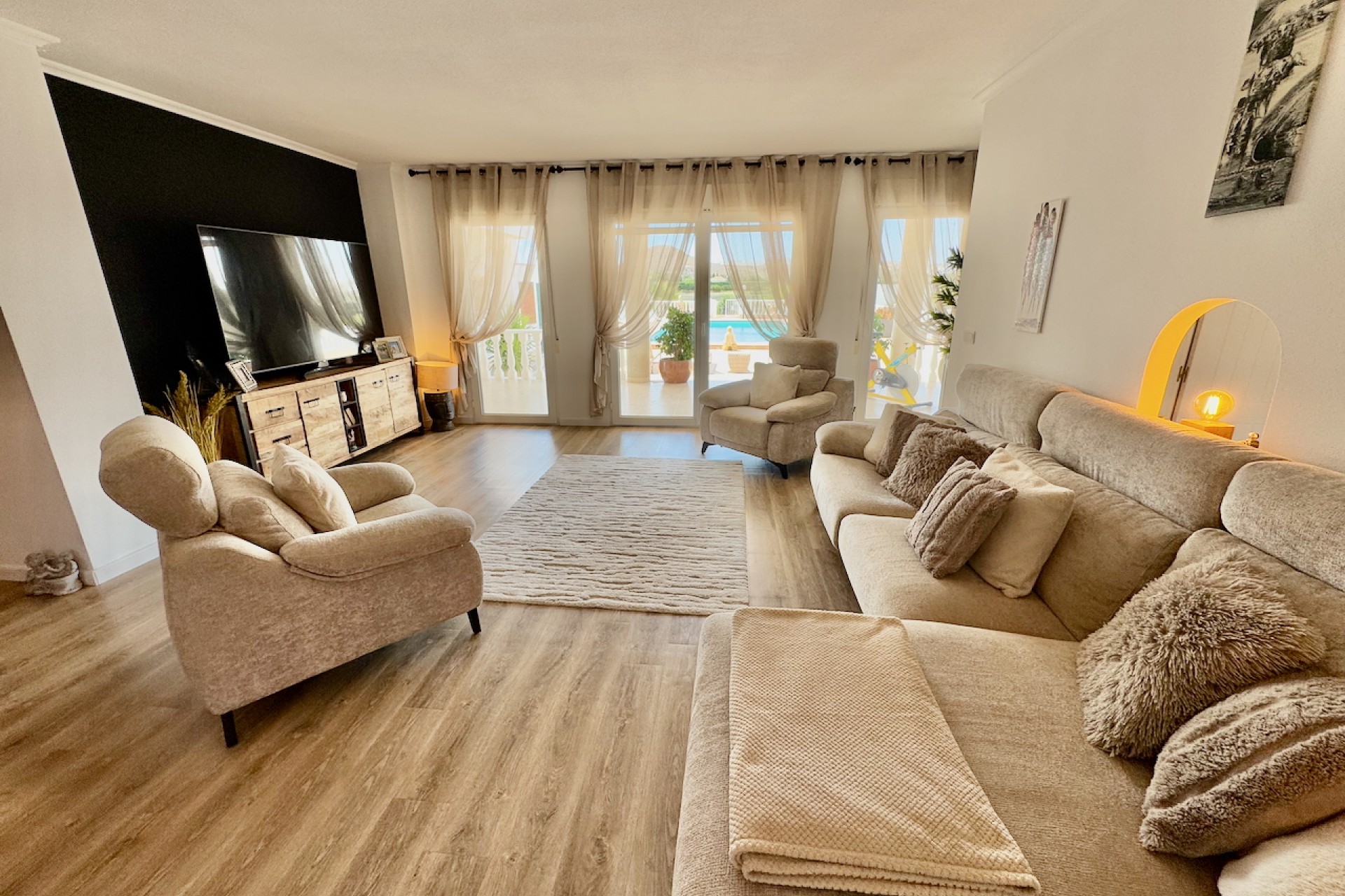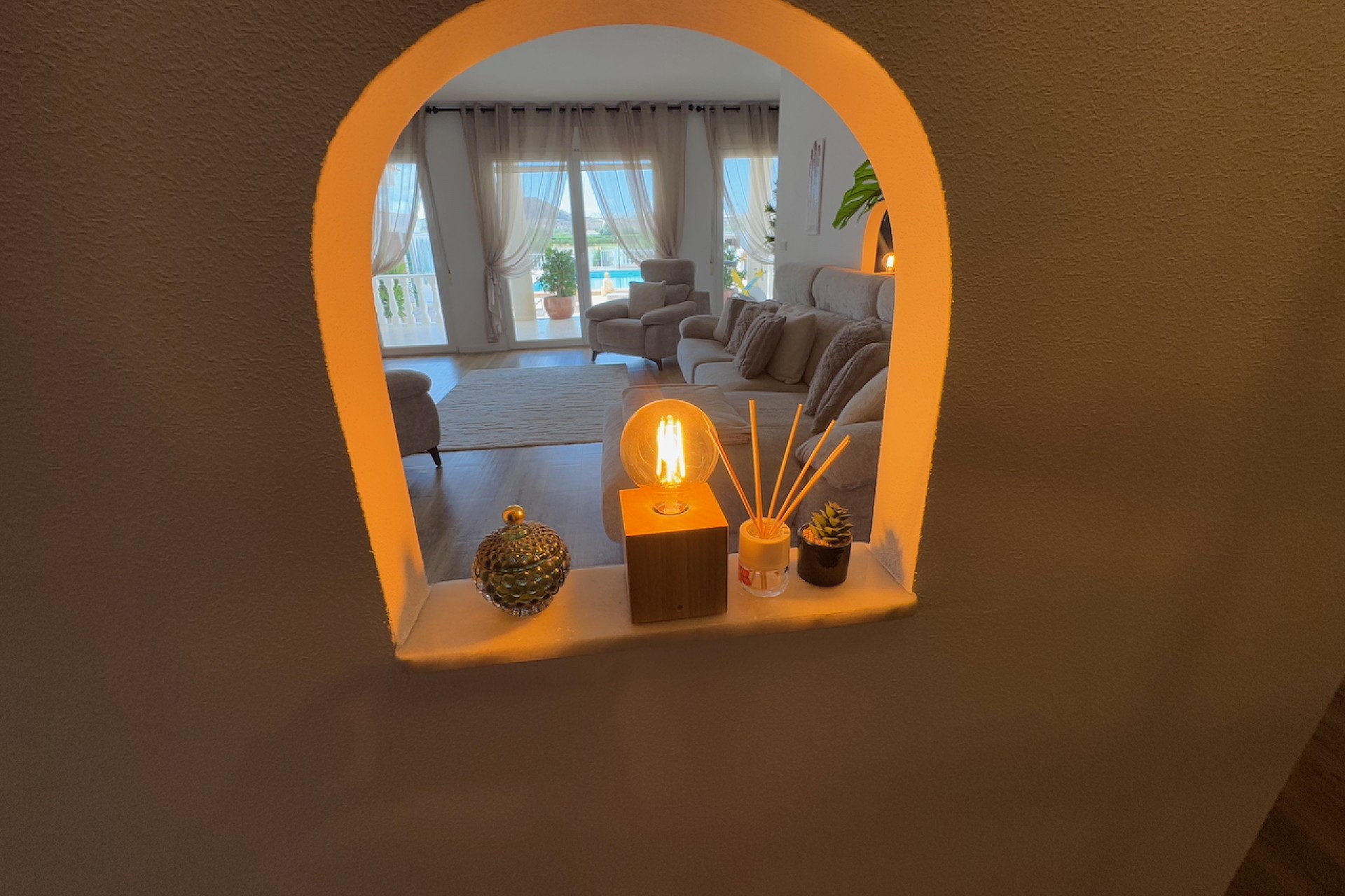 La villa principal , de 240 m² , ha sido completamente modernizada con los más altos estándares. Cuenta con una elegante cocina americana , una espaciosa y moderna sala de estar y tres amplios dormitorios dobles con armarios empotrados. La casa incluye tres baños de lujo , dos de ellos en suite, diseñados para crear un ambiente de spa. Un lavadero independiente aporta comodidad para el día a día.