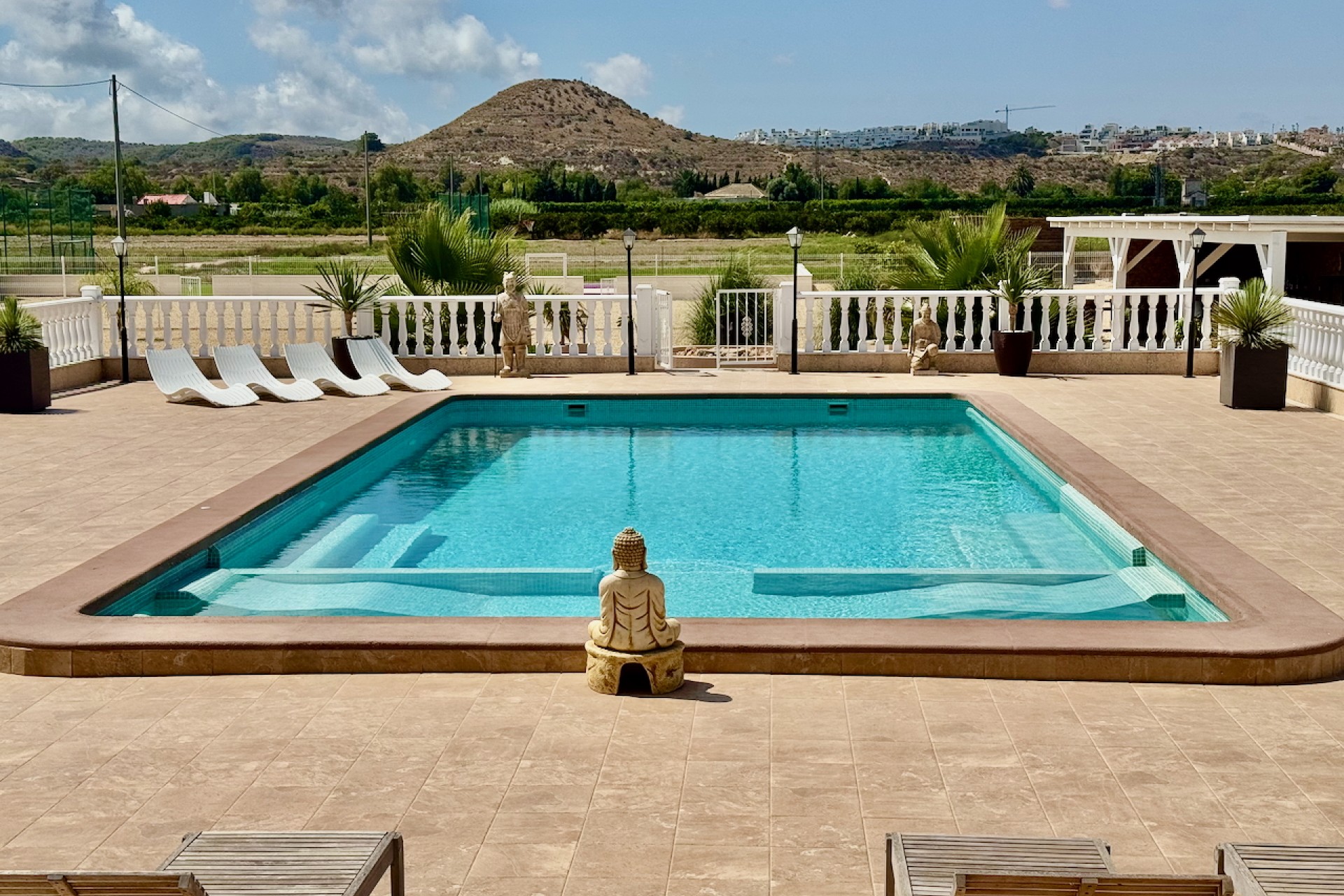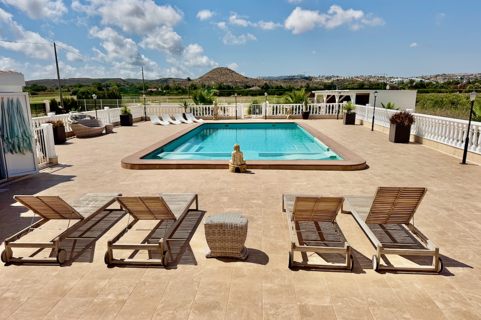 Esta impecable villa rural, totalmente reformada y con orientación sur, se encuentra en una amplia parcela de 10.300 m² en la apacible campiña de Rojales, con impresionantes vistas panorámicas a las montañas, los campos abiertos y los cítricos. Diseñada para una vida de lujo con un toque de encanto rústico, esta excepcional propiedad combina elegantes interiores con impresionantes exteriores.