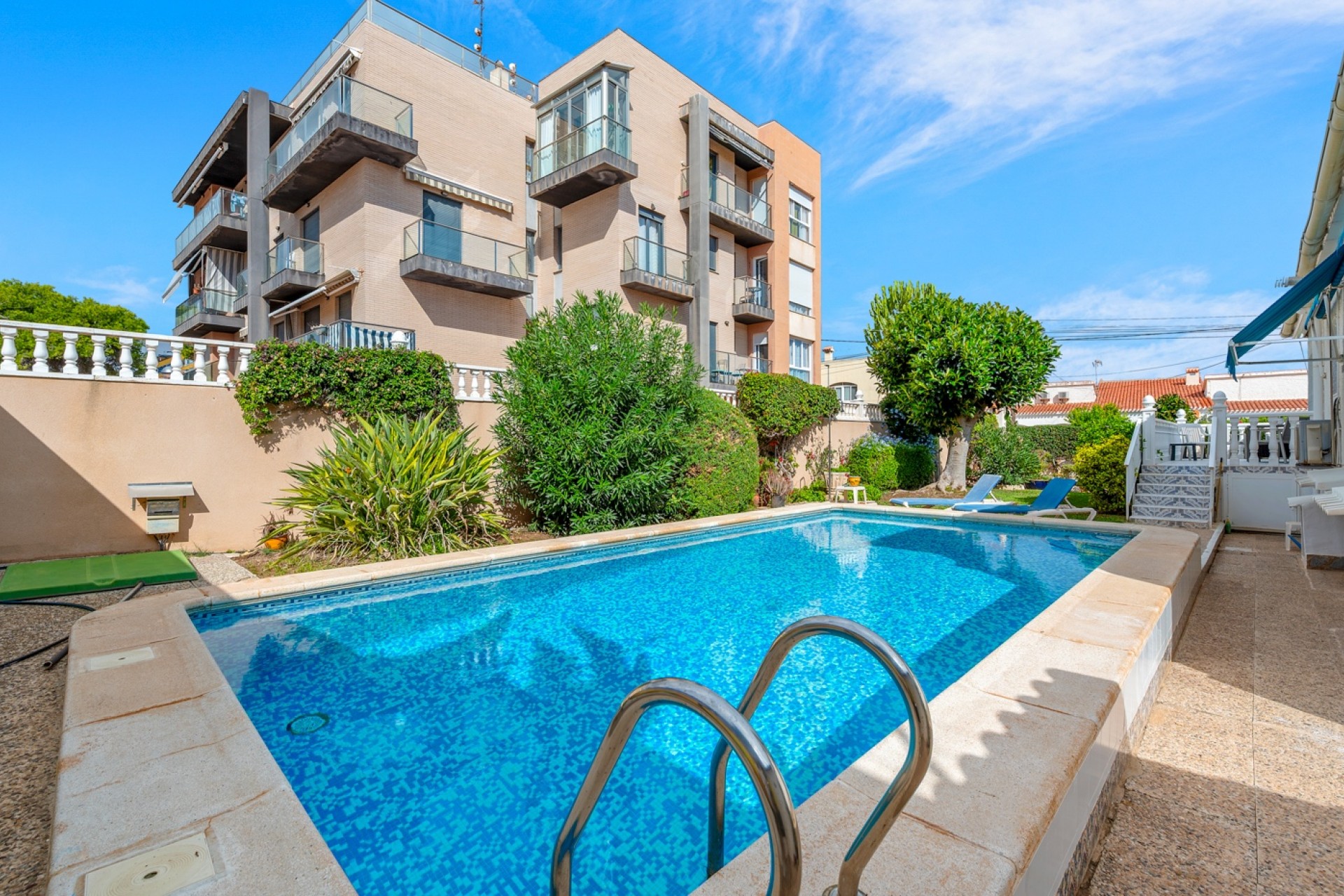 Situada en una parcela orientada al oeste de 457 m², el espacio exterior es ideal para disfrutar del estilo de vida mediterráneo. La hermosa piscina de 8 x 4 metros invita a refrescarse en los días cálidos, complementada por una ducha exterior y espacio para tumbonas. También hay un práctico trastero, zona de barbacoa y amplio espacio para comer al aire libre. En la parte delantera de la casa hay aparcamiento y una encantadora terraza que conduce a la entrada.