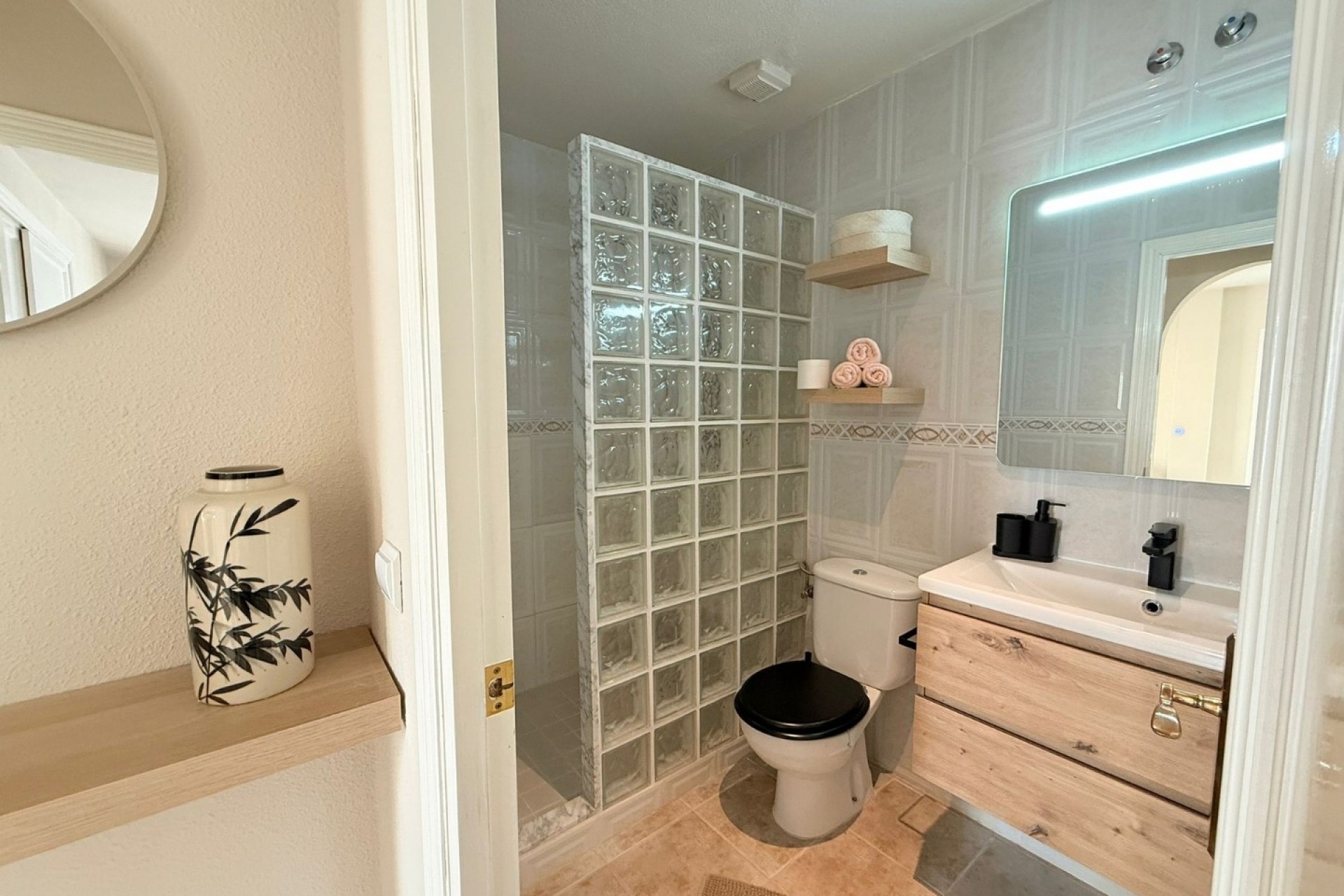 Descubra esta preciosa casa adosada «maite» renovada en Benijofar, donde se unen comodidad y flexibilidad. Esta vivienda le ofrece una distribución única con dos plantas independientes bajo un mismo techo, perfecta para quienes buscan espacio para la familia, invitados u oportunidades de inversión. Con cuatro amplios dormitorios y dos modernos cuartos de baño, disfrutará de todas las comodidades. En la planta superior encontrará una luminosa sala de estar con una amplia terraza con toldo, una cocina abierta, un dormitorio y un cuarto de baño. Se accede a la planta baja a través de una escalera exterior. Aquí encontrará una zona de estar independiente con una luminosa sala de estar con una moderna cocina abierta, 3 dormitorios y un cuarto de baño. La vivienda está completamente amueblada con muebles nuevos y elegantes y equipada con nuevas unidades de aire acondicionado para un clima interior agradable, independientemente de la estación del año.