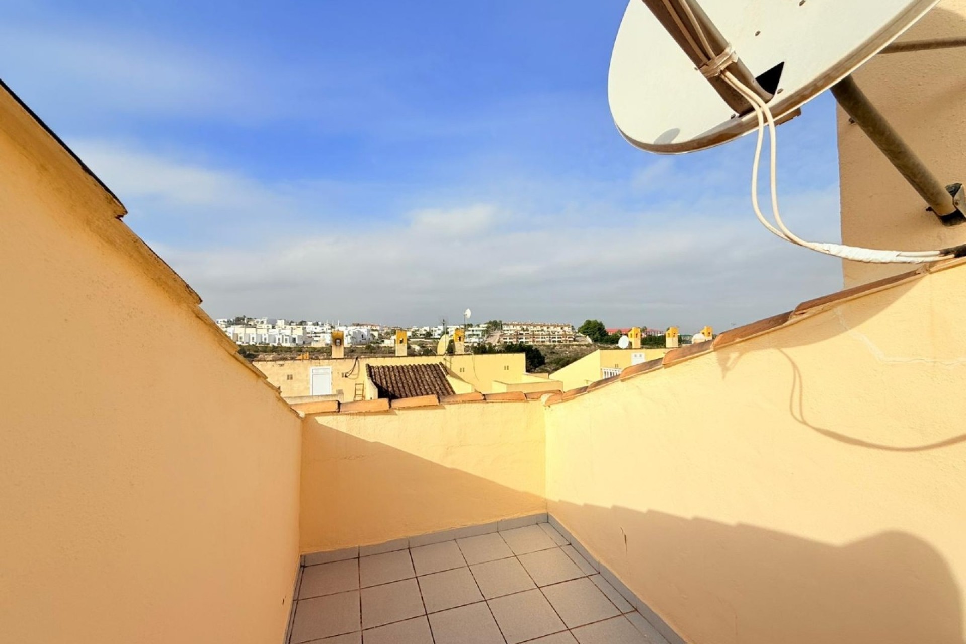 Las cocinas abiertas de ambas plantas están equipadas con electrodomésticos de alta calidad: frigoríficos, placas vitrocerámicas, campanas extractoras y hornos. Las amplias terrazas de la planta superior y la planta baja ofrecen mucho espacio para relajarse bajo el sol español. Además, la casa cuenta con un solárium, un balcón y un frondoso jardín para disfrutar al máximo de la vida al aire libre. A solo 25 metros se encuentra la preciosa piscina comunitaria, ideal para refrescarse y disfrutar de momentos sociales.