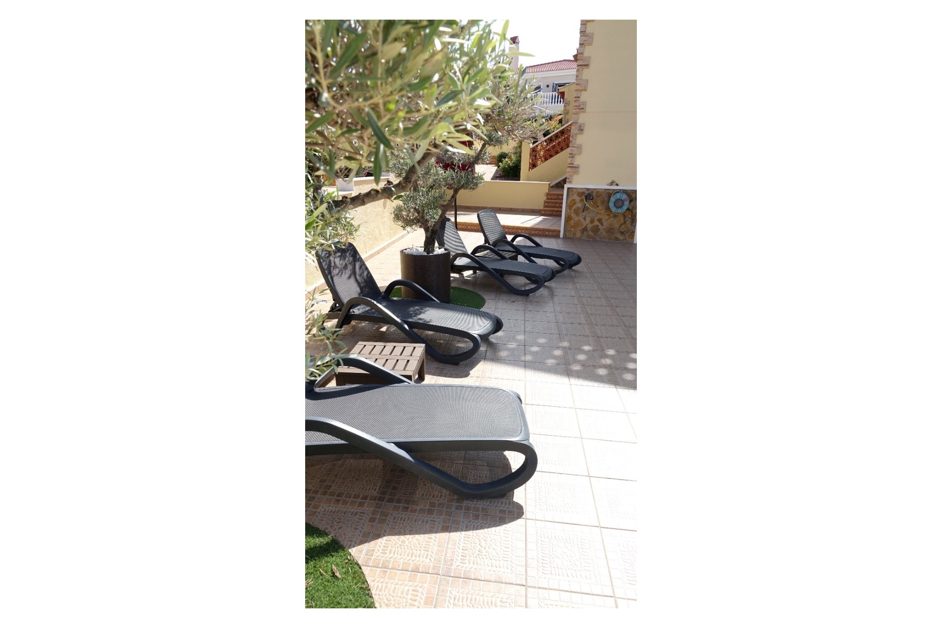 En el exterior, el jardín mediterráneo con piscina privada está diseñado para disfrutar del clima todo el año. Olivos, zonas de descanso y un entorno tranquilo crean una atmósfera perfecta de bienestar. Cada detalle refleja una construcción de alta calidad y una elegancia atemporal.