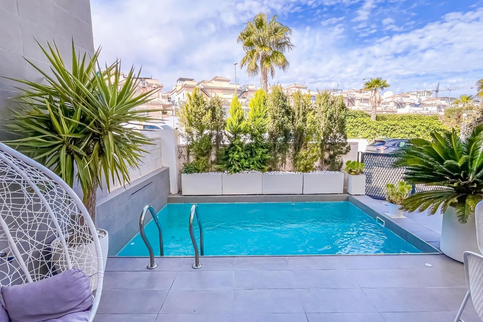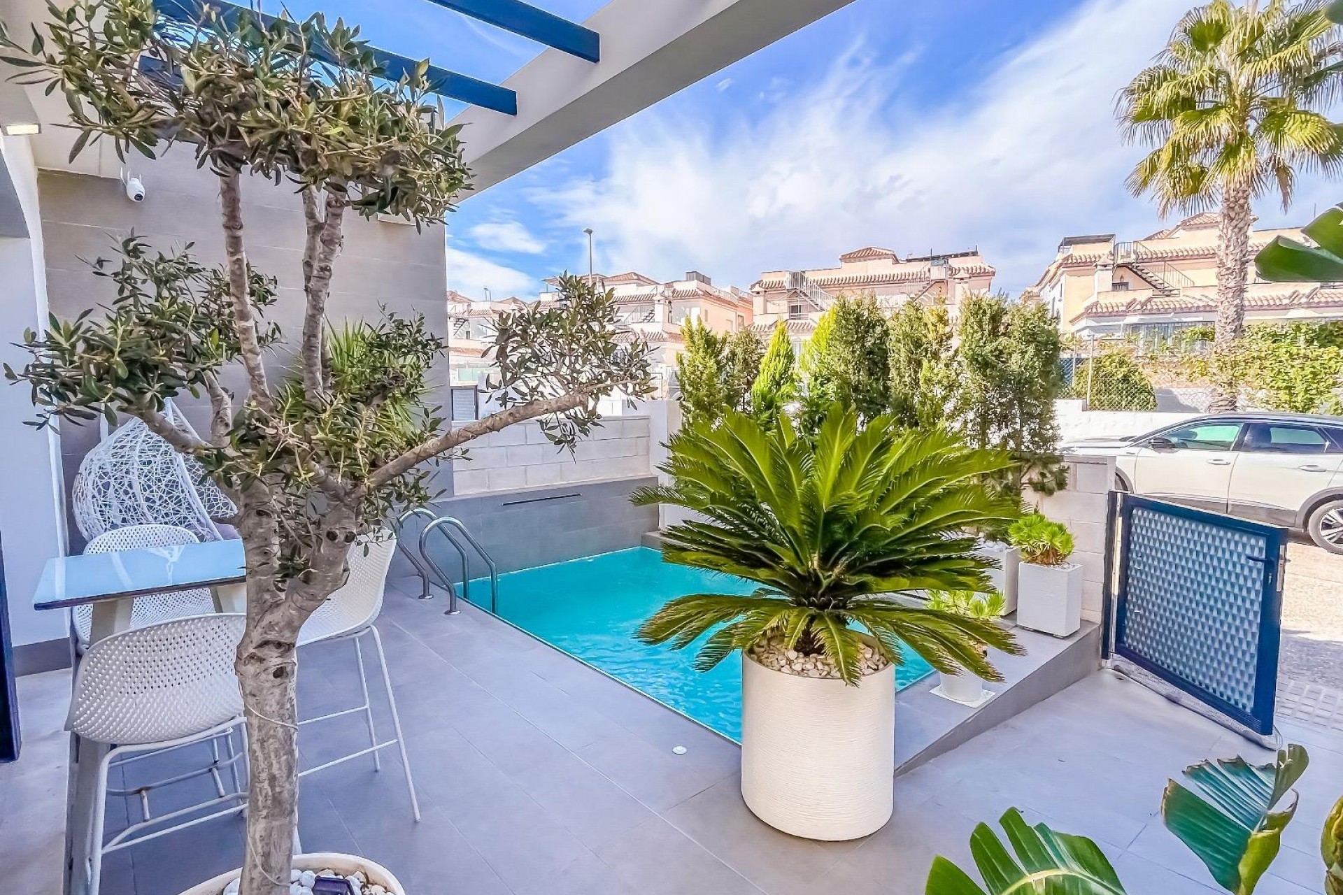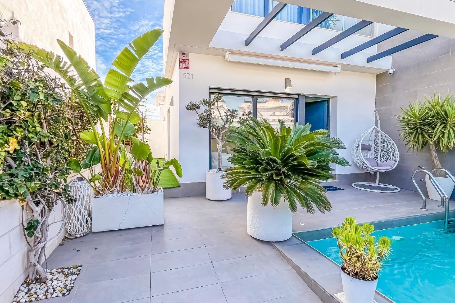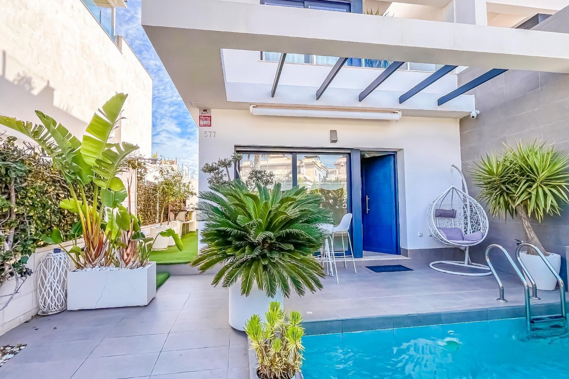 Casa/Chalet → Villa en Orihuela Costa, 98 m. de superficie, 3 habitaciones dobles, 3 baños.~Extras: aire acond. central, baño en suite, barbacoa, luminoso, patio, piscina propia, techos altos, terraza~~
