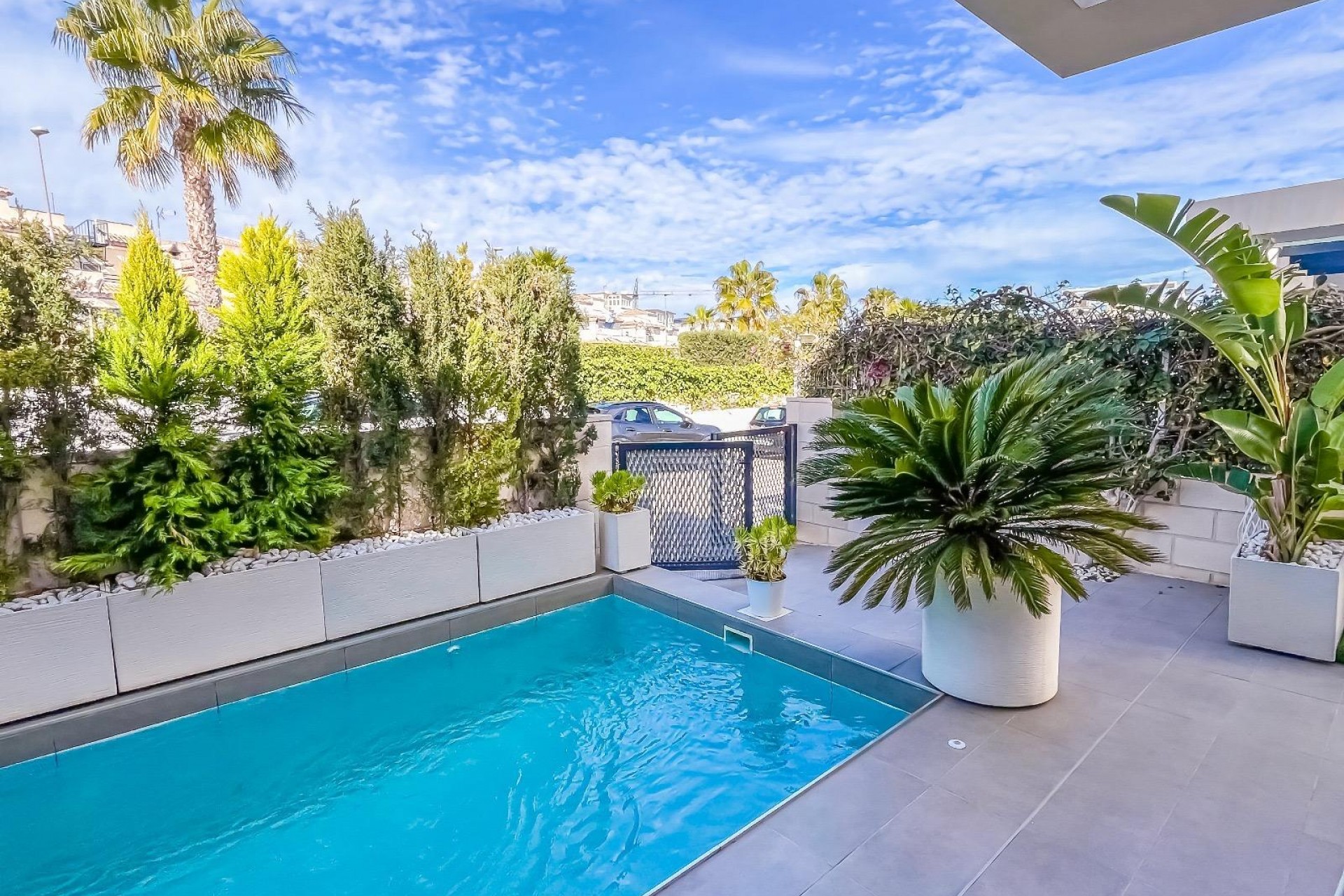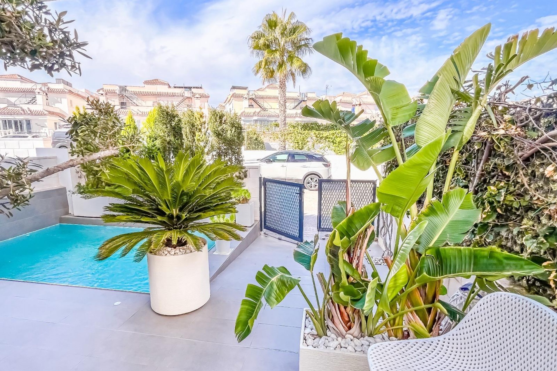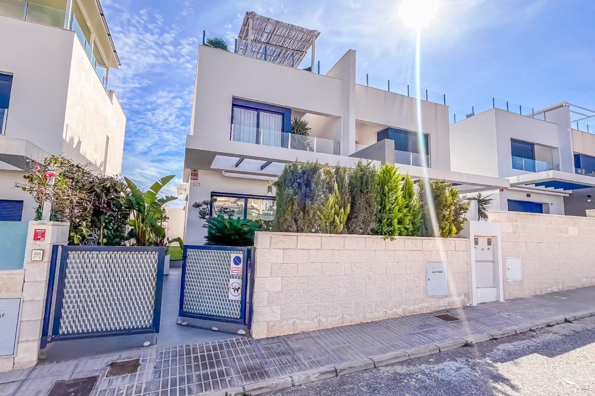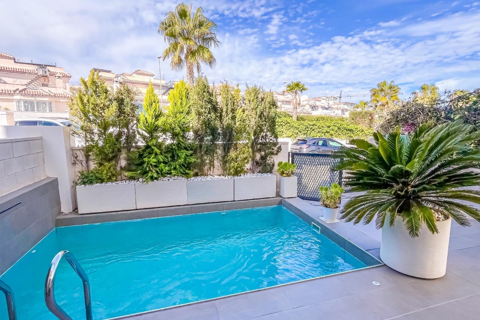 Casa/Chalet → Villa en Orihuela Costa, 98 m. de superficie, 3 habitaciones dobles, 3 baños.~Extras: aire acond. central, baño en suite, barbacoa, luminoso, patio, piscina propia, techos altos, terraza~~