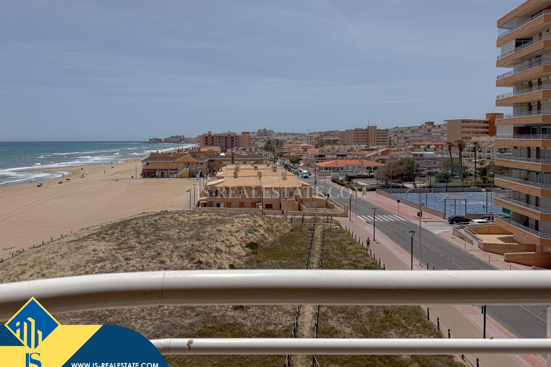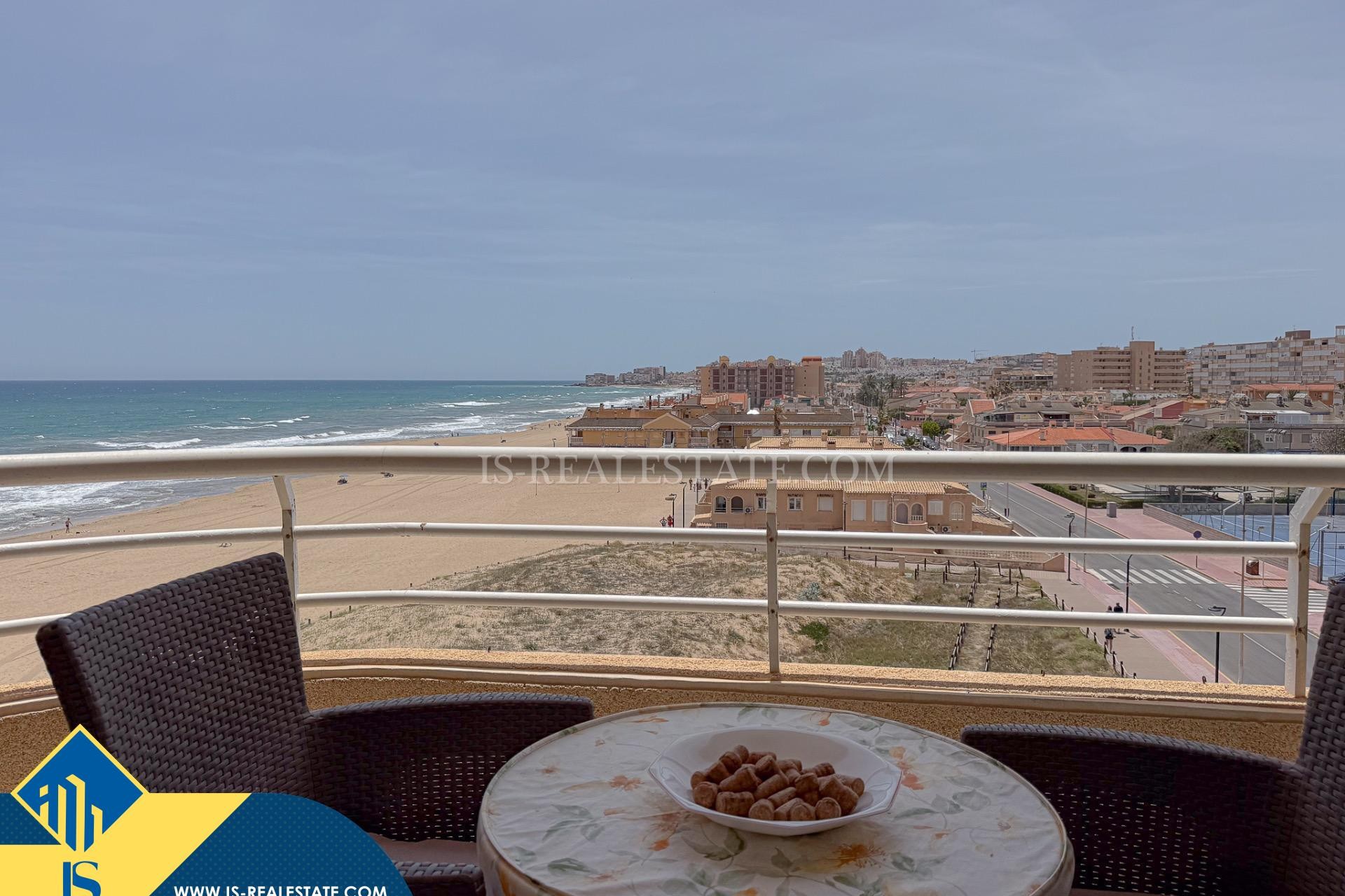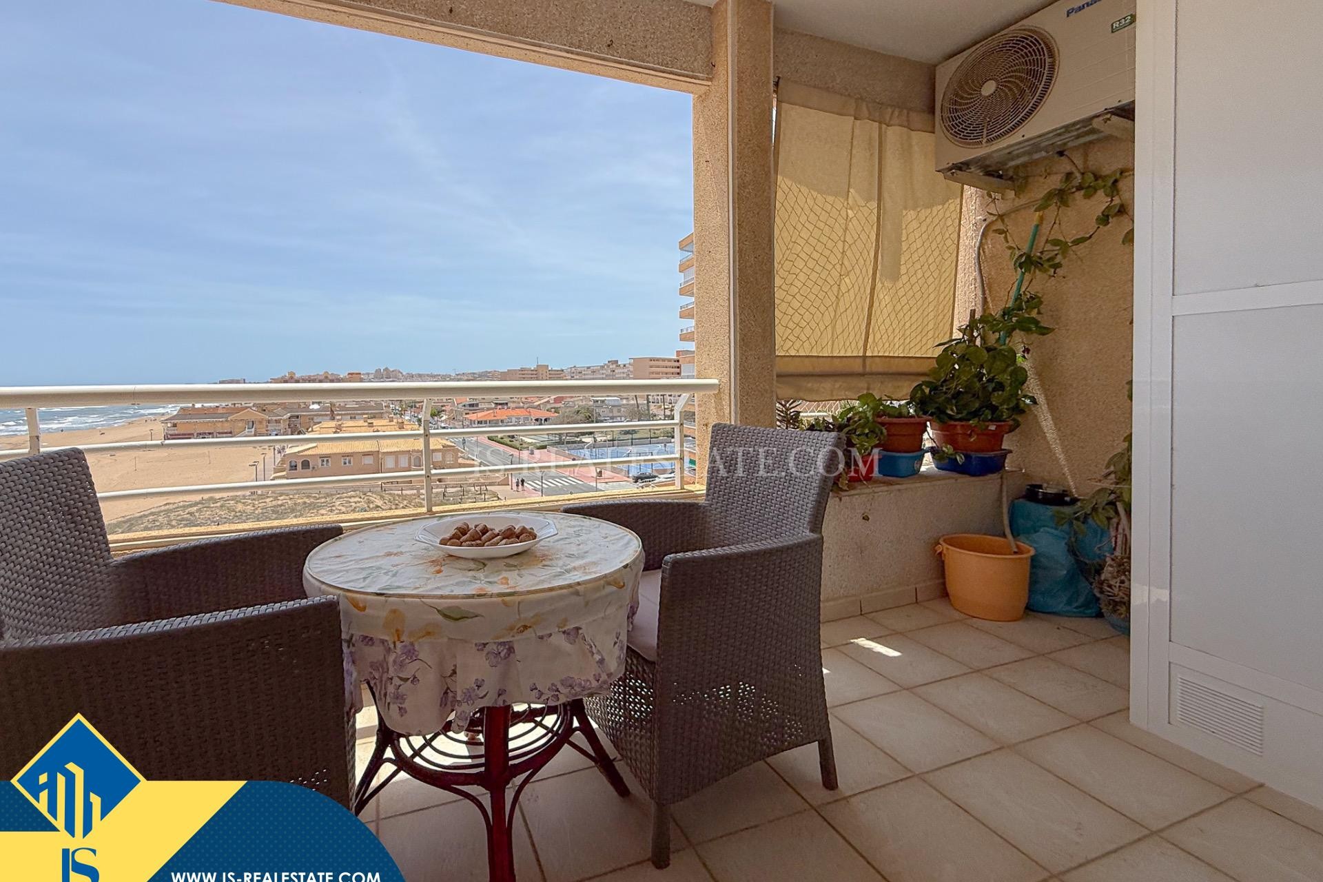 1. Piso → Apartamento en Torrevieja zona La Mata, 72 m. de superficie, 80 m. de la playa, una habitación doble, un baño, propiedad Semireformado, cocina equipada, carpinteria interior de roble, orientación este, suelo de cerámico, carpinteria exterior de aluminio / climalit.~Extras: acceso pmr, agua, armarios empotrados, ascensor, galería, luminoso, luz, solárium, techos altos, terraza, autobuses, árboles, centros comerciales, centros médicos, colegios, hospitales, parques, primera línea, supermercados, urbanización, vistas al mar, vistas despejadas~~