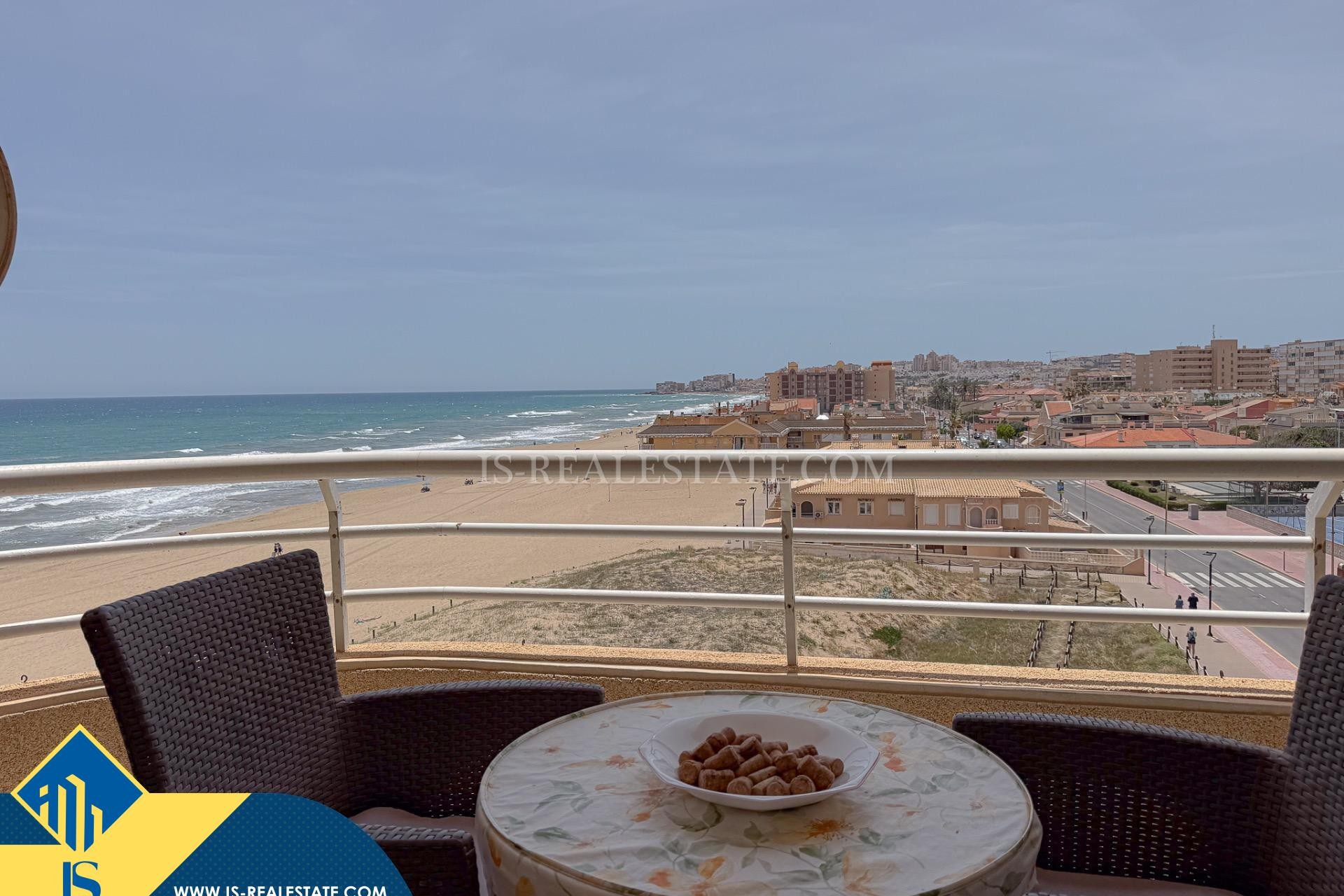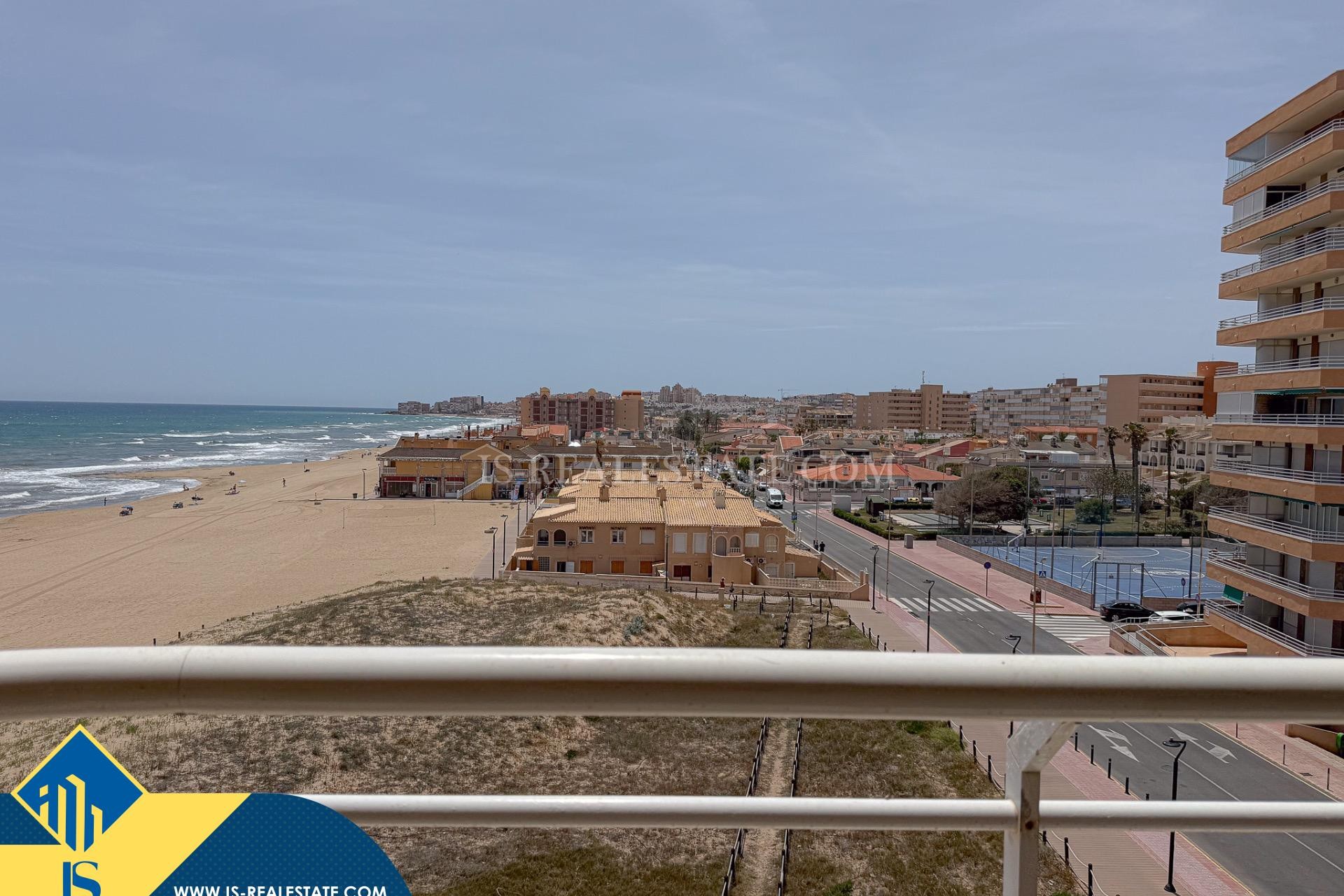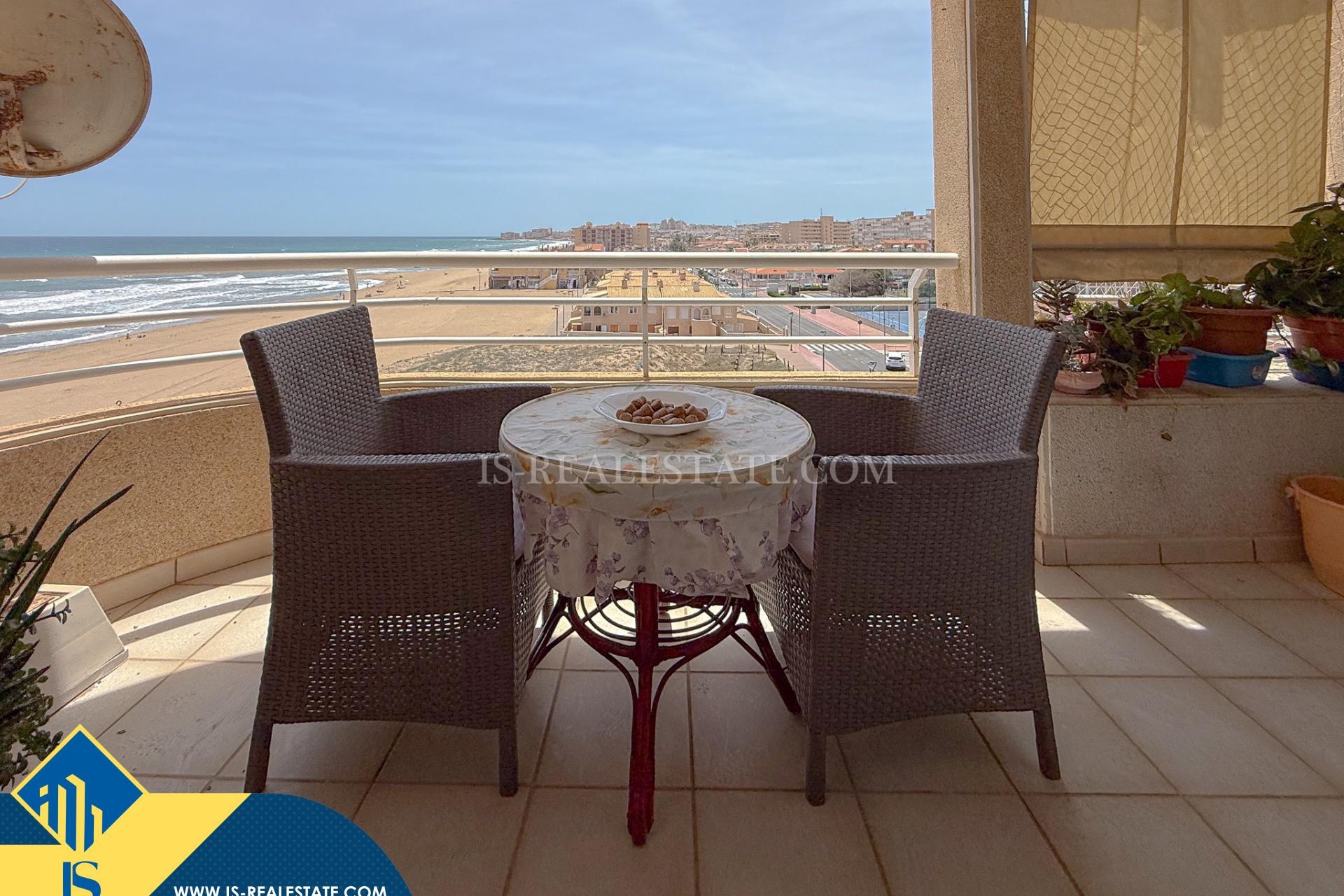 1. Piso → Apartamento en Torrevieja zona La Mata, 72 m. de superficie, 80 m. de la playa, una habitación doble, un baño, propiedad Semireformado, cocina equipada, carpinteria interior de roble, orientación este, suelo de cerámico, carpinteria exterior de aluminio / climalit.~Extras: acceso pmr, agua, armarios empotrados, ascensor, galería, luminoso, luz, solárium, techos altos, terraza, autobuses, árboles, centros comerciales, centros médicos, colegios, hospitales, parques, primera línea, supermercados, urbanización, vistas al mar, vistas despejadas~~