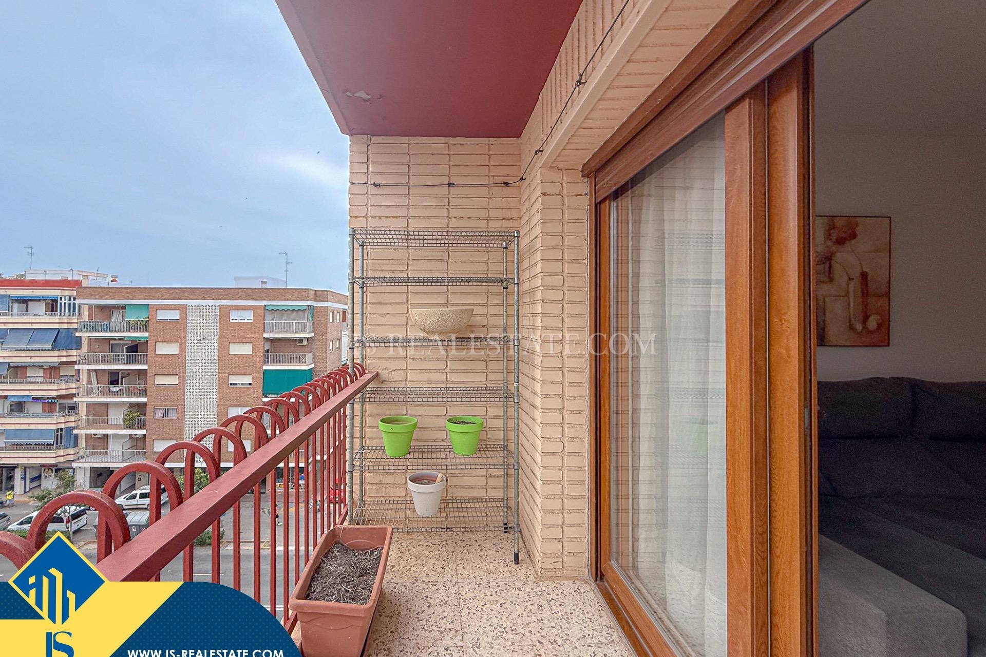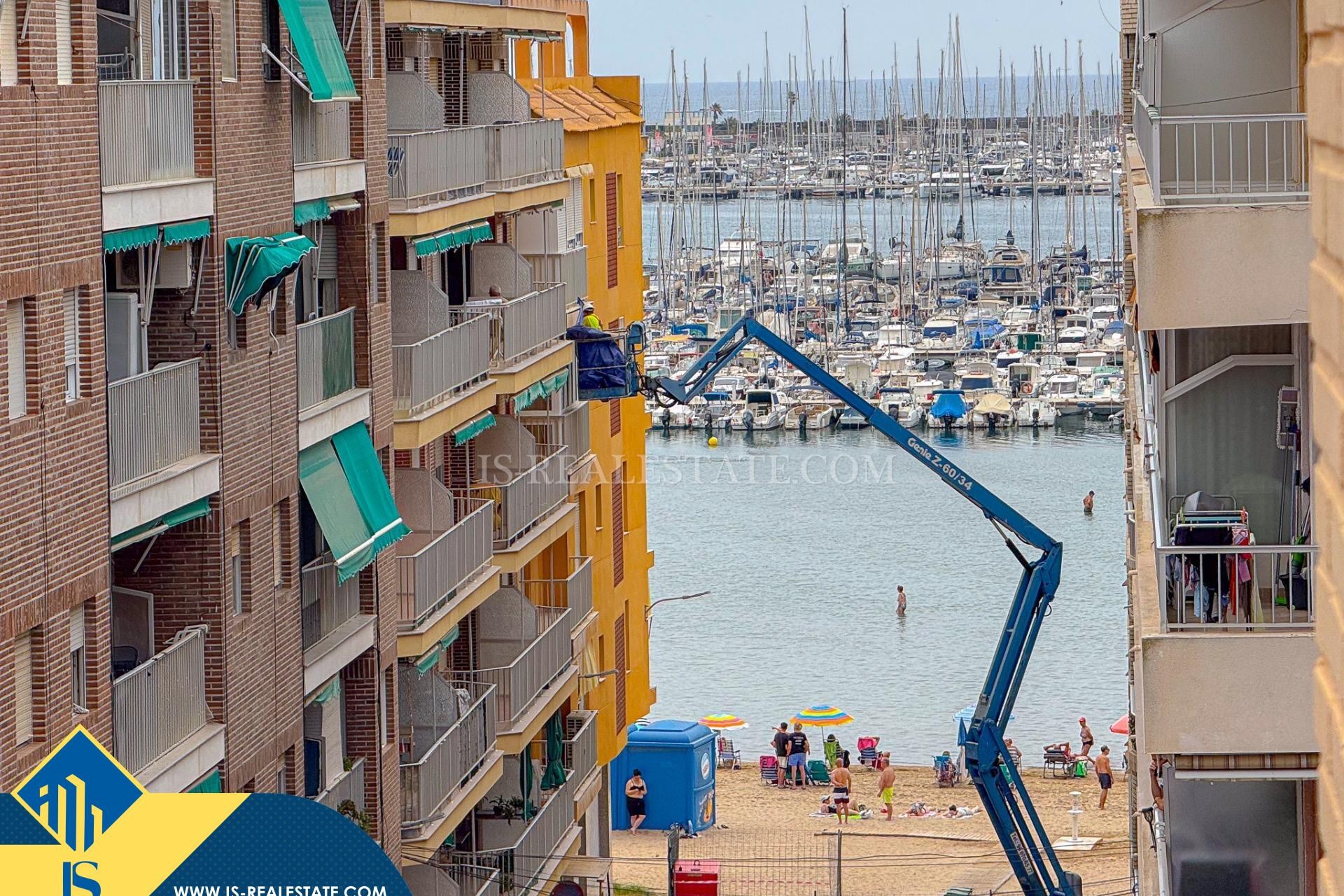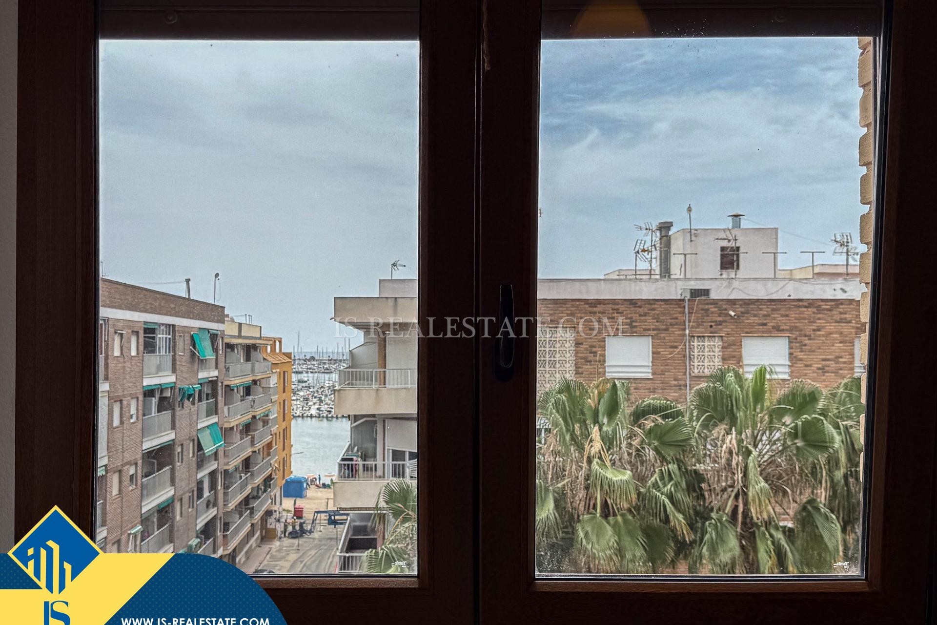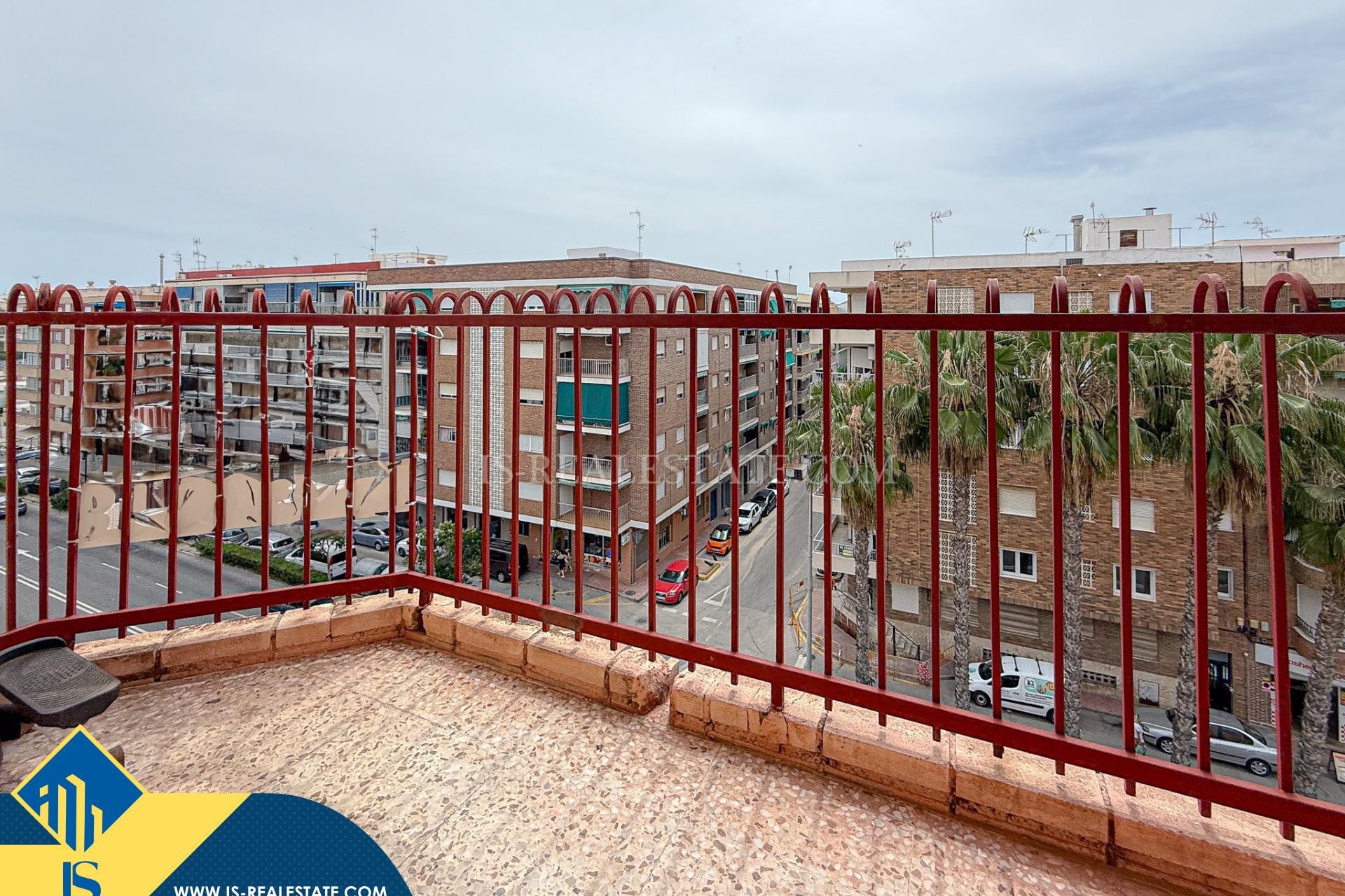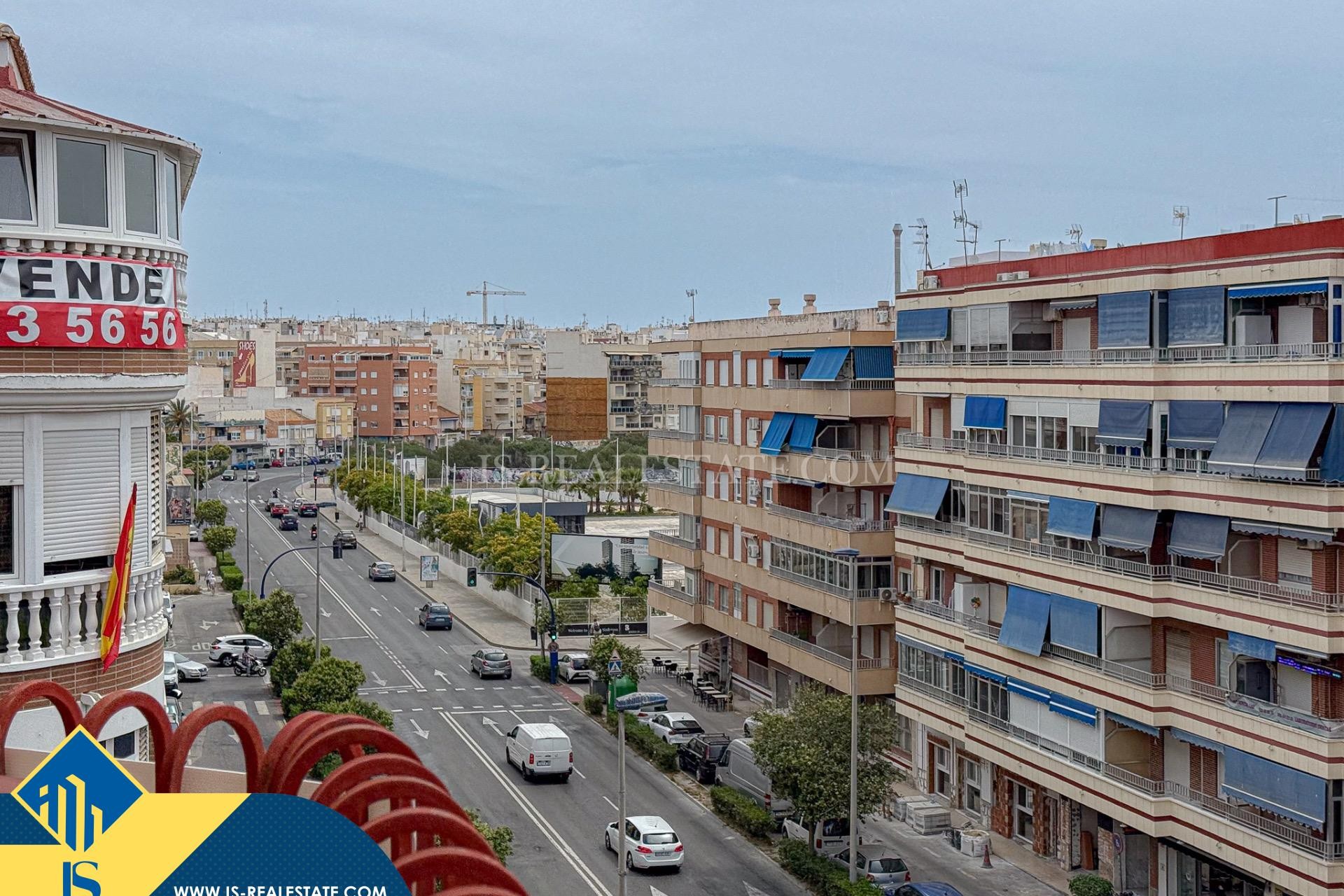 1. Piso → Ático en Torrevieja zona Acequion, 99 m. de superficie, 120 m. de la playa, 3 habitaciones dobles, 2 baños, propiedad reformada, cocina equipada, carpinteria interior de roble, orientación este, suelo de parquet, carpinteria exterior de aluminio / climalit.~Extras: acceso pmr, agua, armarios empotrados, ascensor, balcón, luminoso, luz, muebles, solárium, techos altos, terraza, autobuses, árboles, céntrico, centros comerciales, centros médicos, colegios, costa, parques, supermercados, vistas al mar~~