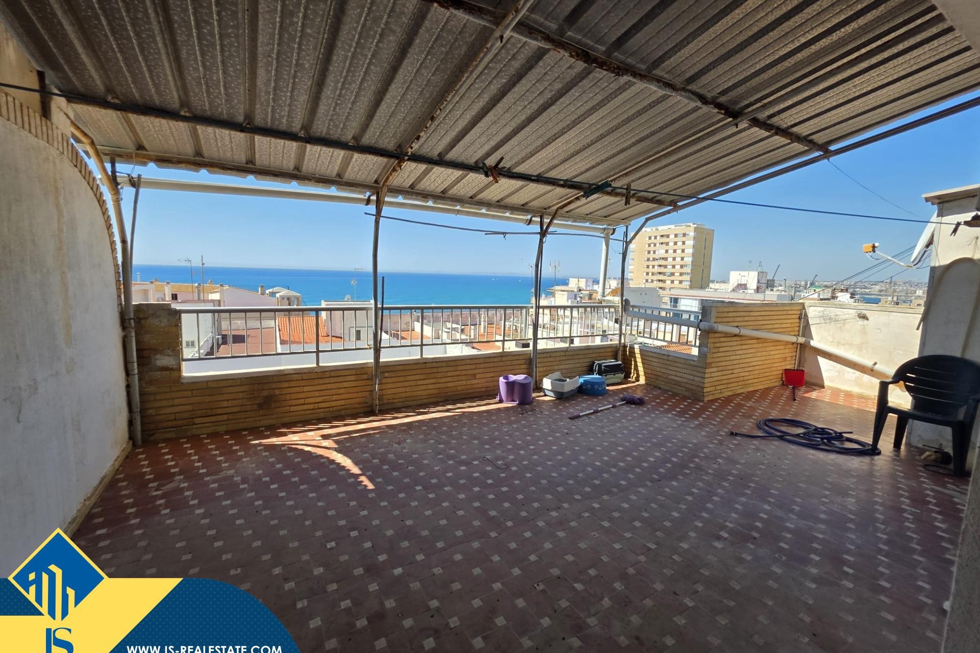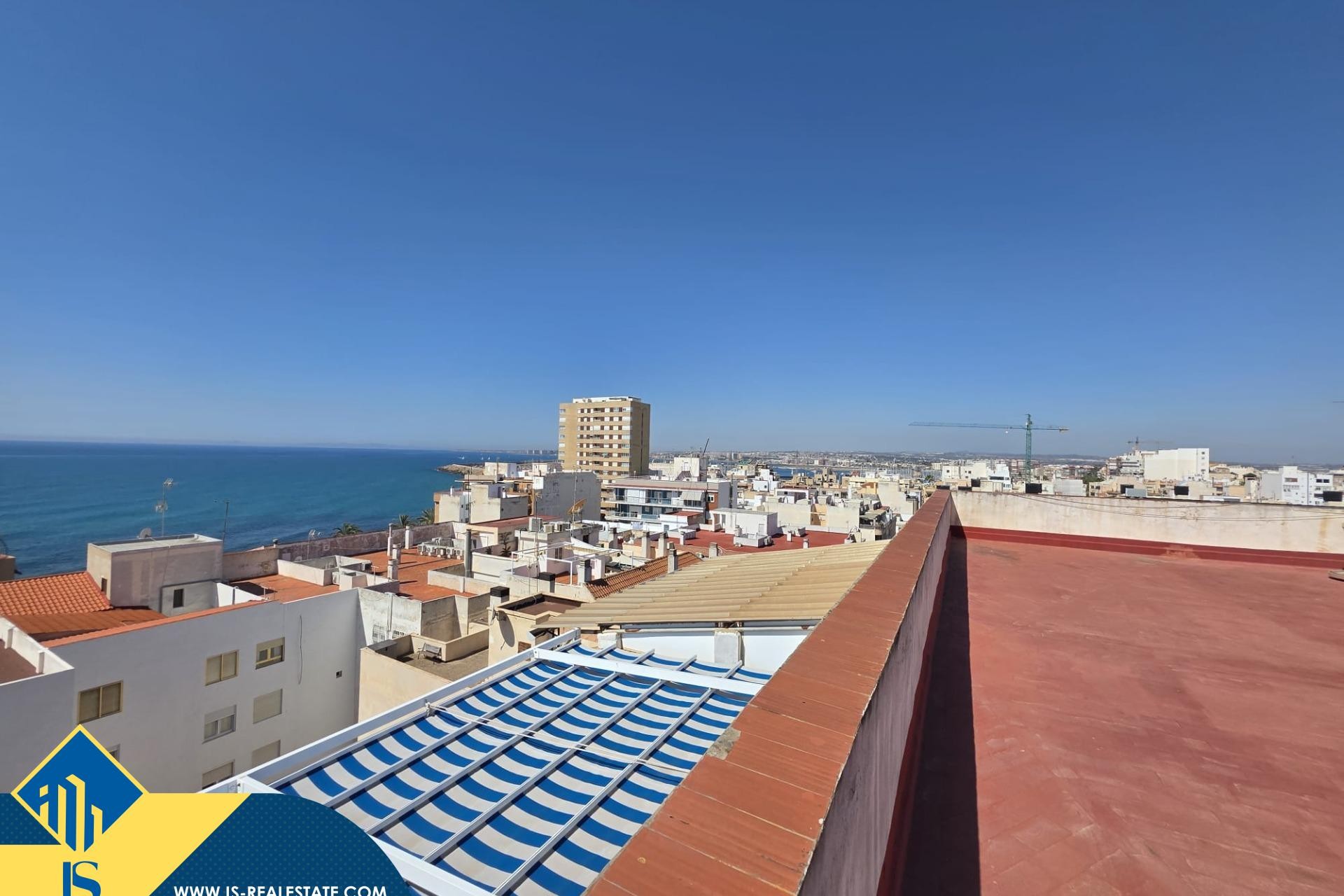 1. Piso → Ático en Torrevieja zona Paseo maritimo, 75 m. de superficie, 200 m. de la playa, 2 habitaciones, un baño, propiedad Para reformar.~Extras: ascensor, balcón, terraza, autobuses, céntrico, colegios, parques, supermercados~Gastos de comunidad: 358 Eur.~~