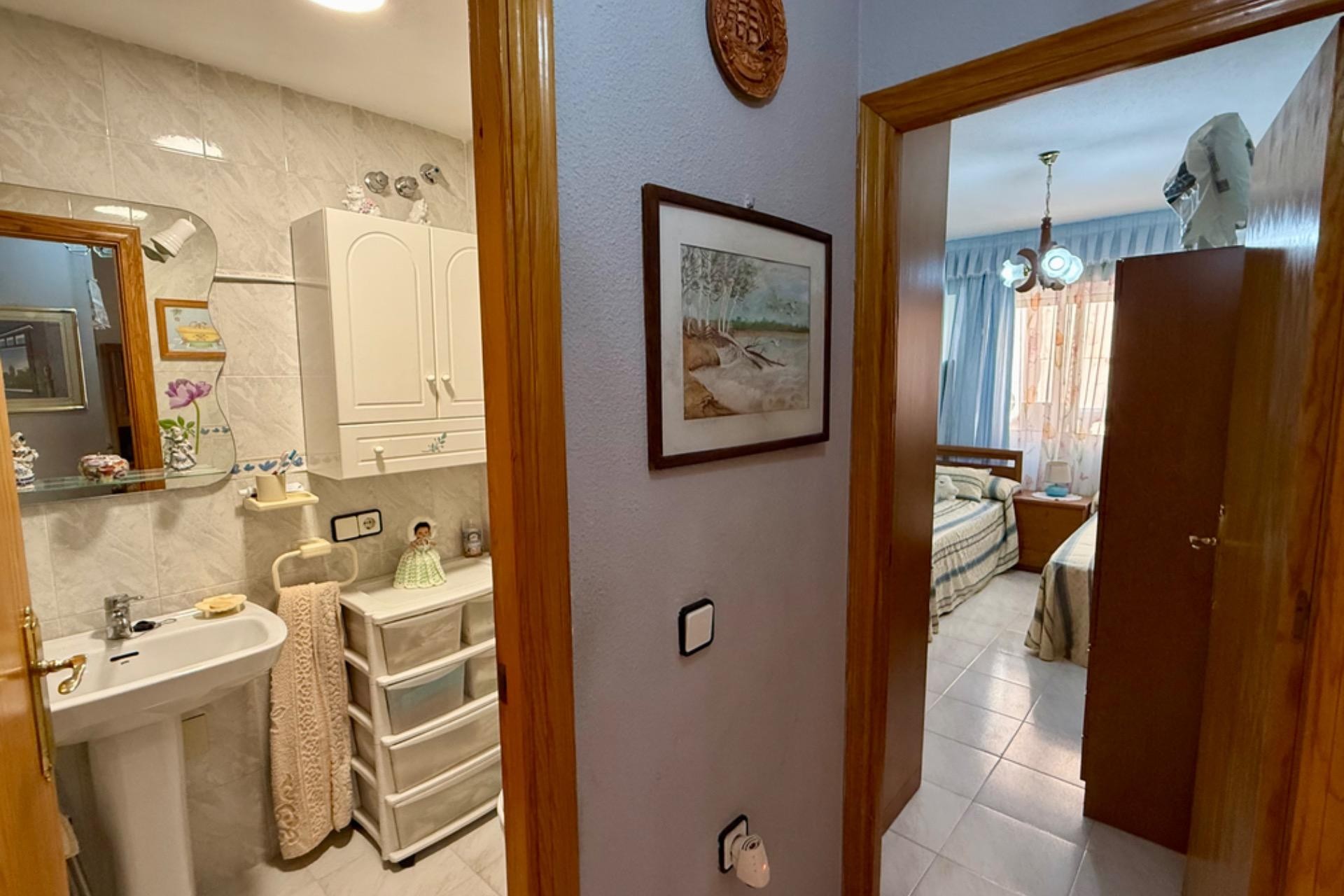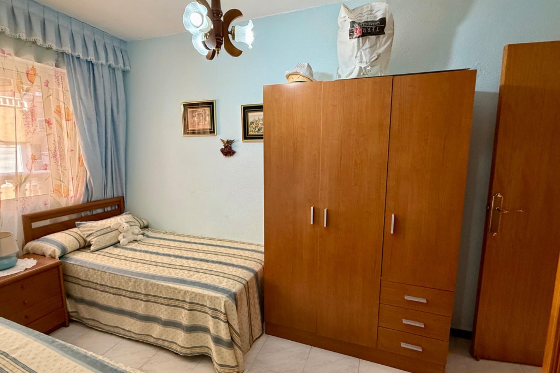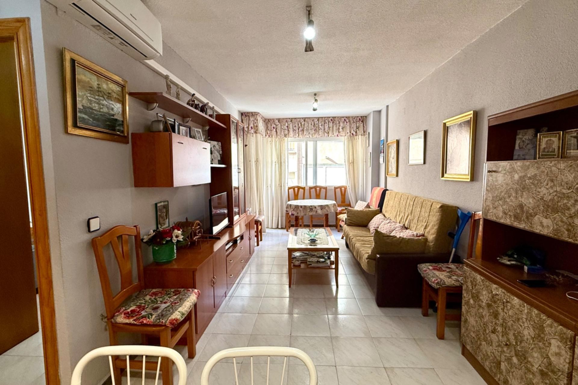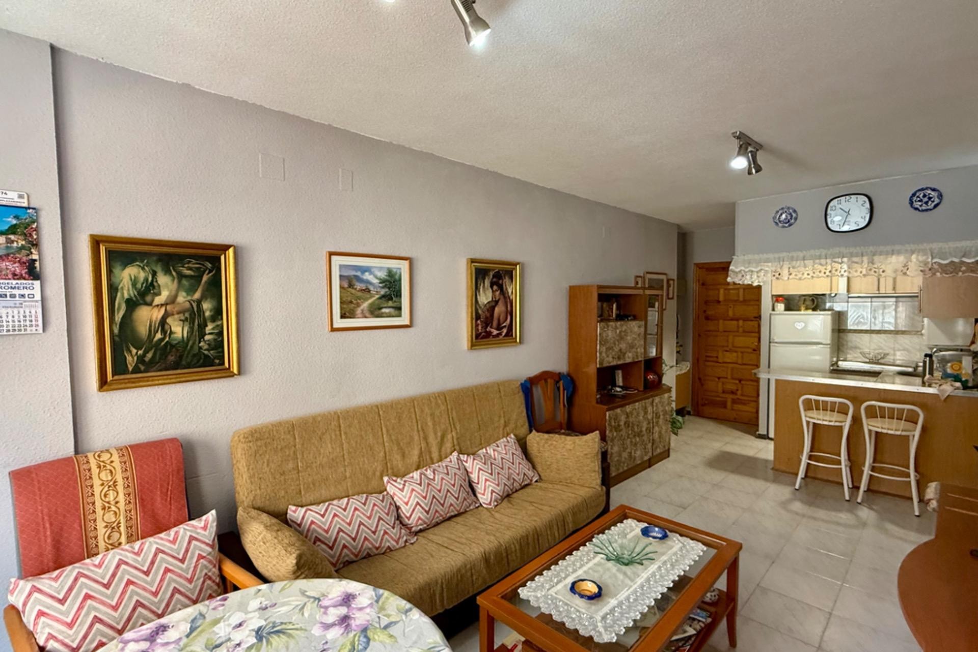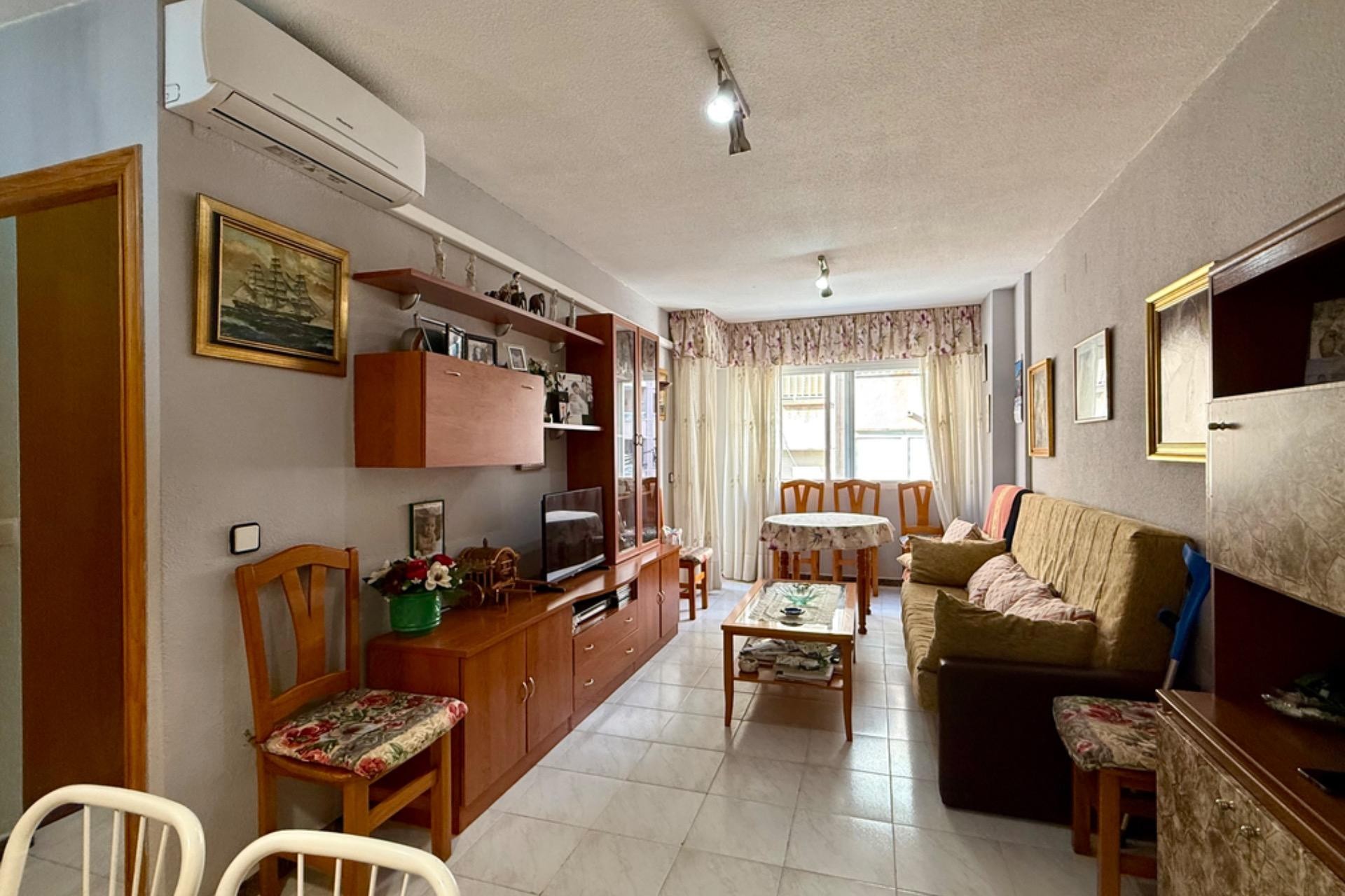 Se vende acogedor apartamento listo para entrar a vivir, ubicado en un excelente edificio con ascensor. La vivienda cuenta con 2 dormitorios, 1 baño completo, un amplio y luminoso salón con acceso a una agradable terraza, ideal para disfrutar de las vistas al mar y el clima de la zona.~~Su ubicación es inmejorable: a tan solo 80 metros de la playa, con todos los servicios a mano como farmacia, supermercados y restaurantes. Una gran oportunidad para vivir cerca del mar en un entorno cómodo y bien comunicado.~