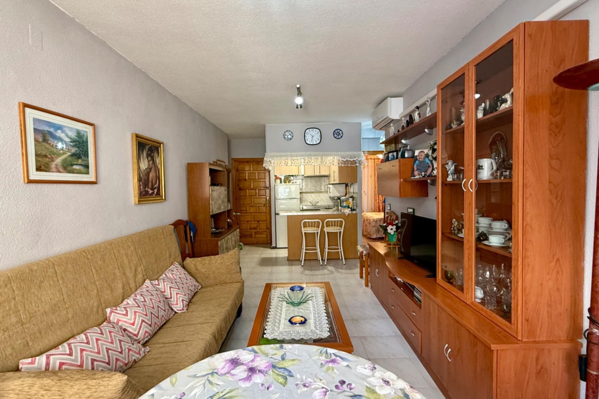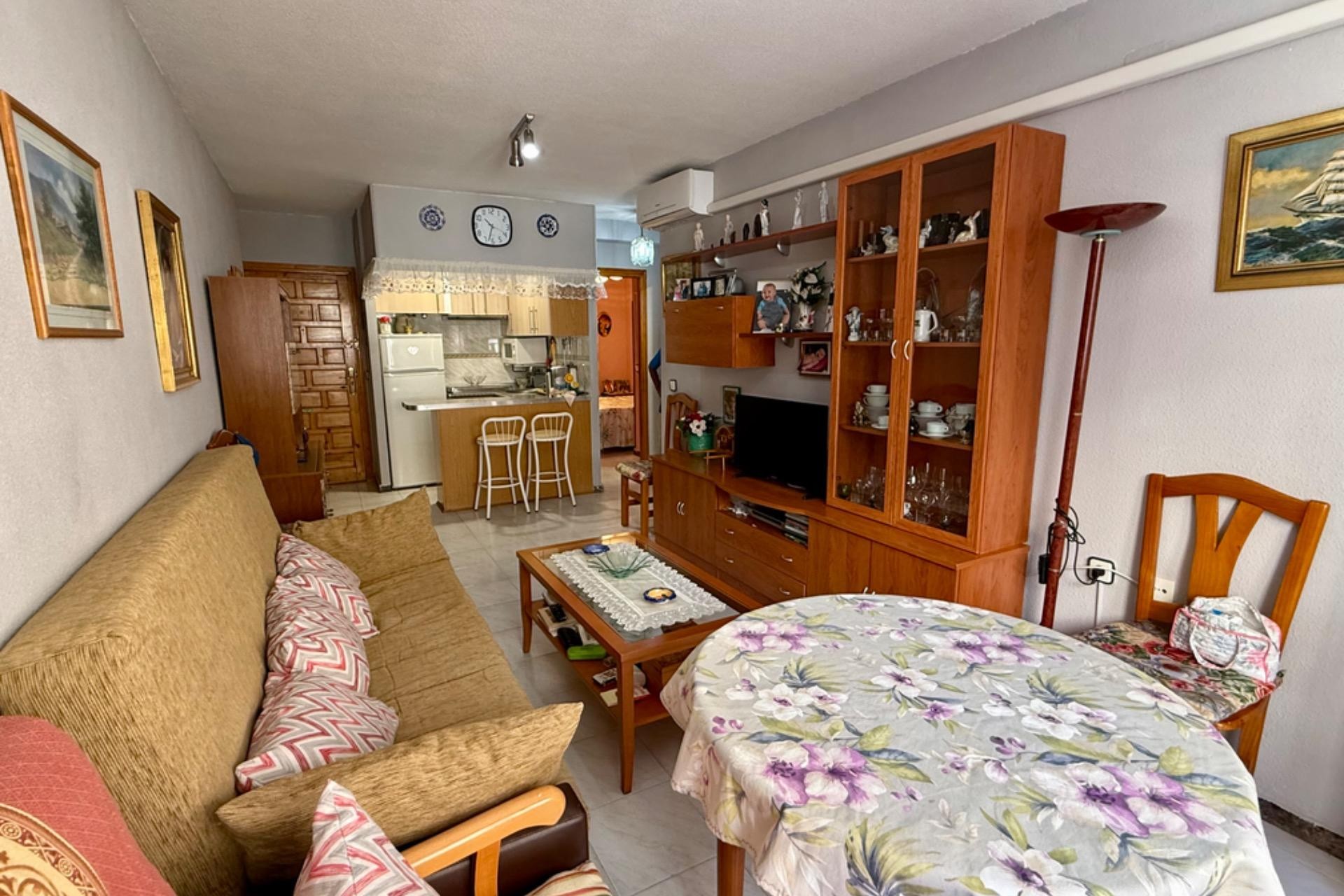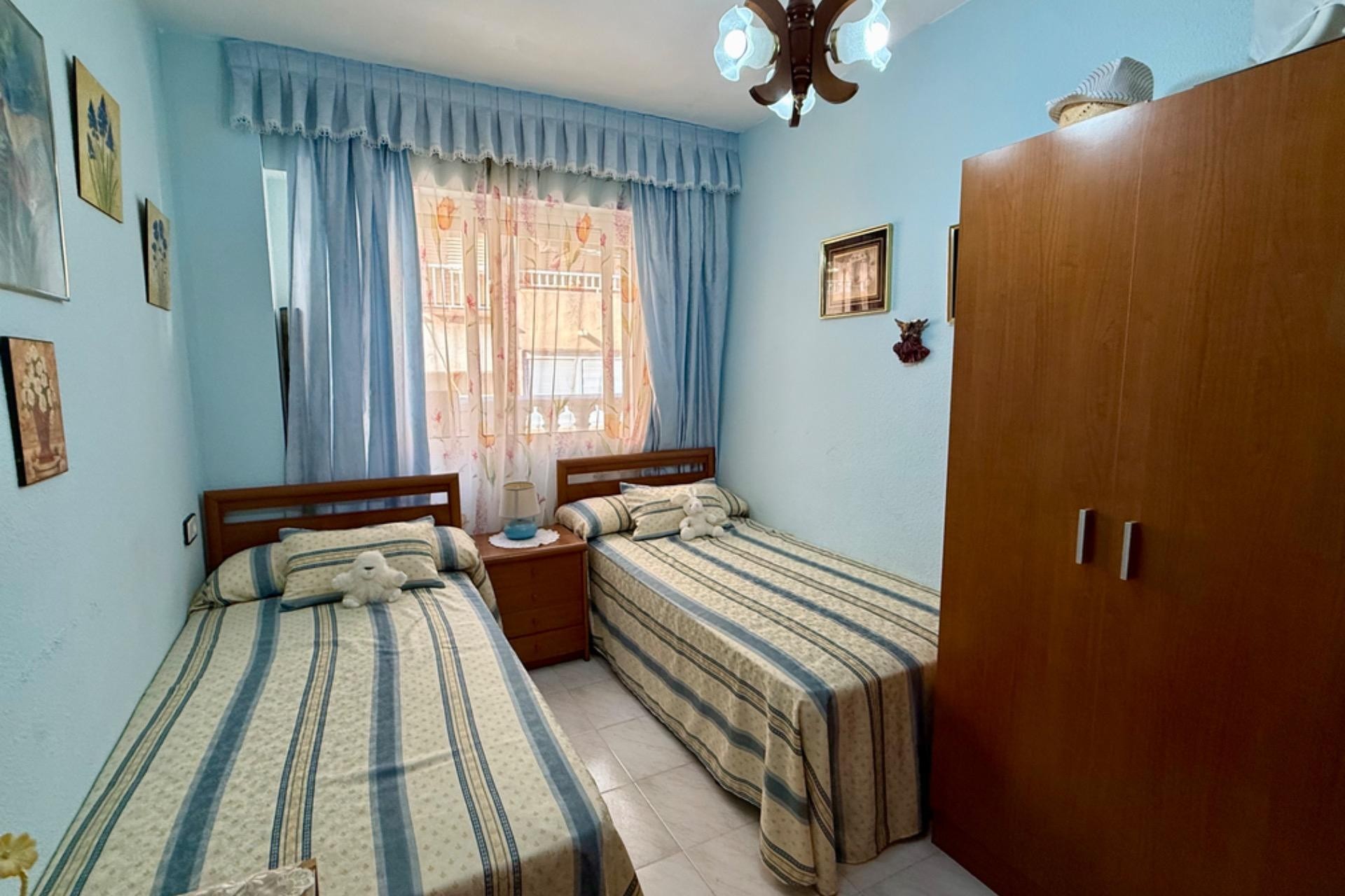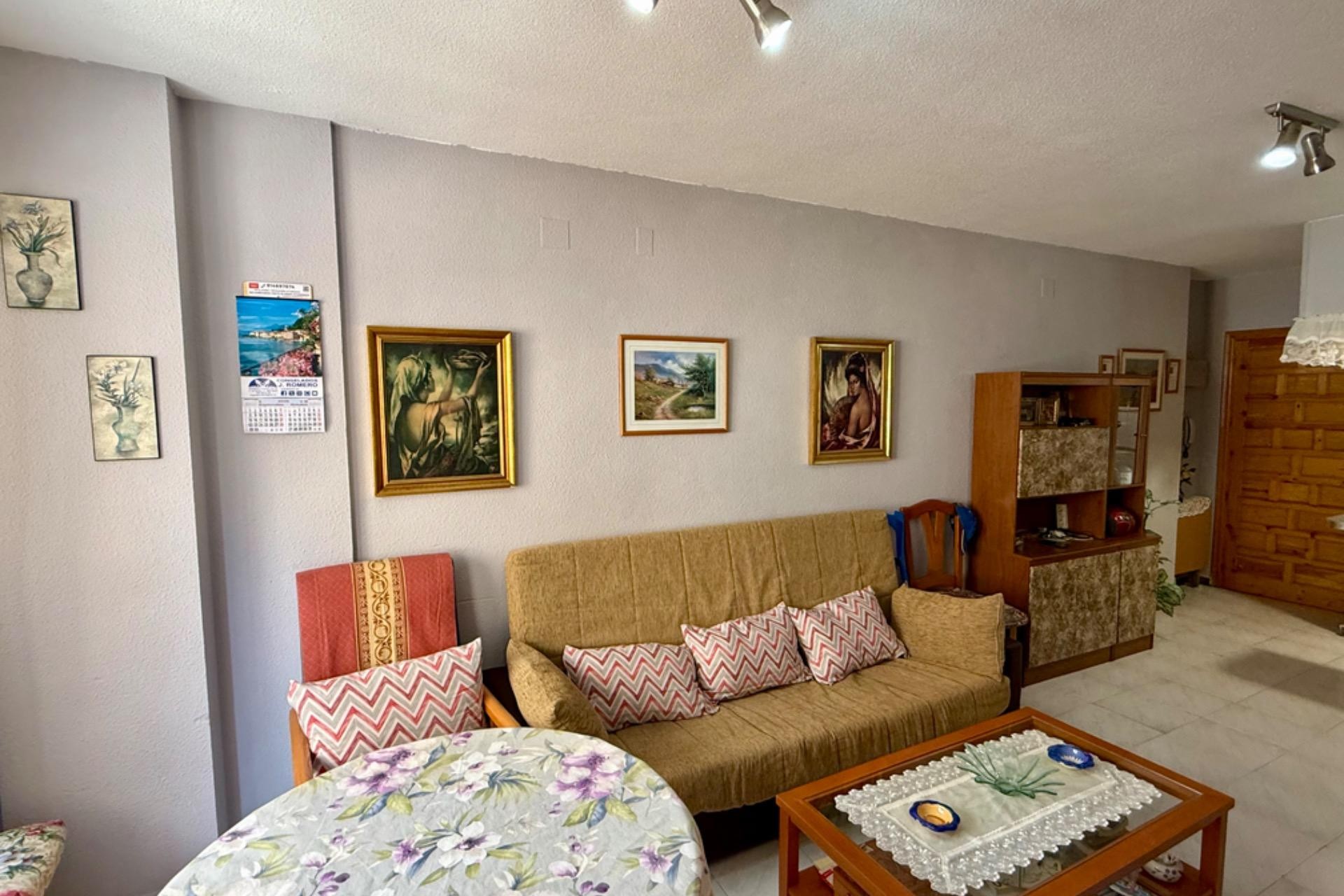 Se vende acogedor apartamento listo para entrar a vivir, ubicado en un excelente edificio con ascensor. La vivienda cuenta con 2 dormitorios, 1 baño completo, un amplio y luminoso salón con acceso a una agradable terraza, ideal para disfrutar de las vistas al mar y el clima de la zona.~~Su ubicación es inmejorable: a tan solo 80 metros de la playa, con todos los servicios a mano como farmacia, supermercados y restaurantes. Una gran oportunidad para vivir cerca del mar en un entorno cómodo y bien comunicado.~