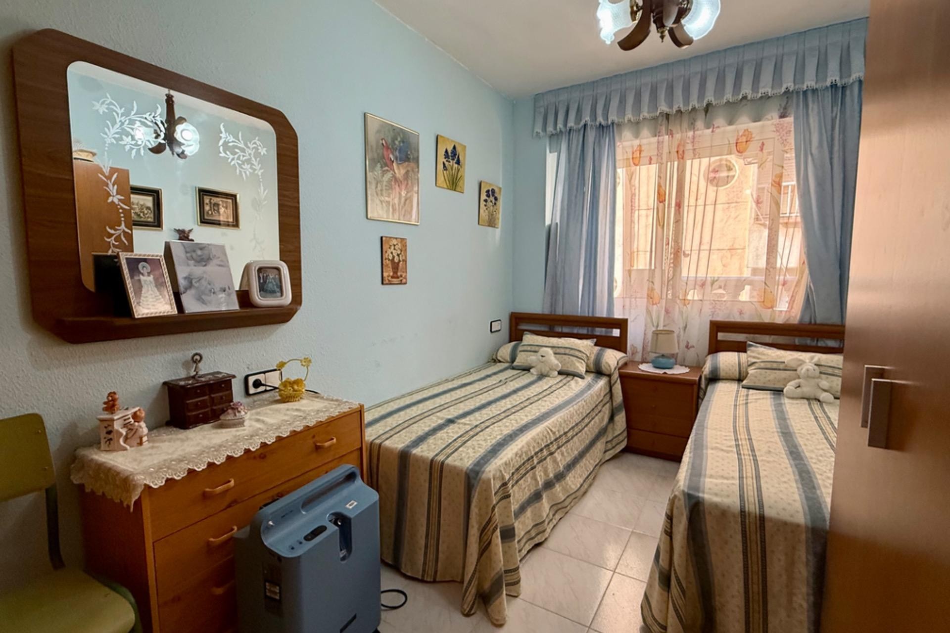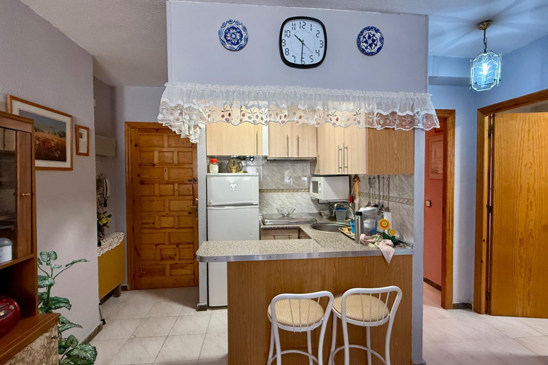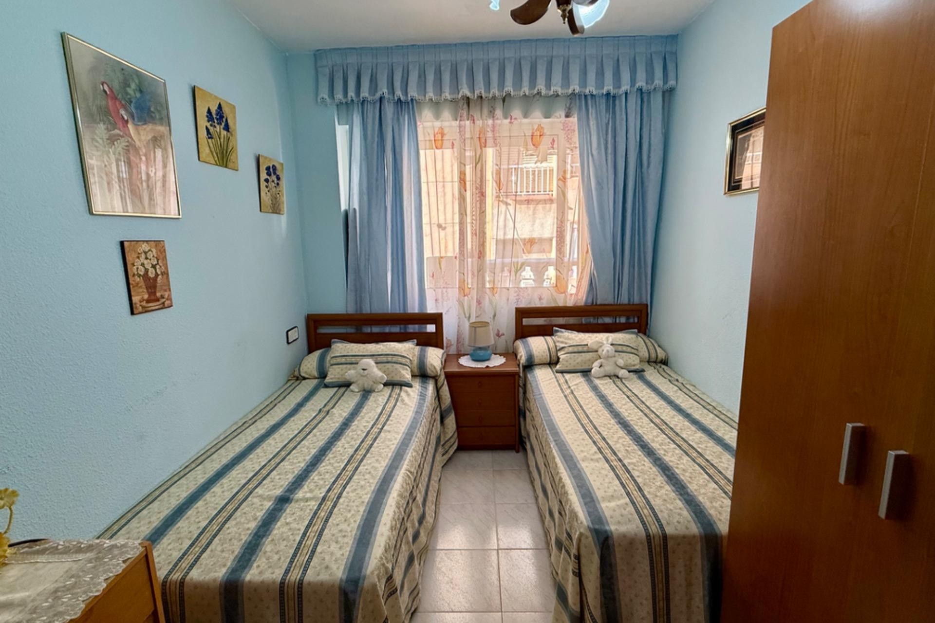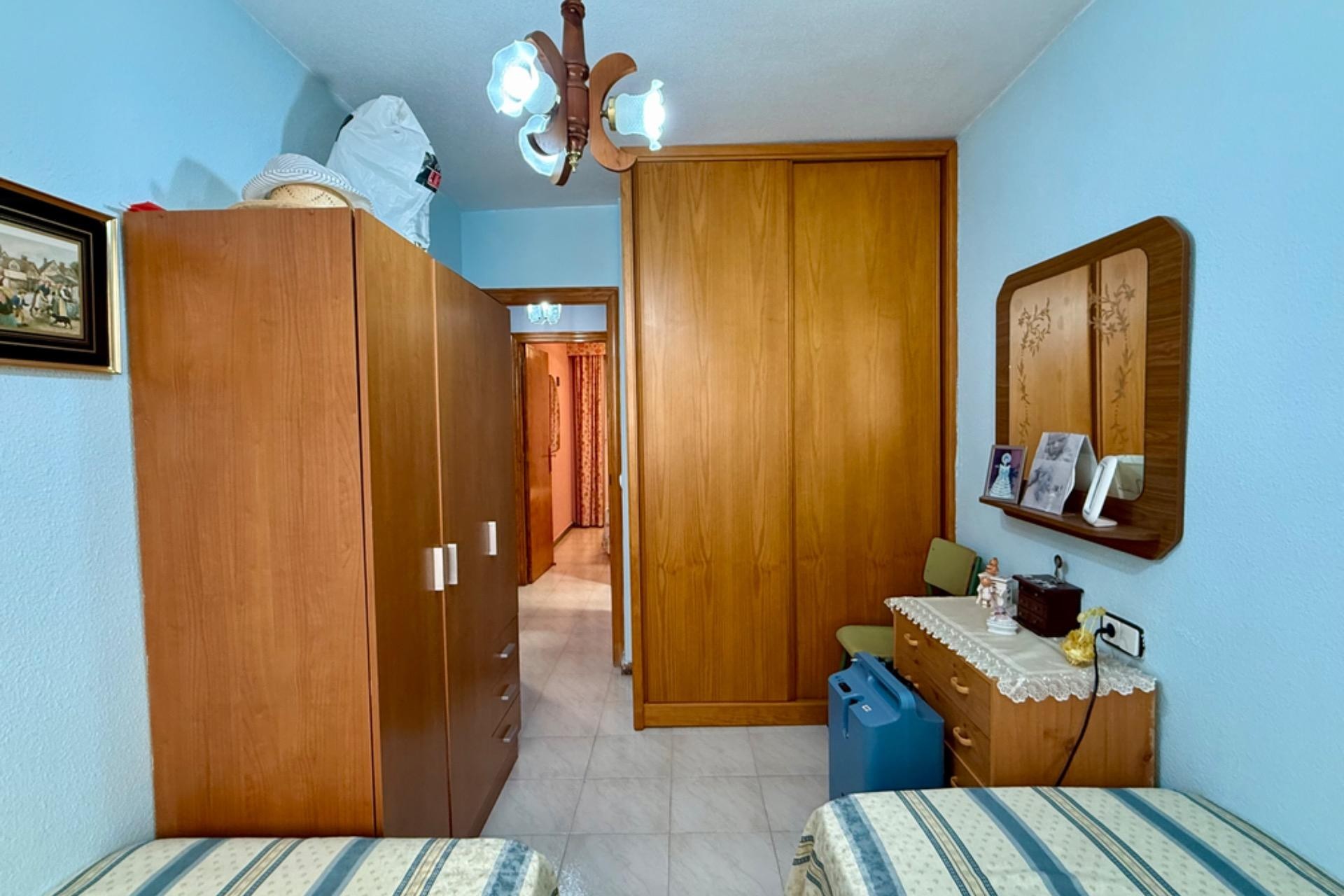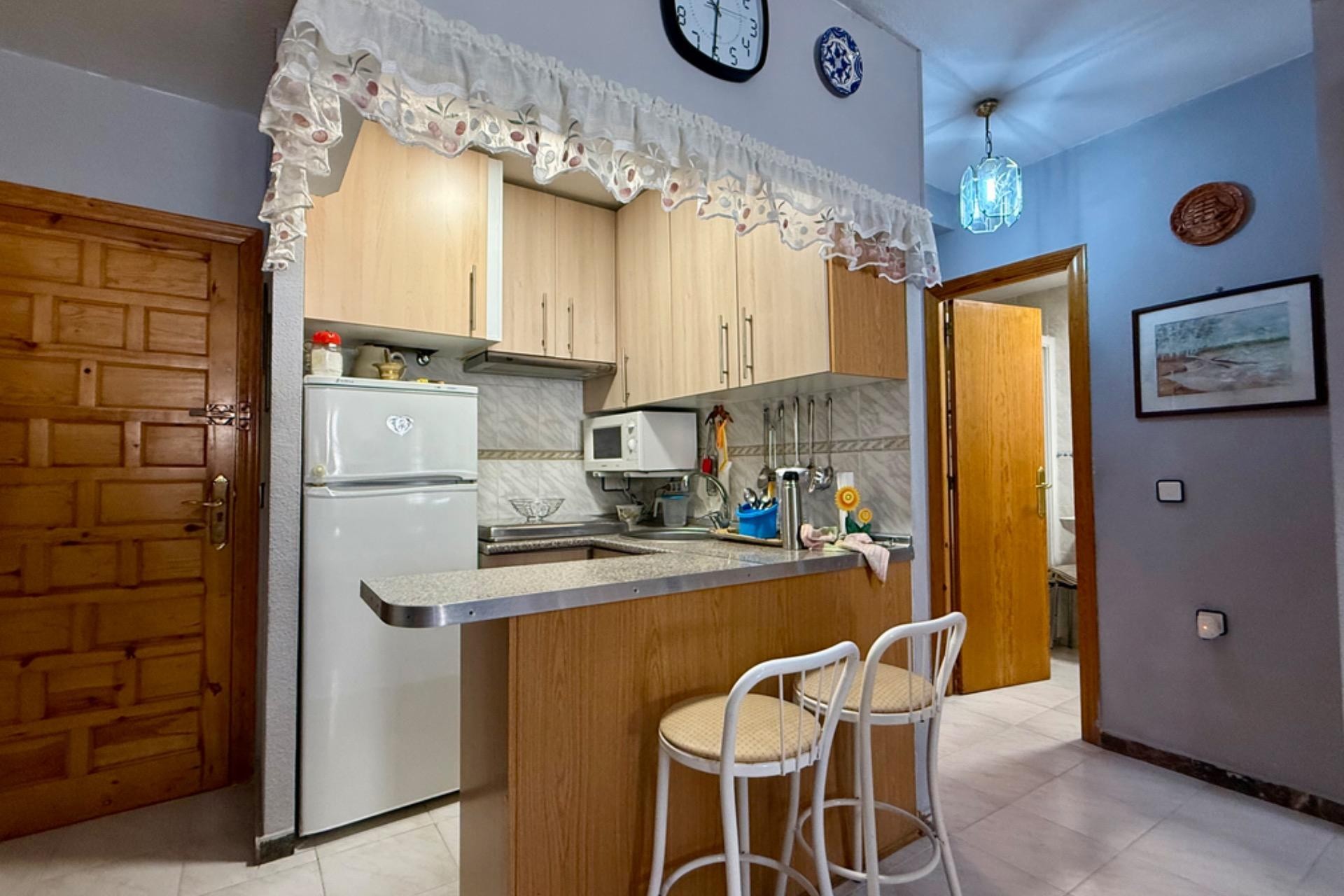 Se vende acogedor apartamento listo para entrar a vivir, ubicado en un excelente edificio con ascensor. La vivienda cuenta con 2 dormitorios, 1 baño completo, un amplio y luminoso salón con acceso a una agradable terraza, ideal para disfrutar de las vistas al mar y el clima de la zona.~~Su ubicación es inmejorable: a tan solo 80 metros de la playa, con todos los servicios a mano como farmacia, supermercados y restaurantes. Una gran oportunidad para vivir cerca del mar en un entorno cómodo y bien comunicado.~
