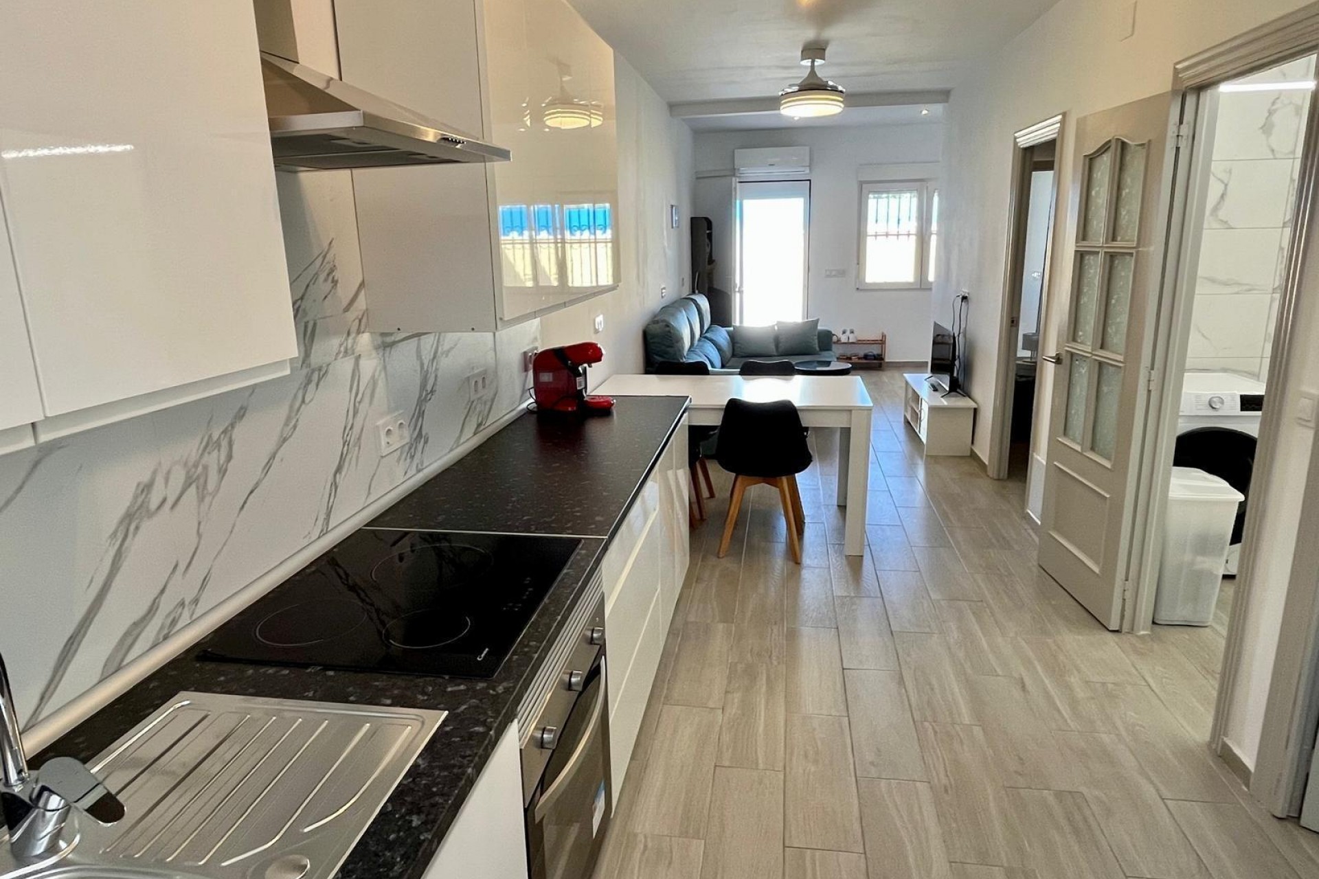 Presentamos este atractivo pareado reformado ubicado en la tranquila zona de Torretas en Torrevieja. Con un precio competitivo de 139,900 euros, esta propiedad es ideal tanto como residencia habitual como para inversión vacacional. La vivienda cuenta con una habitación doble y otra sencilla, lo que proporciona comodidad y espacio suficiente para parejas o pequeñas familias. El baño completo ha sido modernizado recientemente, ofreciendo funcionalidad a los nuevos propietarios.~~La terraza es perfecta para disfrutar del clima soleado mediterráneo; además se encuentra situada a solo 2.8 KM del mar Mediterráneo e incluye acceso cercano a centros comerciales y colegios locales - todo lo necesario al alcance de su mano. Esta propiedad destaca por su conservación impecable tras las reformas realizadas, permitiendo mudarse sin necesidad de realizar más trabajos adicionales.~~No pierda la oportunidad de adquirir un hogar acogedor cerca del mar ya sea como primera residencia o destino vacacional.~~El interior ha sido completamente renovado. Las paredes exteriores están cubiertas con material aislante y revestidas con paneles de yeso; el techo se ha elevado y también está revestido con paneles de yeso. Las ventanas son de doble acristalamiento con perfiles de 5 cámaras, y las puertas son dobles: la primera con vidrio continuo para permitir el paso de la luz, y la segunda es una puerta de seguridad con pernos en tres puntos.~~La instalación eléctrica se ha renovado completamente desde el cuadro general y se ha dividido en zonas separadas con fusibles independientes.~Las tuberías de agua y desagüe bajo el suelo son nuevas y provienen directamente de las entradas principales de la casa.~~Cuenta con un nuevo aire acondicionado con función de calefacción y refrigeración.~Lámparas de techo con ventiladores regulables.~~Todos los electrodomésticos son nuevos:~lavavajillas, lavadora, secadora, calentador de agua, etc.~~Además, dispone de una nueva valla y una puerta de entrada renovada.~Cámara de videovigilancia con capacidad de conexión Wi-Fi.~