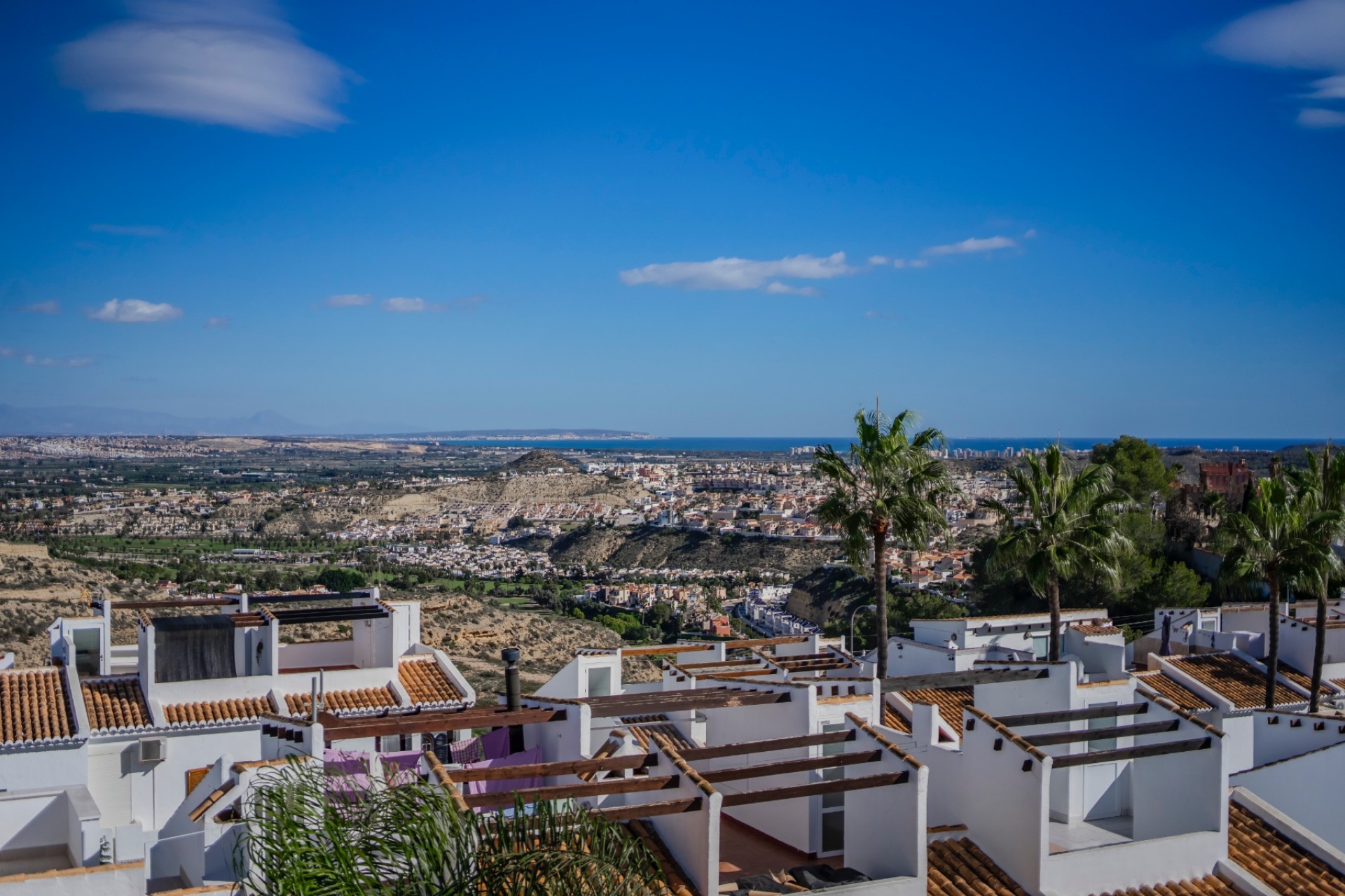 Situado sobre la vibrante ciudad de Ciudad Quesada, este miniático bellamente renovado (totalmente reformado en 2023/2024) abarca la segunda y tercera planta, ofreciendo impresionantes vistas panorámicas del Mediterráneo y las montañas circundantes desde todas las habitaciones, el balcón y la terraza privada en la azotea.