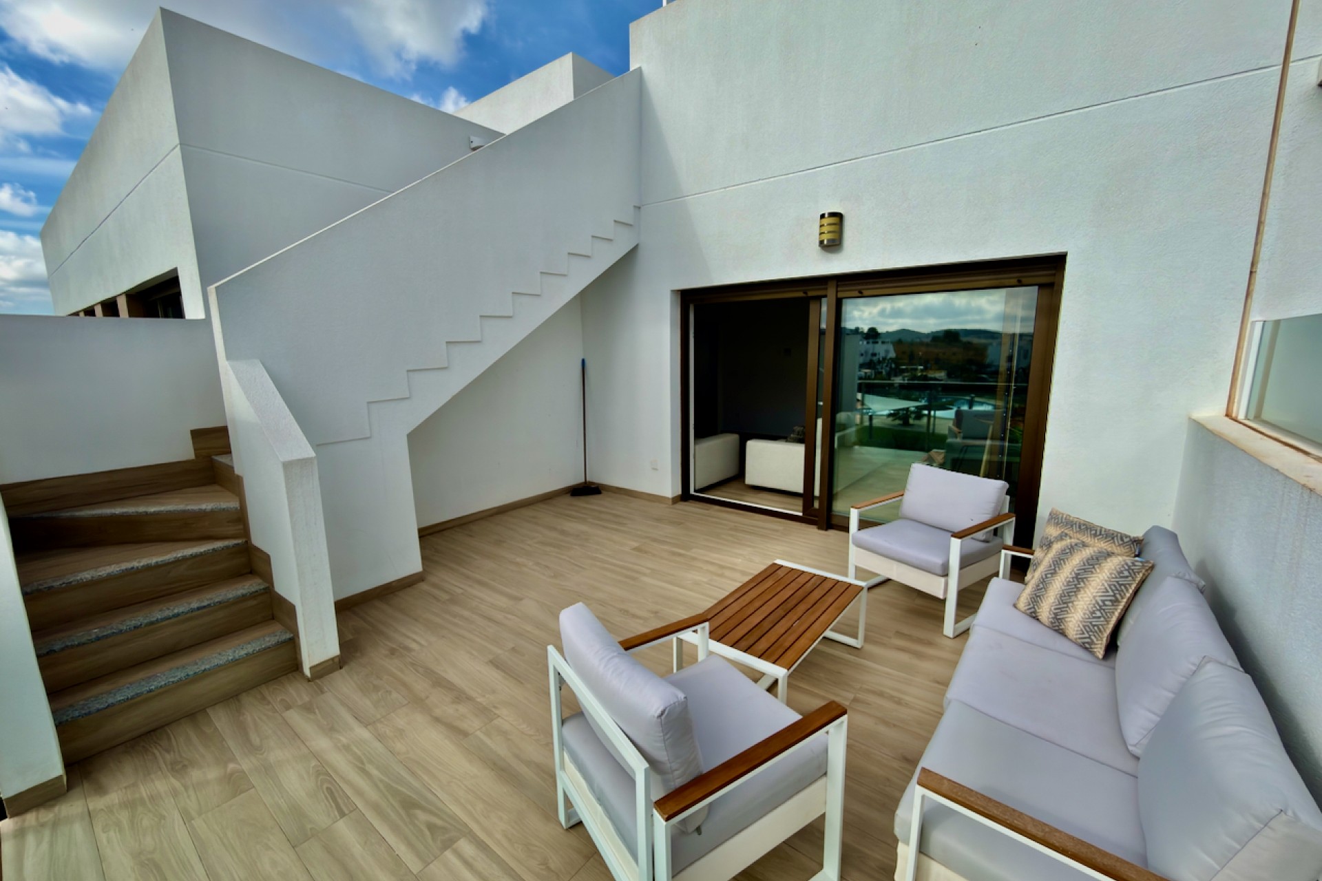 Magnífico ático en Vistabella Golf, construido en 2022, que ofrece un estilo de vida moderno y elegante en una exclusiva comunidad. Esta espaciosa propiedad de tres dormitorios y dos baños cuenta con un diseño contemporáneo de planta abierta, acabados de alta calidad y abundante luz natural.