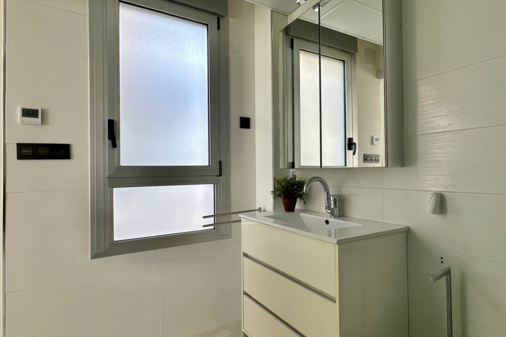 La planta baja cuenta con un salón luminoso con suelo radiante, cocina totalmente equipada y un dormitorio con baño independiente. En la planta superior se encuentran dos amplios dormitorios, cada uno con su baño en suite, además de una terraza acristalada con vistas al mar.