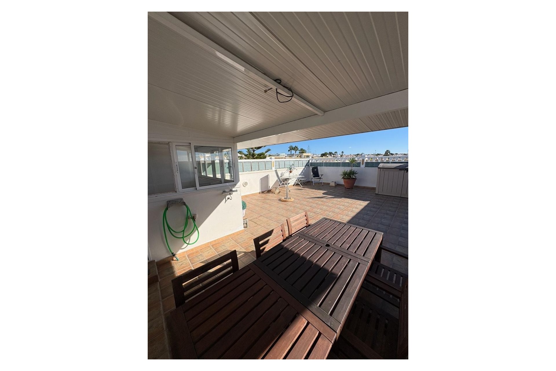 Disfrute al máximo de la vida mediterránea en esta encantadora villa adosada de una sola planta, ubicada en la tranquila localidad de San Fulgencio. Con un generoso espacio interior de 139 m², la propiedad cuenta con 3 dormitorios luminosos y confortables, una distribución impecable y abundante luz natural en toda la casa. Salga a un encantador jardín privado, perfecto para cenar al aire libre, tomar el sol o crear su propio oasis de relajación. Un solárium privado añade aún más espacio para relajarse, ofreciendo vistas abiertas y un refugio soleado durante todo el año. Ubicada en una tranquila y bien cuidada comunidad que incluye una refrescante piscina compartida, esta villa ofrece la combinación perfecta de privacidad y comodidad. Y con las impresionantes playas de arena blanca de Guardamar a solo 4 km, podrá disfrutar de días de playa, paseos junto al mar y lo mejor del estilo de vida de la Costa Blanca cuando lo desee. Esta es una casa acogedora para escapadas vacacionales, para vivir todo el año o como una inversión inteligente en una de las zonas costeras más codiciadas de la zona.