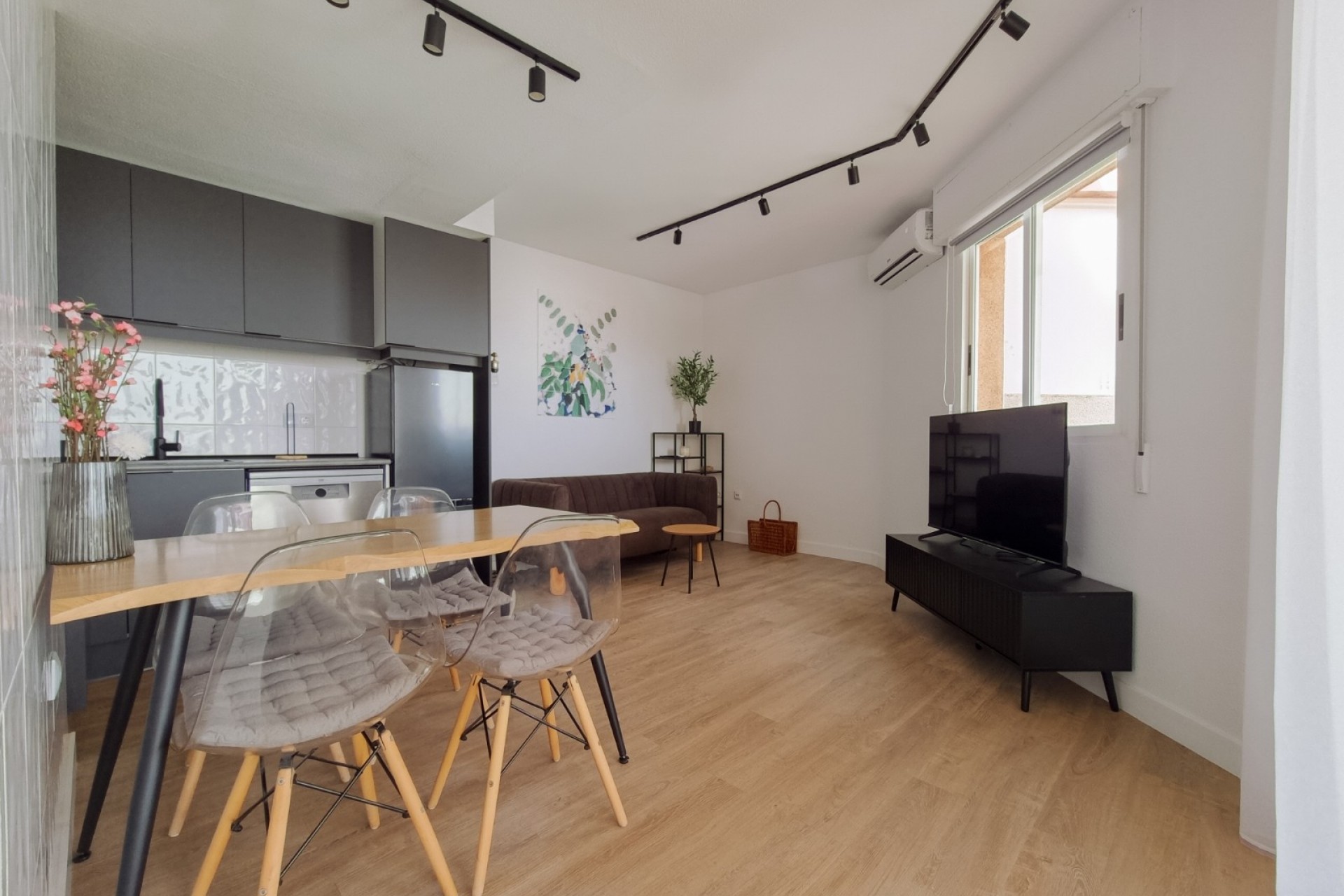 Denne vakkert renoverte dupleks-topleiligheten på 120 m² tilbyr komfort, stil og investeringspotensial – alt bare 300 meter fra sjøen. Fordelt over to etasjer, hver med egen inngang, er eiendommen ideell for både bolig og utleie. Innvendig finner du: To romslige terrasser med både solrike og skyggefulle områder, perfekt for avslapning året rundt. To lyse soverom og to moderne bad. Stort, moderne kjøkken fullt utstyrt med helt nye hvitevarer (oppvaskmaskin, vaskemaskin, varmtvannsbereder). Nye møbler, madrasser, TV, nymalt og oppdaterte baderomsinnredninger. Fullstendig fornyet elektrisk installasjon med moderne sikringsskap. Bygning med heis. Ligger i en rolig gate, vekk fra støy, og bare 300 meter fra Los Locos-stranden. Supermarked innen 2 minutters gange. Med sin uavhengige planløsning med to leiligheter tilbyr denne eiendommen en utmerket investeringsmulighet: bo i én etasje og leie ut den andre, eller leie begge for maksimal avkastning.