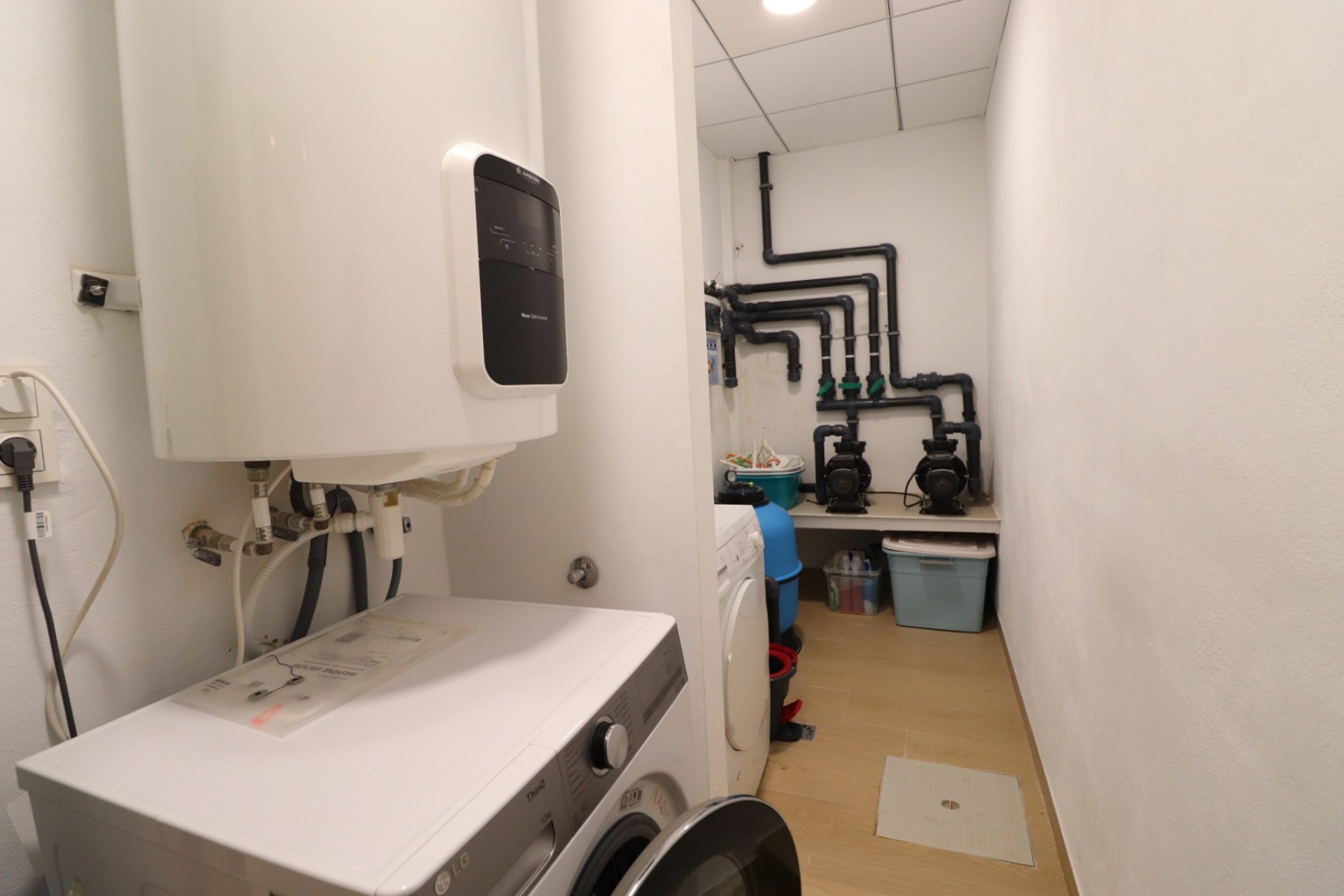 Dette vestvendte rekkehuset med fire soverom i Benijofar, ligger innen gangavstand til de mange fasilitetene denne populære byen nyter godt av, inkludert et supermarked, barer, restauranter, idrettsplass, skole og medisinsk senter. Bare en 5-minutters kjøretur fra Quesada og La Marquesa golfbane, og ca. 12 minutter til de vakre strendene langs kysten, har denne eiendommen en ideell beliggenhet. Denne 183 m2 store familieboligen ble bygget for bare 5 år siden og strekker seg over tre etasjer. Hovednivået har et moderne, høyspesifisert kjøkken med åpen planløsning, et familiedusjrom og en romslig stue/spisestue med store skyvedører som fører ut til den flislagte hagen og det private bassenget. Den underbyggede tilbyr allsidighet, inkludert et dobbelt soverom med tilgang til et terrasseområde, et dusjrom og et vaskerom, tilgjengelig via både interne og eksterne trapper. Første etasje består av to doble soverom, hvor masteren har tilgang til en privat terrasse og et familiedusjrom. Utvendige trapper fører opp til et privat solarium med utsikt over landskapet og fjellene. Uteområdet er flislagt for lite vedlikehold og inkluderer biladkomst. Ytterligere funksjoner inkluderer garderober på tre soverom, luftkondisjonering med kanal overalt, og både ekstern og intern tilgang til underbygget. Denne eiendommen tilbyr en perfekt blanding av moderne design og praktisk, beliggende i den ettertraktede Costa Blanca Sør.