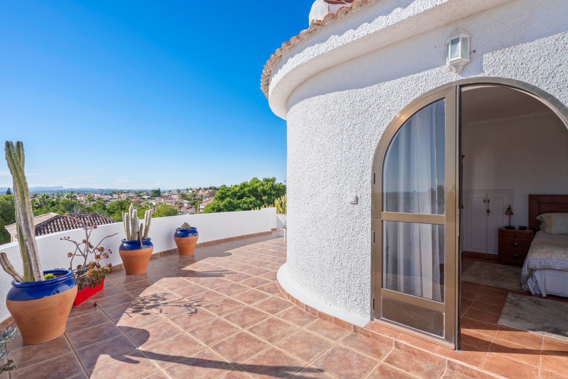 Denne fantastiske villaen med 4 soverom og 3 bad ble bygget i 1990 og fremstår i utmerket stand . Den tilbyr 200 m² vakkert vedlikeholdt boareal på en tomt på 520 m² . Boligen har en perfekt sørvendt beliggenhet, og nyter solskinn hele dagen og panoramautsikt over området rundt – bare 10 minutter fra stranden og nær golf, butikker og restauranter.