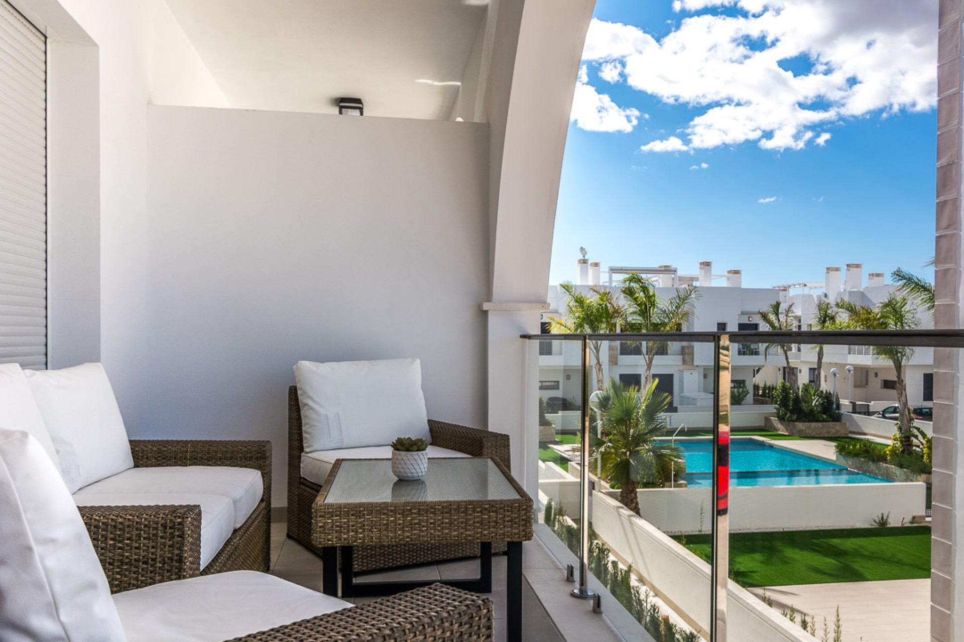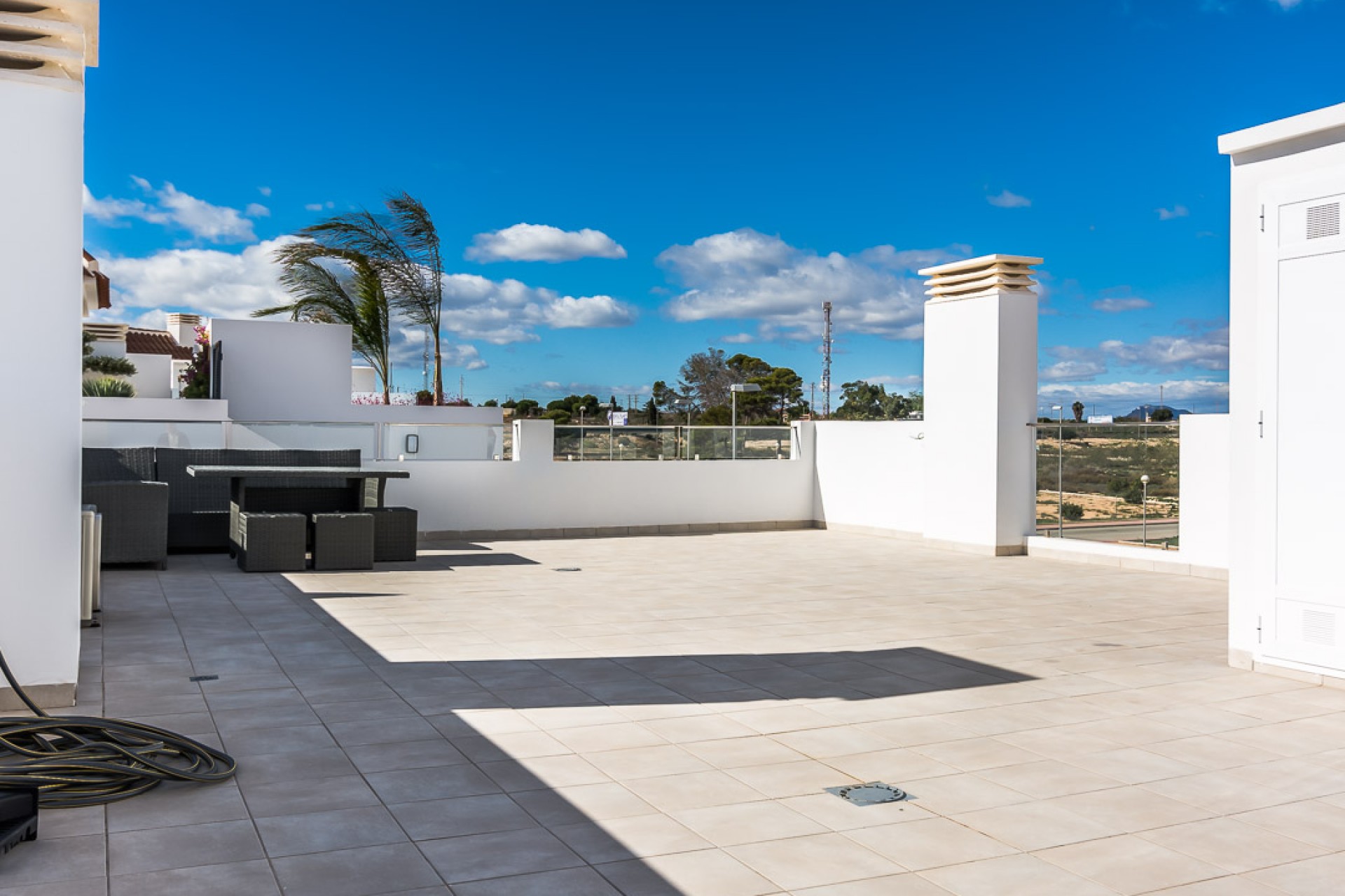 Moderne boligkompleks med leiligheter beliggende i et av de mest populære områdene i Ciudad Quesada, Doña Pepa. Det er kort avstand til golfbaner, badeland, supermarkeder, butikker og restauranter, og bare 5 minutters kjøring til de vakre strendene i Guardamar! Denne leiligheten har 2 soverom, 2 bad og en stor takterrasse med fantastisk utsikt! Leiligheten selges fullt møblert, både innvendig og utvendig. Komplekset har store områder med vakre grønne hager og et felles svømmebasseng.
