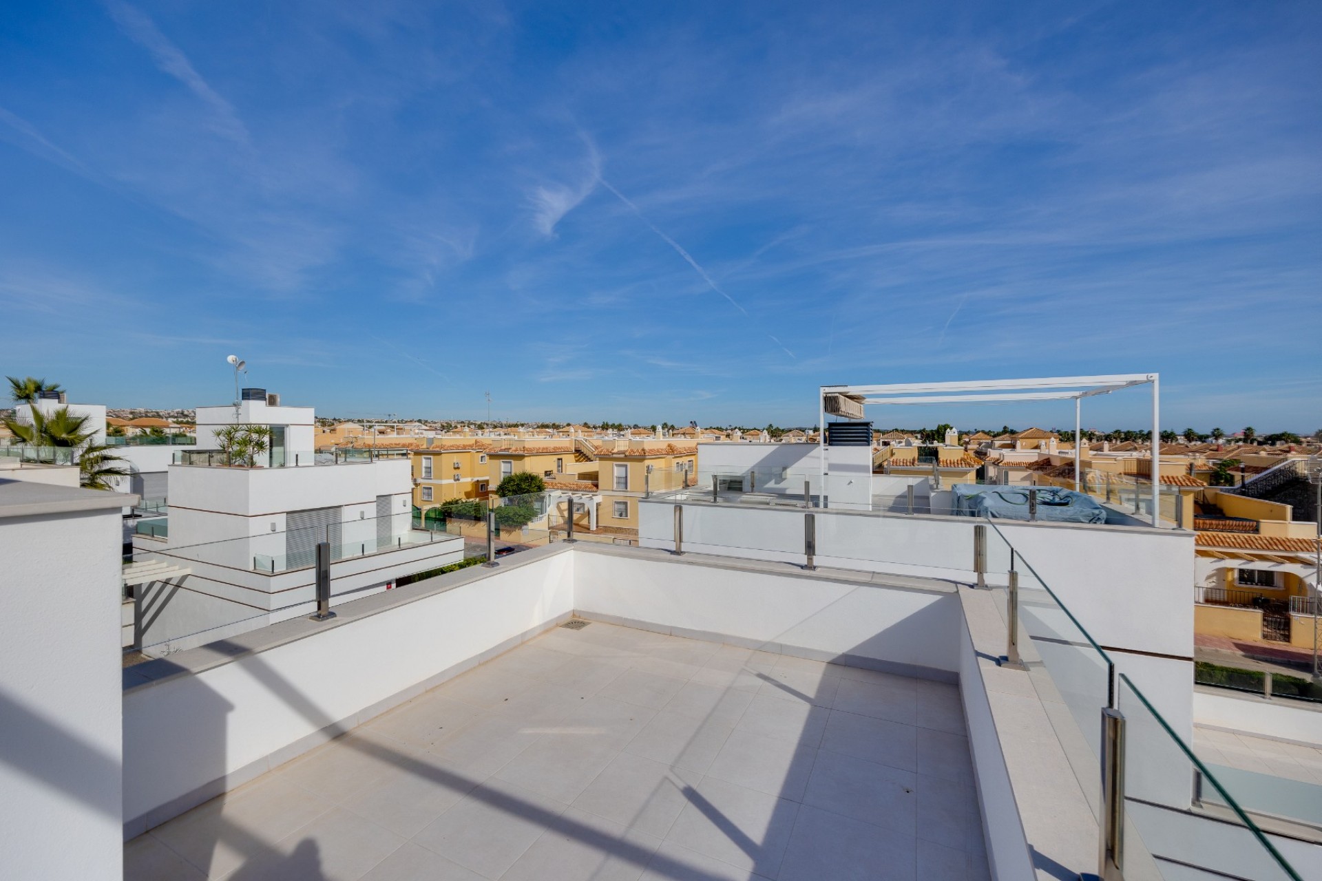 Velkommen til denne elegante villaen med høy standard og komplett design – perfekt for de som ønsker komfort, stil og solfylte dager på Costa Blanca. Eiendommen er fordelt over to etasjer og tilbyr 3 romslige soverom og 3 moderne bad, med gulvvarme for ekstra komfort året rundt. Den åpne stue- og kjøkkenløsningen har store vinduer som slipper inn rikelig med lys og gir direkte tilgang til den vakre hagen med privat basseng – ideelt for avslapning eller sosiale sammenkomster. Fra takterrassen kan du nyte solen og den friske middelhavsluften med god plass til utemøbler og solsenger. Boligen har også privat parkering og selges møblert, klar til innflytting. Beliggenheten er perfekt – i et rolig og trygt område, men likevel i gangavstand fra butikker, restauranter og Consum-supermarkedet. Et komplett hjem for både fastboende og ferierende som ønsker det lille ekstra. Viktige punkter: 3 soverom, 3 bad Privat basseng og hage Stor takterrasse Gulvvarme Møblert Privat parkering Nær butikker og restauranter