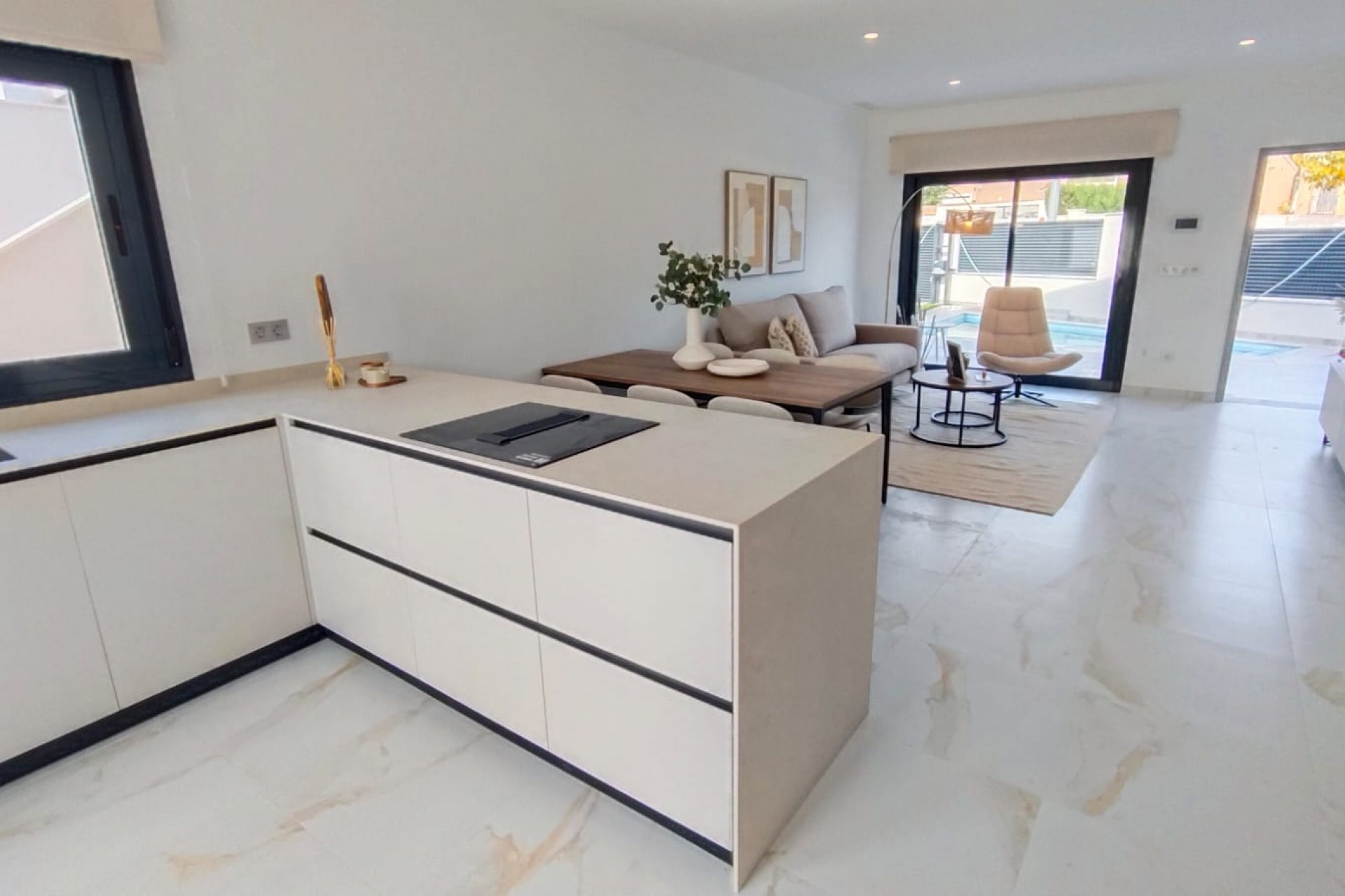 Oppdag denne hytta i Pilar de la Horadada Denne sjarmerende, moderne hytta ligger i det rolige og attraktive området Pinar de Campoverde, og venter på å tilby deg en enestående livsstil. Med et areal på 112,07 m² og en imponerende tomt på 337,38 m², utstråler hvert hjørne av denne eiendommen lys og komfort. Et romslig og komfortabelt hjem Denne hytta har tre koselige soverom, ideelle for å nyte familiestunder eller ønske venner velkommen. De to romslige badene er designet for å gi komfort og privatliv, slik at hver dag, og hver morgen, begynner fredelig. Moderne og åpen design Interiørplanløsningen er åpen, noe som gir en perfekt flyt mellom rommene. Det fullt utstyrte amerikanske kjøkkenet integreres sømløst med stuen, og skaper et perfekt miljø for å bo sammen. De store vinduene slipper inn naturlig lys i hvert hjørne, noe som fremhever skjønnheten i hver eneste detalj i hjemmet. Eksteriør og naturlige omgivelser Denne eiendommens appell strekker seg til utsiden, hvor du kan nyte en vakker hage og et forfriskende basseng, ideelt for de solfylte dagene som kjennetegner provinsen Alicante. Sørøstorienteringen sikrer at hjemmet ditt er opplyst mesteparten av dagen mens du nyter utsikten fra balkongen eller terrassen din. Komfort og utstyr Denne hytta er designet med tanke på din komfort. Med forhåndsinstallert klimaanlegg og oppvarming kan du tilpasse den til dine behov gjennom hele året. I tillegg har den en rekke egenskaper som gjør den enda mer attraktiv: Parkering for dine besøkendes bekvemmelighet. Ekstra lagringsplass for å holde alt organisert. Vaskerom, som gjør hverdagsoppgaver enklere. Utendørs dusj som lar deg nyte solen etter en dukkert i bassenget. Sikkerhetsdør for større trygghet. Energieffektivitet og sertifiseringer Denne hytta er ikke bare vakker og komfortabel, men den oppfyller også høye energieffektivitetsstandarder, med en energi- og utslippsklassifisering av type B. Dette vil ikke bare hjelpe deg med å redusere karbonavtrykket ditt, men også gi deg et mer økonomisk hjem når det gjelder energiforbruk. Hvis du leter etter et hjem som kombinerer modernitet, komfort og en uslåelig beliggenhet, er denne hytta i Pilar de la Horadada det perfekte valget for deg. Vi inviterer deg til å besøke den og oppdage alle fordelene som denne fantastiske eiendommen har å tilby deg.