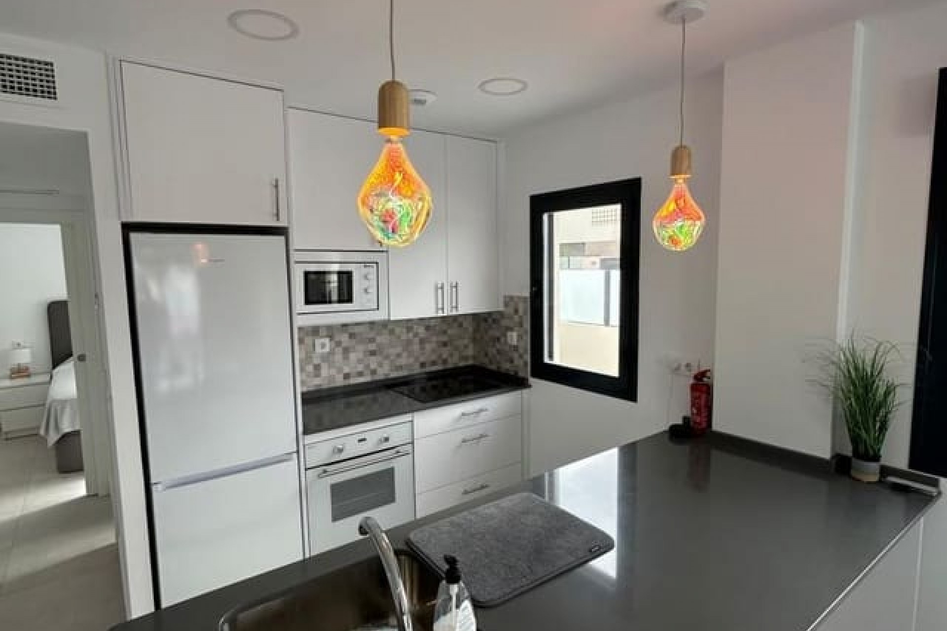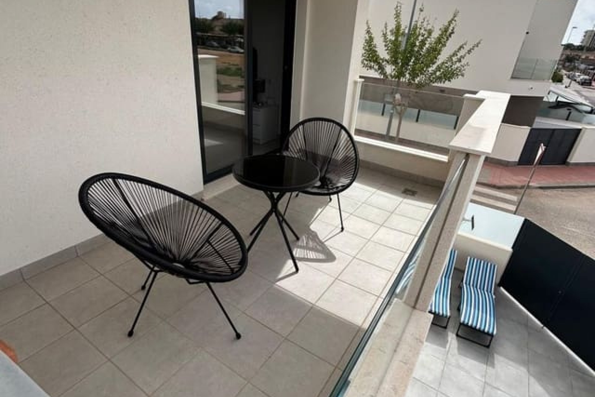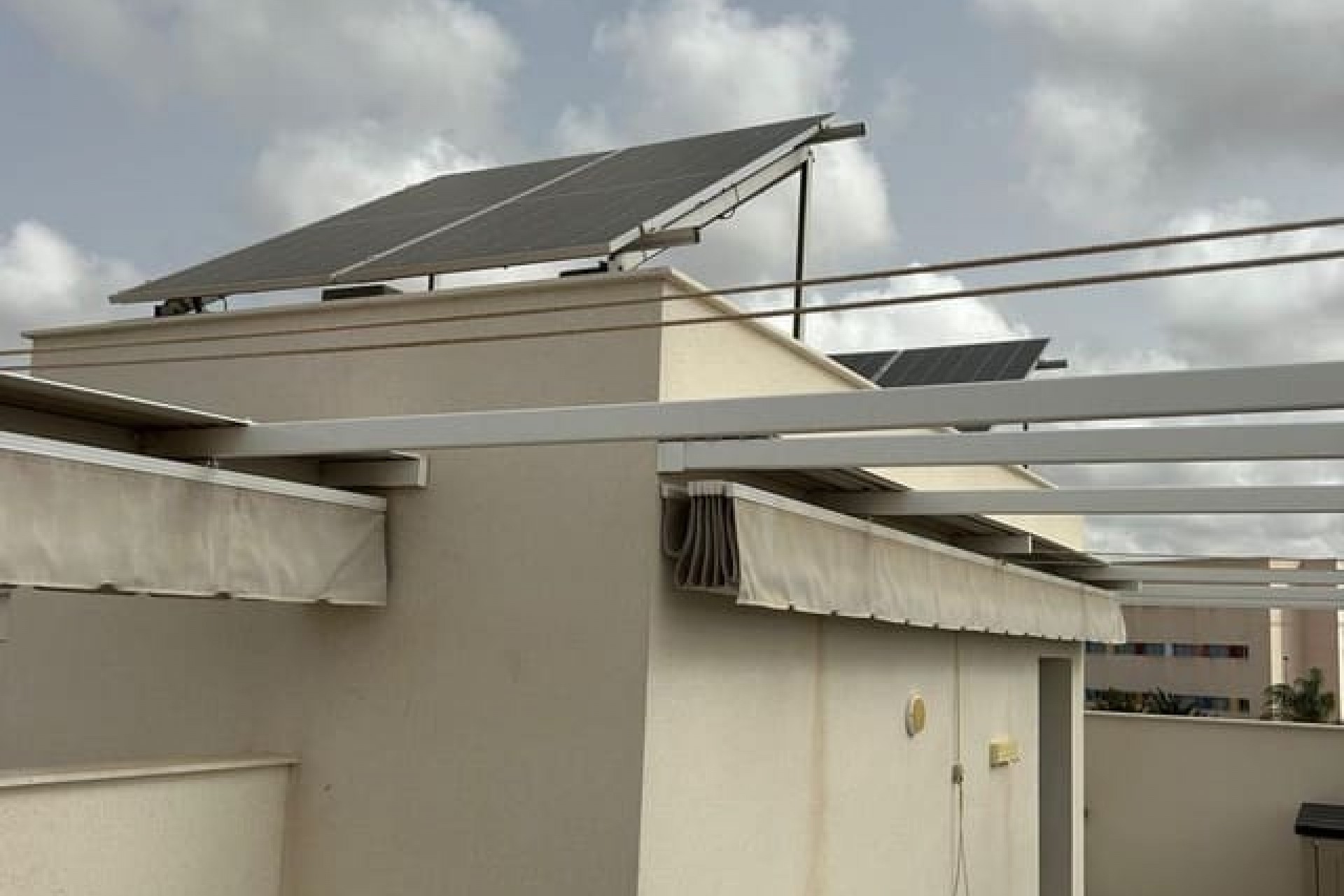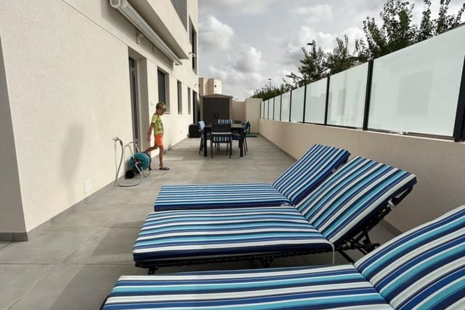 Tomannsbolig sør-/østvendt villa med 3 soverom og 2 bad, privat basseng og privat takterrasse i Santiago de la Ribera. Stor tomt med inngjerdet innkjørsel som fører til en stor terrasse foran. Det store svømmebassenget ligger foran eiendommen, og det er god plass til å spise og sole seg. Huset har en stor stue med utsikt over bassenget og et moderne, åpent kjøkken med fullt utstyrt kjøkken. Bak kjøkkenet er det et dobbelt soverom med innebygde garderober og en dør som fører til sideterrassen. Det er også et moderne dusjrom i første etasje. I første etasje er det to doble soverom med innebygde garderober. Soverommet foran huset har tilgang til en terrasse. I denne første etasjen er det også et moderne dusjrom. Det er trapper fra første etasje som fører deg til ditt eget private takterrasseområde med utendørs kjøkkenområde. Nok et fantastisk utendørs oppholdsrom. Dette huset er bare to år gammelt og vil bli solgt fullt møblert. Det ligger i gangavstand til stranden og en kort kjøretur til Dos Mares kjøpesenter og Pinatar kjøpesenter. Murcia flyplass ligger omtrent 30 minutters kjøretur unna, og Alicante ligger omtrent 1 times kjøretur unna. Det finnes også noen barer og kafeer i nærheten av eiendommen. Santiago de la Ribera er en vakker by ved bredden av Mar Menor. Det er kystområdet i byen San Javier og startet som en enkel fiskerlandsby. Den har nå blitt et populært feriemål, som tiltrekker seg ikke bare spanjoler, men også turister fra hele Europa. Santiago har en moderne følelse, selv om den fortsatt har beholdt sin «fiskerlandsby»-atmosfære. Den har en veldig vakker promenade med majestetiske palmer og 2 kilometer med vakre sandstrender. Herfra kan du ta en båttur over det rolige vannet i Mar Menor, til La Manga-stripen på den andre siden. Hovedhandleområdet ligger egentlig i byen San Javier, men det er noen butikker i de smale gatene å kikke i, prøv det på en onsdag morgen når det er et stort gatemarked.
