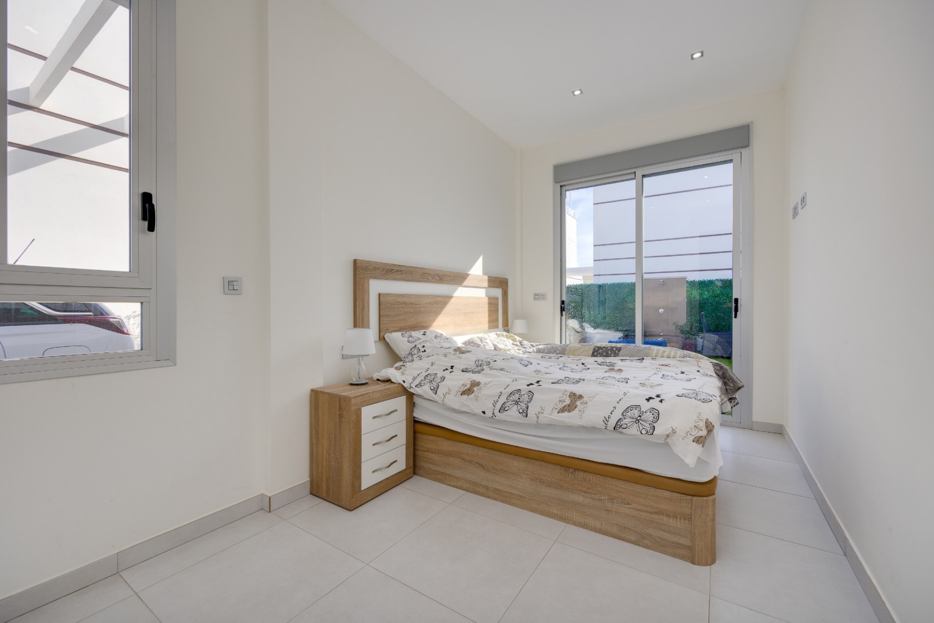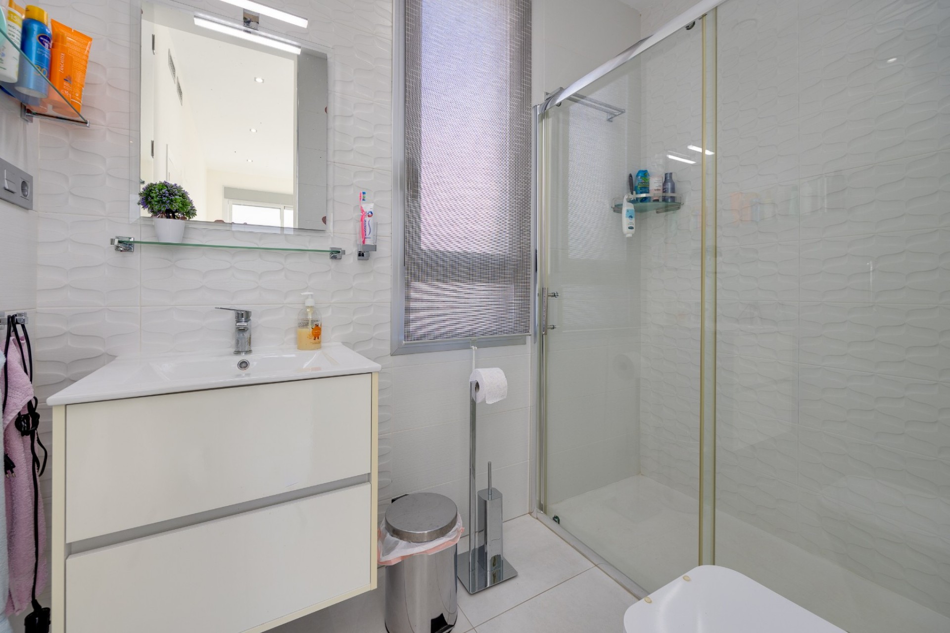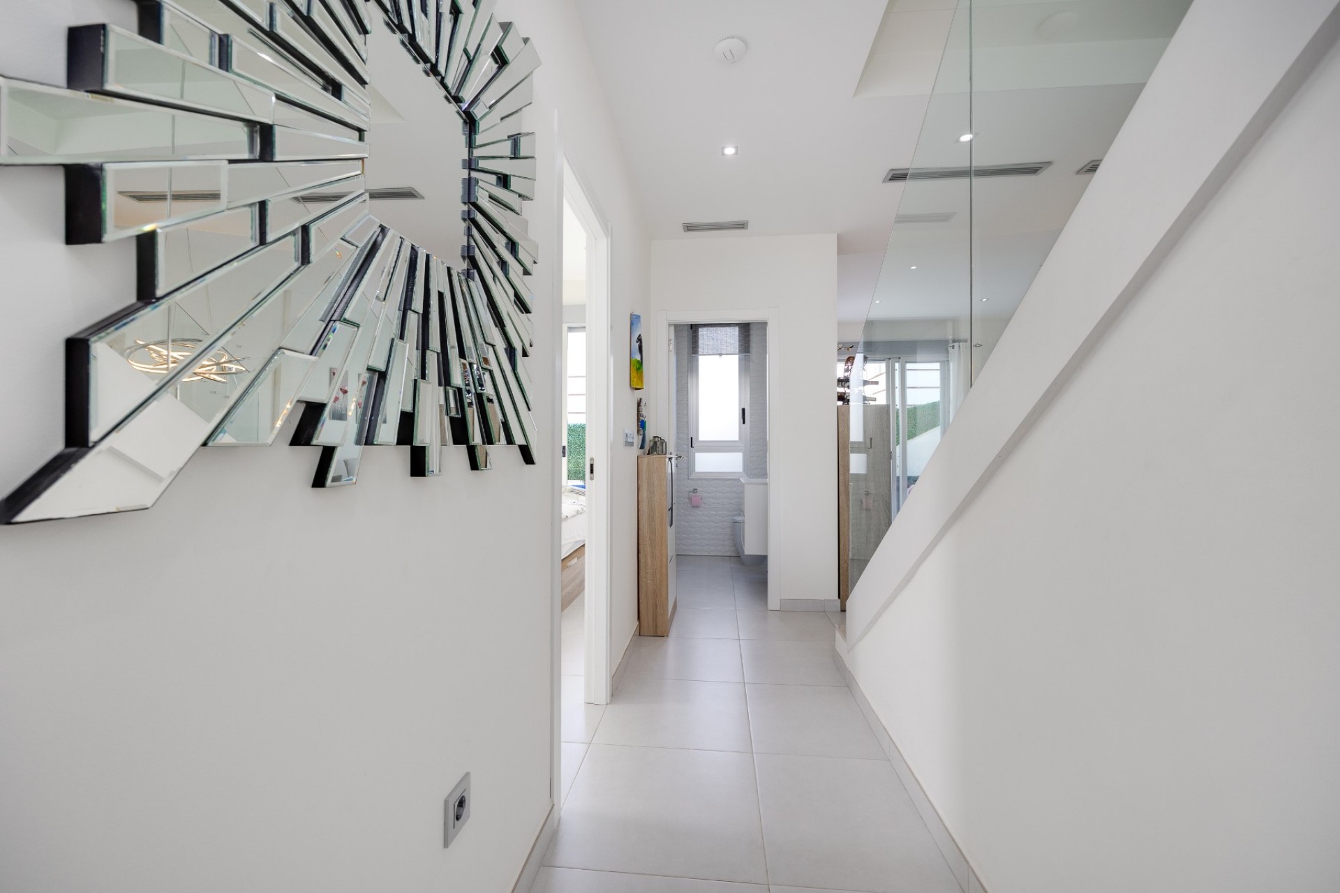 Velkommen til denne elegante villaen med høy standard og komplett design – perfekt for de som ønsker komfort, stil og solfylte dager på Costa Blanca. Eiendommen er fordelt over to etasjer og tilbyr 3 romslige soverom og 3 moderne bad, med gulvvarme for ekstra komfort året rundt. Den åpne stue- og kjøkkenløsningen har store vinduer som slipper inn rikelig med lys og gir direkte tilgang til den vakre hagen med privat basseng – ideelt for avslapning eller sosiale sammenkomster. Fra takterrassen kan du nyte solen og den friske middelhavsluften med god plass til utemøbler og solsenger. Boligen har også privat parkering og selges møblert, klar til innflytting. Beliggenheten er perfekt – i et rolig og trygt område, men likevel i gangavstand fra butikker, restauranter og Consum-supermarkedet. Et komplett hjem for både fastboende og ferierende som ønsker det lille ekstra. Viktige punkter: 3 soverom, 3 bad Privat basseng og hage Stor takterrasse Gulvvarme Møblert Privat parkering Nær butikker og restauranter