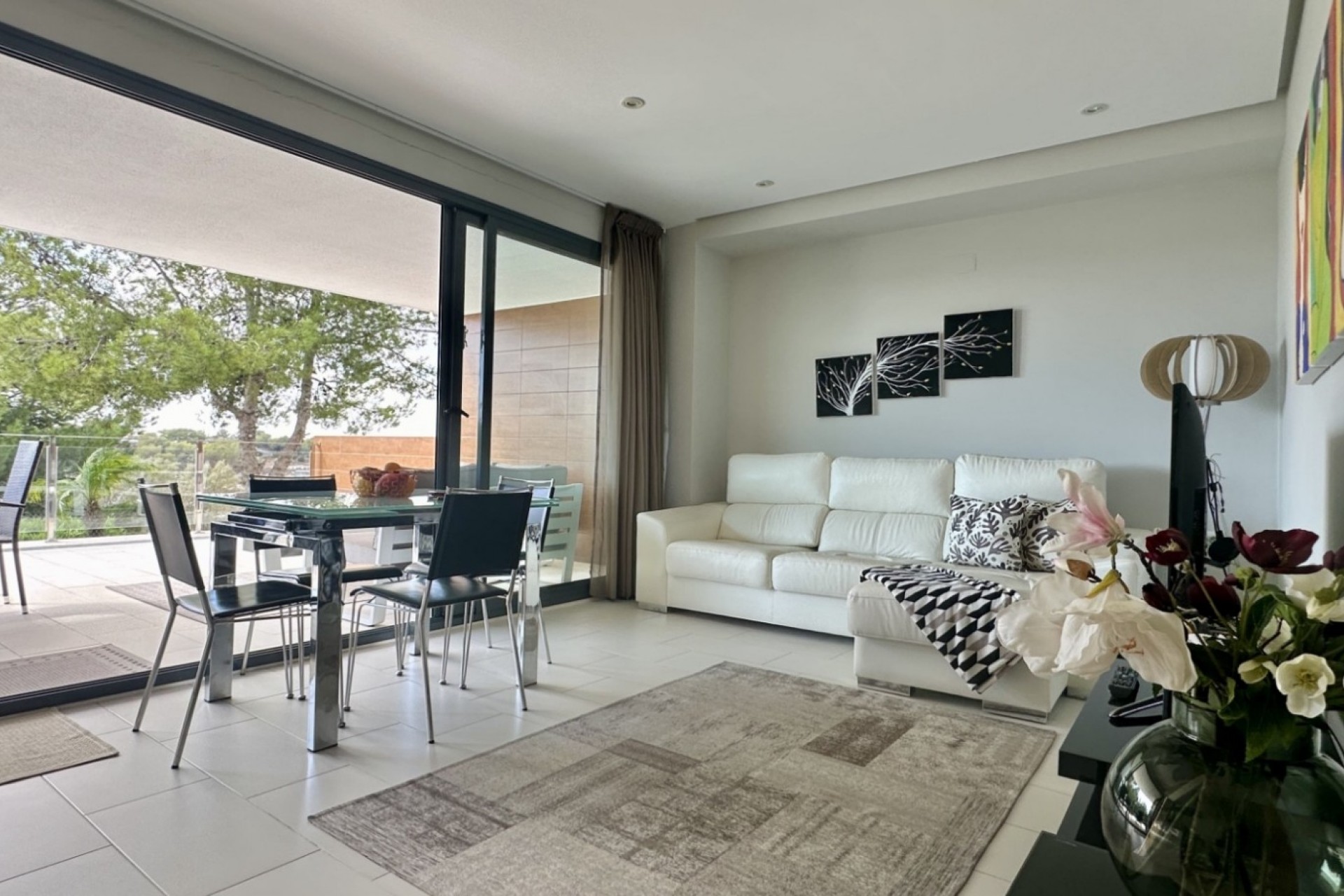 Vi er glade for å presentere denne vakkert vedlikeholdte leiligheten i første etasje i hjertet av Villamartín – et av de mest populære områdene i Orihuela Costa. Denne stilige boligen med 2 soverom og 2 bad er innflyttingsklar og tilbyr den perfekte kombinasjonen av komfort, design og uteliv. Gå inn, og du blir møtt av et lyst, moderne interiør med åpen kjøkkenløsning, romslig stue og et separat vaskerom. Boligen har to romslige terrasser – en 36 m² bakterrasse med utsikt over fellesbassenget og hagene, og en 29 m² frontterrasse som er stor nok til å parkere bilen din på den private tomten. Dette gir deg muligheten til å nyte sol eller skygge hele dagen. Eiendommen ble bygget i 2013 og kan skilte med et rent og moderne design med innebygde garderober, klimaanlegg og høykvalitets finish overalt. Beliggende i et rolig, men sentralt område, er den ideell enten du leter etter en heltidsbolig, et feriested eller en solid investering. Nøkkelfunksjoner: 2 romslige soverom og 2 bad 79 m² bygget areal med 60 m² brukbar boareal Store private terrasser: 36 m² bak + 29 m² foran Fullt utstyrt kjøkken + vaskerom Innebygde garderober, klimaanlegg Vakkert felles svømmebasseng og hageområde Energieffektiv bygning (sertifisert) Heistilgang og inngjerdet område Privat garasjeplass inkludert Sørvendt retning – lys hele dagen Uslåelig beliggenhet Villamartín er et pulserende reisemål året rundt kjent for sine golfbaner, internasjonale fellesskap og utmerkede tjenester. Nyt 4 førsteklasses golfbaner i nærheten (inkludert Las Colinas, rangert blant de beste i Spania), pluss et bredt utvalg av restauranter, barer, supermarkeder og underholdning. La Zenia Boulevard, det største kjøpesenteret på Costa Blanca, ligger bare noen minutter unna. Strender, kinoer, gokart og mer – alt er lett tilgjengelig. Denne eiendommen er ideell for alle som leter etter en stilig, lettstelt leilighet i en førsteklasses beliggenhet på Costa Blanca med sterkt utleiepotensial. Ikke gå glipp av denne muligheten – kontakt oss i dag for å avtale en privat visning. Velkommen hjem.