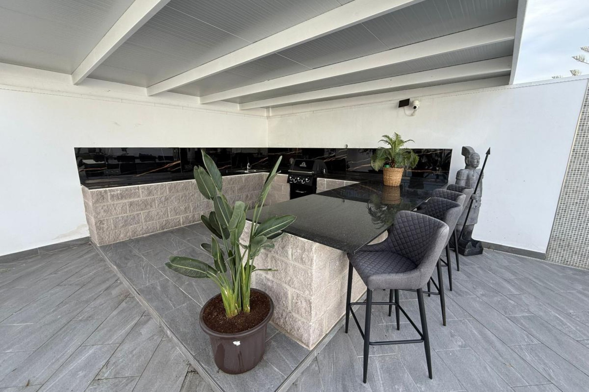 Moderne villa med oppvarmet basseng i Ciudad Quesada, Alicante 5 soverom – 3 bad – Tomt på ca. 500 m² – Bygget areal ca. 132 m² Denne totalrenoverte moderne villaen ligger i et rolig og svært ettertraktet nabolag i Ciudad Quesada, og tilbyr en luksuriøs livsstil under den spanske solen. Ved å kombinere stilig interiør, fantastiske uteområder og eksklusive fasiliteter, er dette en sjelden mulighet på markedet. Eiendommens høydepunkter: Moderne interiør på ca. 132 m² 500 m² tomt, vakkert anlagt med elegant hage og flislagte terrasser Privat oppvarmet basseng som måler 8 x 4 meter Overbygd utekjøkken med bar, perfekt for sommermiddager Klimaanlegg i alle rom 5 romslige soverom og 3 moderne bad Lys stue med direkte tilgang til terrassen Utmerket privatliv i fredelige omgivelser Hva gjør denne villaen unik: Moderne, svært stilig design Optimaliserte uteområder for å nyte klimaet hele året Ideell for en stor familie eller som et fritidsbolig Høyt utleiepotensial på grunn av den sjeldne planløsningen med 5 soverom og 3 bad Innflyttingsklar – ingen renovering nødvendig Om Ciudad Quesada: Ciudad Quesada ligger bare noen minutter fra de gylne strendene på Costa Blanca og beleilig nær Alicante lufthavn. Området er kjent for sine rolige, trygge boligstrøk og avslappede livsstil. Her finner du et bredt utvalg av fasiliteter, inkludert supermarkeder, restauranter, barer, internasjonale skoler, golfbaner og fritidsfasiliteter. Ciudad Quesada kan også skryte av et vennlig internasjonalt samfunn, noe som gjør det ideelt for familier eller pensjonister som ønsker å nyte det spanske klimaet og middelhavslivsstilen.