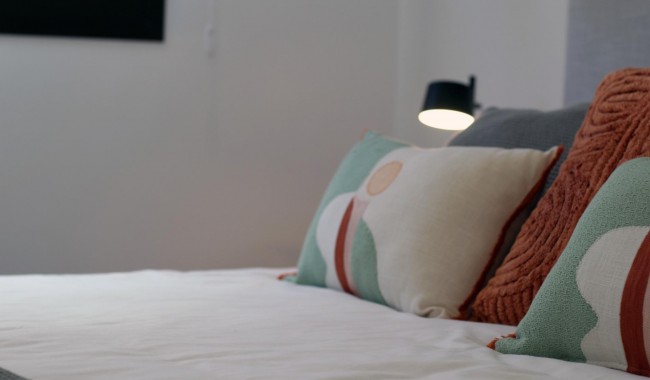 Wnętrza wykończone są materiałami najwyższej jakości, w tym gładkimi tynkami ściennymi, porcelanowymi płytkami podłogowymi oraz szafami wnękowymi w każdej sypialni. Otwarte kuchnie są w pełni wyposażone w nowoczesne szafki. Dodatkowe udogodnienia obejmują instalację klimatyzacji kanałowej i systemy aerotermiczne zapewniające energooszczędną ciepłą wodę.