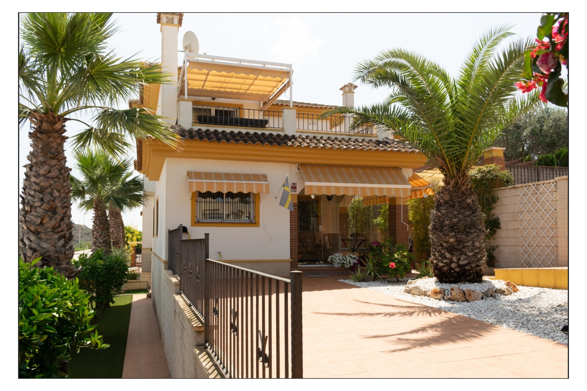 Willa ma dwa piętra i łączną powierzchnię 98 m². Willa posiada również piwnicę, która obecnie służy do przechowywania wina i innych rzeczy. Istnieje możliwość wybudowania dodatkowej sypialni w piwnicy. Parter składa się z jednej sypialni i jednej łazienki. Znajduje się tu również w pełni wyposażona i nowoczesna kuchnia z otwartą przestrzenią na salon, gdzie jest dużo miejsca zarówno na sofę, jak i jadalnię. Dodatkowo, przy wejściu znajduje się przestronny, przeszklony taras, który zapewni schronienie zimą. Taras można całkowicie otworzyć i wykorzystać jako przedłużenie przestrzeni zewnętrznej. Z przeszklonego tarasu jest bezpośrednie wyjście do ogrodu przed domem. Na parterze znajduje się centralne ogrzewanie. Na piętrze znajdują się dwie przestronne sypialnie i łazienka z wanną. Obie sypialnie wyposażone są w klimatyzację z funkcją ogrzewania i chłodzenia. Z sypialni jest bezpośrednie wyjście na duży, słoneczny taras na dachu, z którego roztacza się piękny widok na góry. Na tarasie na dachu znajduje się część wypoczynkowa z sofą, krzesłami i stołem, a także pergola z regulacją wysokości. Na działce znajduje się parking z bramą elektryczną. Dom jest bardzo zadbany i w doskonałym stanie. Wokół willi rozciąga się przytulny ogród, którego większa część jest zwrócona na zachód, zapewniając doskonałe nasłonecznienie. W ogrodzie znajduje się kuchnia/grill na świeżym powietrzu oraz rośliny i kwiaty. Willa sąsiaduje z kompleksem mieszkalnym, w którym znajduje się basen i mnóstwo miejsca wokół niego, aby cieszyć się słońcem. Willa znajduje się w pobliżu wielu udogodnień, takich jak restauracje i sklep spożywczy w lokalnym centrum La Marquesa. Znajduje się tu również pole golfowe, gdzie goście mogą grać w golfa przez cały rok. Najbliższa plaża Guardamar jest oddalona o zaledwie 6 km. Lotnisko w Alicante jest oddalone o około 35 minut jazdy samochodem. Tętniące życiem przez cały rok centrum miasta Quesada jest oddalone o około 4 km z wieloma udogodnieniami, takimi jak restauracje, sklepy i wiele innych.
