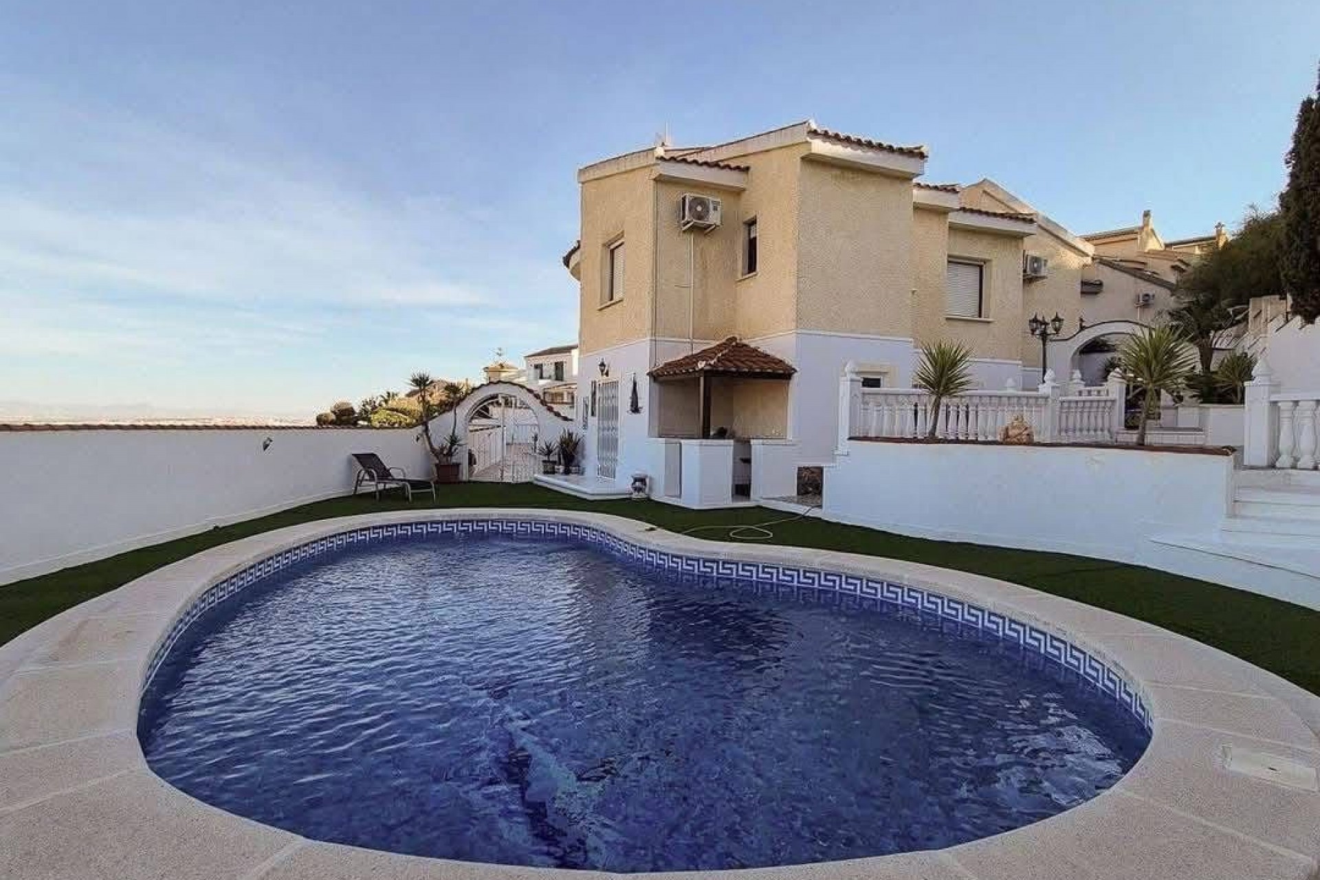 Ten imponujący dom oferuje pięć przestronnych sypialni, trzy nowoczesne łazienki oraz liczne strefy dzienne, zaprojektowane z myślą zarówno o relaksie, jak i rozrywce. Położenie willi na wzniesieniu oferuje rozległe widoki na pole golfowe i okoliczne wzgórza, a rozległe tarasy, prywatny basen i bujne ogrody zachęcają do korzystania ze słońca Costa Blanca przez cały rok.