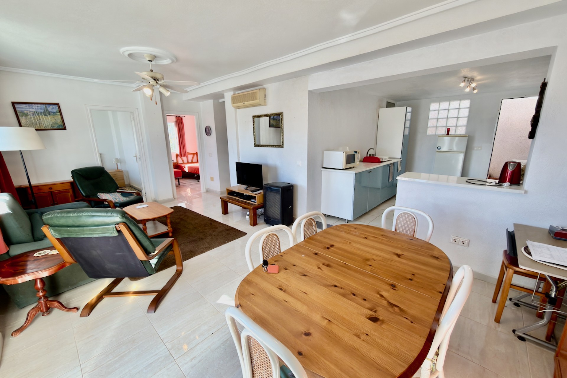 Wejdź do środka, do przytulnej , otwartej przestrzeni salonu i jadalni z powiększoną, otwartą kuchnią , tworzącą znacznie większą i bardziej funkcjonalną przestrzeń do gotowania. Dom wyposażony jest w trzy wbudowane szafy , klimatyzację i wentylatory sufitowe , zapewniające komfort przez cały rok. Osobne pomieszczenie gospodarcze i niewielka przestrzeń do przechowywania pod budynkiem dodają cennej praktyczności.