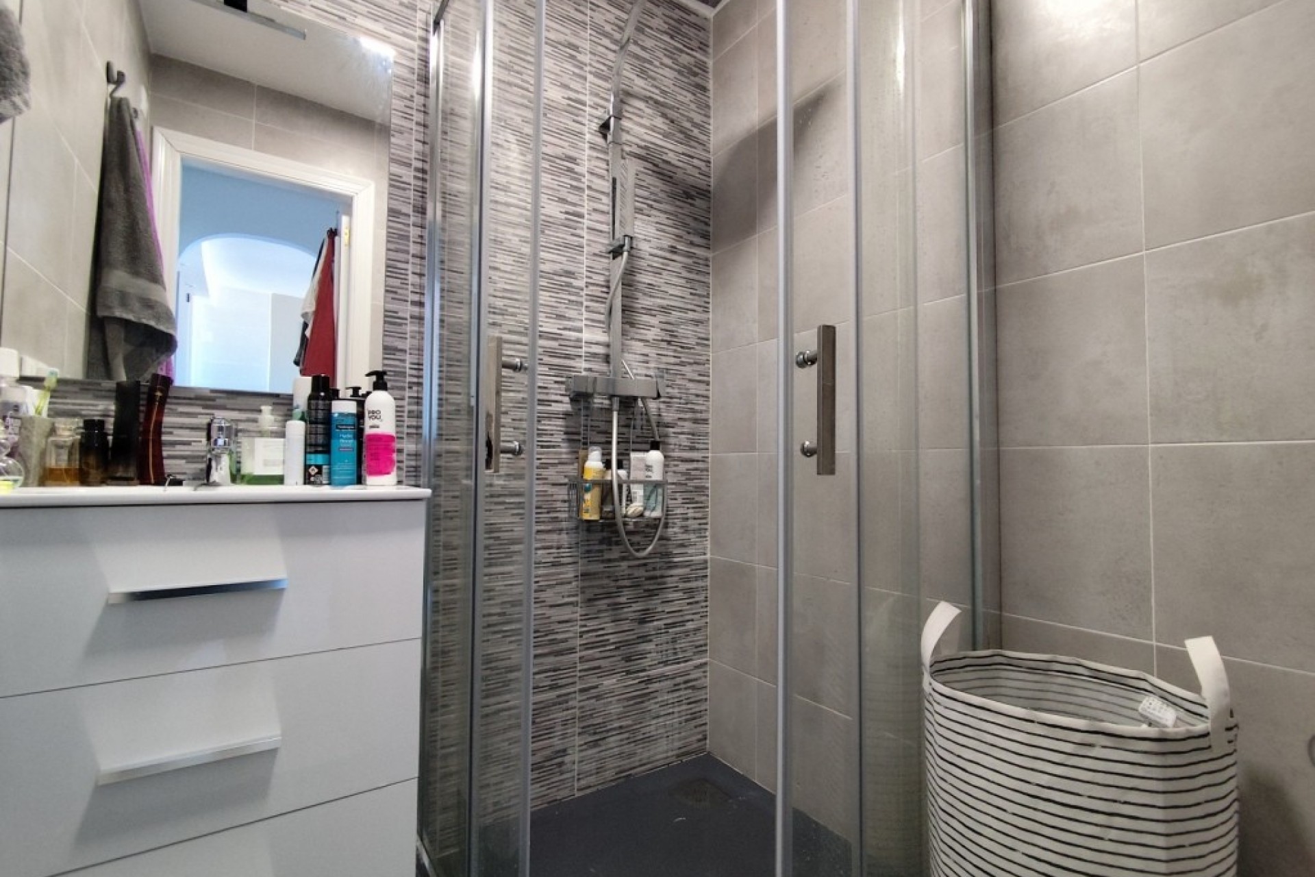 Apartament. Przestronny apartament z panoramicznym widokiem na morze w Torrevieja Ten uroczy apartament oferuje idealną równowagę przestrzeni, komfortu i uprzywilejowanej lokalizacji tuż przy Parque Aromático w Torrevieja. Dzięki jasnym wnętrzom, przytulnemu tarasowi i spektakularnym widokom na morze, ta nieruchomość jest idealna jako stałe miejsce zamieszkania, dom wakacyjny lub inwestycja. Cechy nieruchomości 2 sypialnie 1 łazienka Jasny salon z bezpośrednim dostępem do przytulnego tarasu z panoramicznym widokiem na morze W pełni wyposażona kuchnia ze sprzętem AGD Wbudowane szafy Klimatyzacja w salonie Wspólny basen dla mieszkańców Sprzedawany częściowo umeblowany, gotowy do zamieszkania. Lokalizacja Położony w spokojnej dzielnicy mieszkalnej obok pięknego Parque Aromático, ten apartament oferuje zarówno spokój, jak i wygodę. Sklepy, restauracje i supermarkety są w zasięgu ręki, a złote piaszczyste plaże La Mata i Torrevieja są oddalone o zaledwie kilka minut. Obszar ten jest również dobrze skomunikowany z transportem publicznym i krótką przejażdżką do lotnisk w Alicante i Murcji. Z zachwycającym widokiem na morze i pożądaną lokalizacją, ten apartament to fantastyczna okazja, by cieszyć się śródziemnomorskim stylem życia. Skontaktuj się z nami już dziś, aby uzyskać więcej informacji lub umówić się na oglądanie.