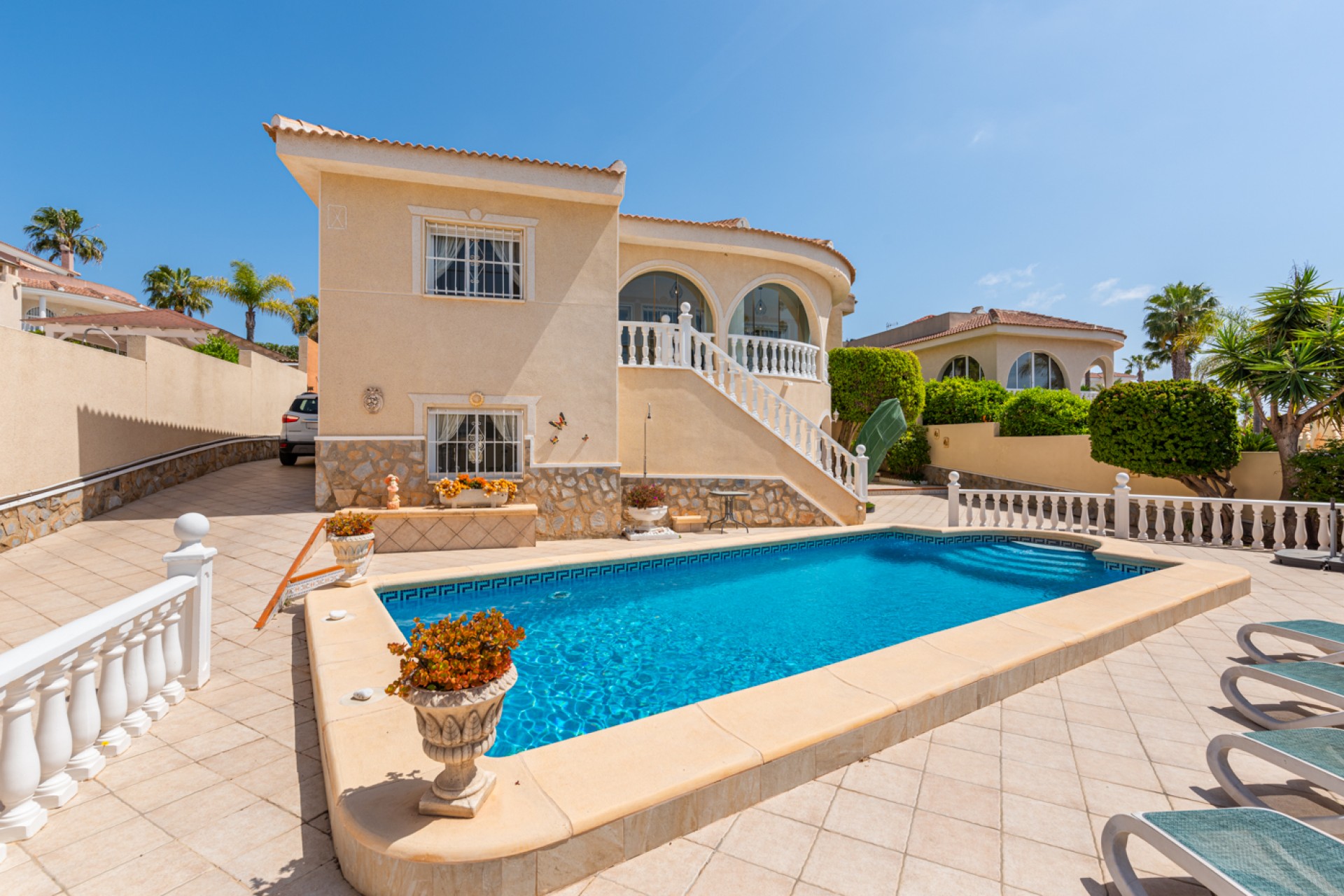 Willa zbudowana jest na południowej działce o powierzchni 600 m2 i jest rozmieszczona na dwóch poziomach. Ma łączną powierzchnię mieszkalną 182 mkw. Składa się z 4 dwuosobowych sypialni, 3 łazienek (w tym 2 z łazienkami), 2 kuchni, 2 salonów, 1 jadalni, pralni, pomieszczenia gospodarczego, prywatnego basenu i solarium.