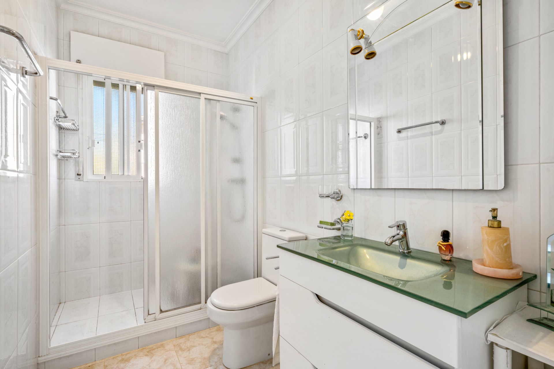 As you enter the first level, you’re greeted by a welcoming hallway leading to two spacious bedrooms, both with fitted wardrobes. The master bedroom features a large ensuite bathroom, ample storage, and patio doors that open onto a private terrace — an ideal spot to enjoy your morning coffee while taking in the view.