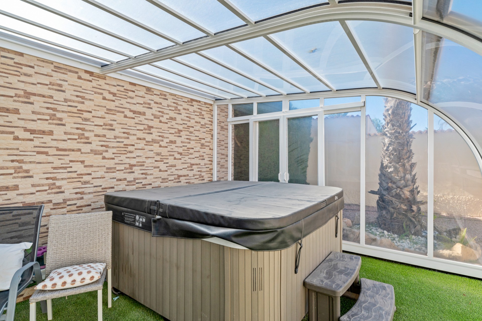 Outside, the villa features a beautifully landscaped garden, a recently renovated private pool area, and a fantastic BBQ and dining zone with seating for up to 10 people — ideal for entertaining or enjoying warm Spanish evenings.