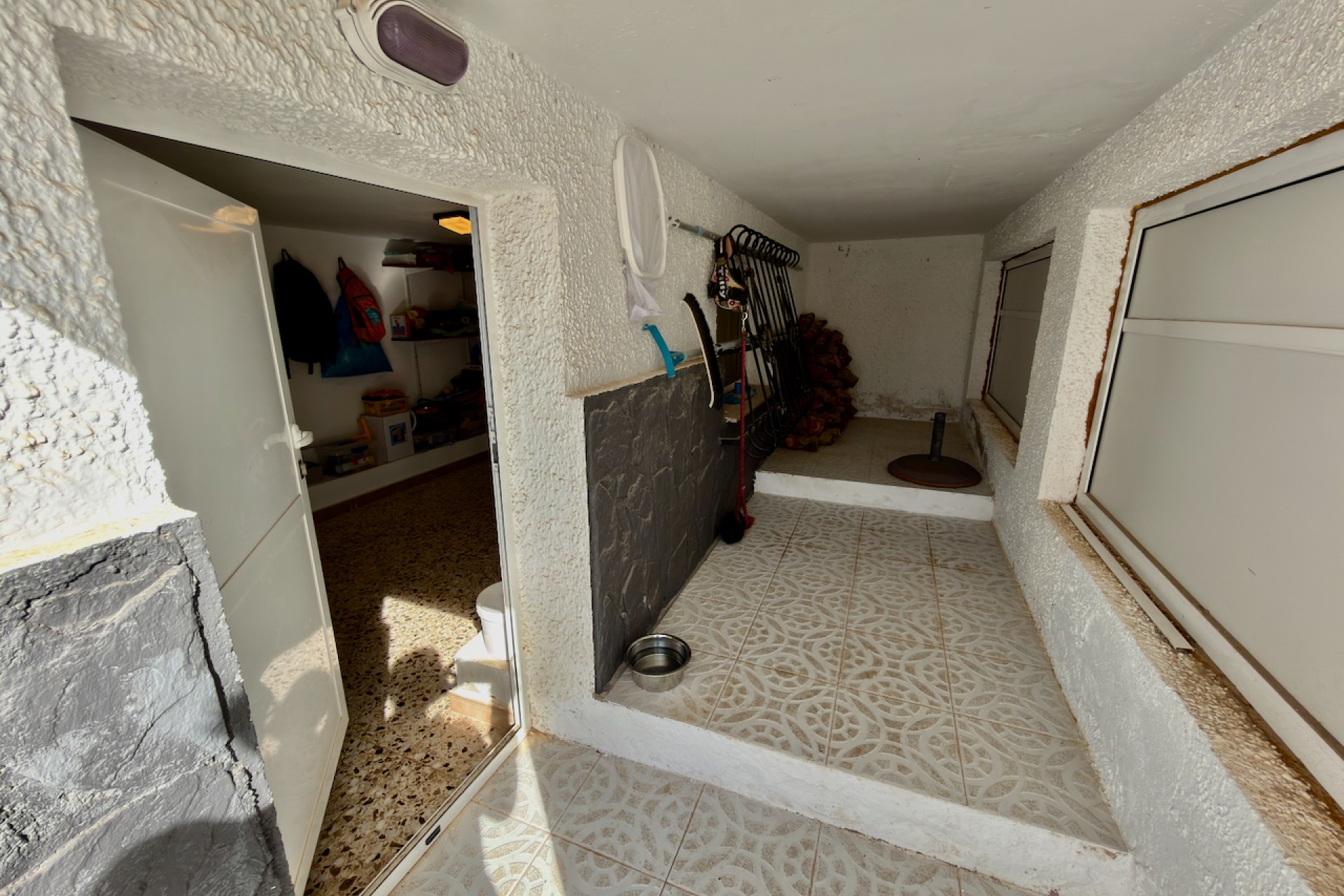 Outdoors, you’ll find a private swimming pool, low-maintenance gardens, and a fully equipped outdoor kitchen and BBQ area — perfect for entertaining friends and family. The glazed terrace/dining area overlooking the pool offers a lovely spot to relax during the cooler months.