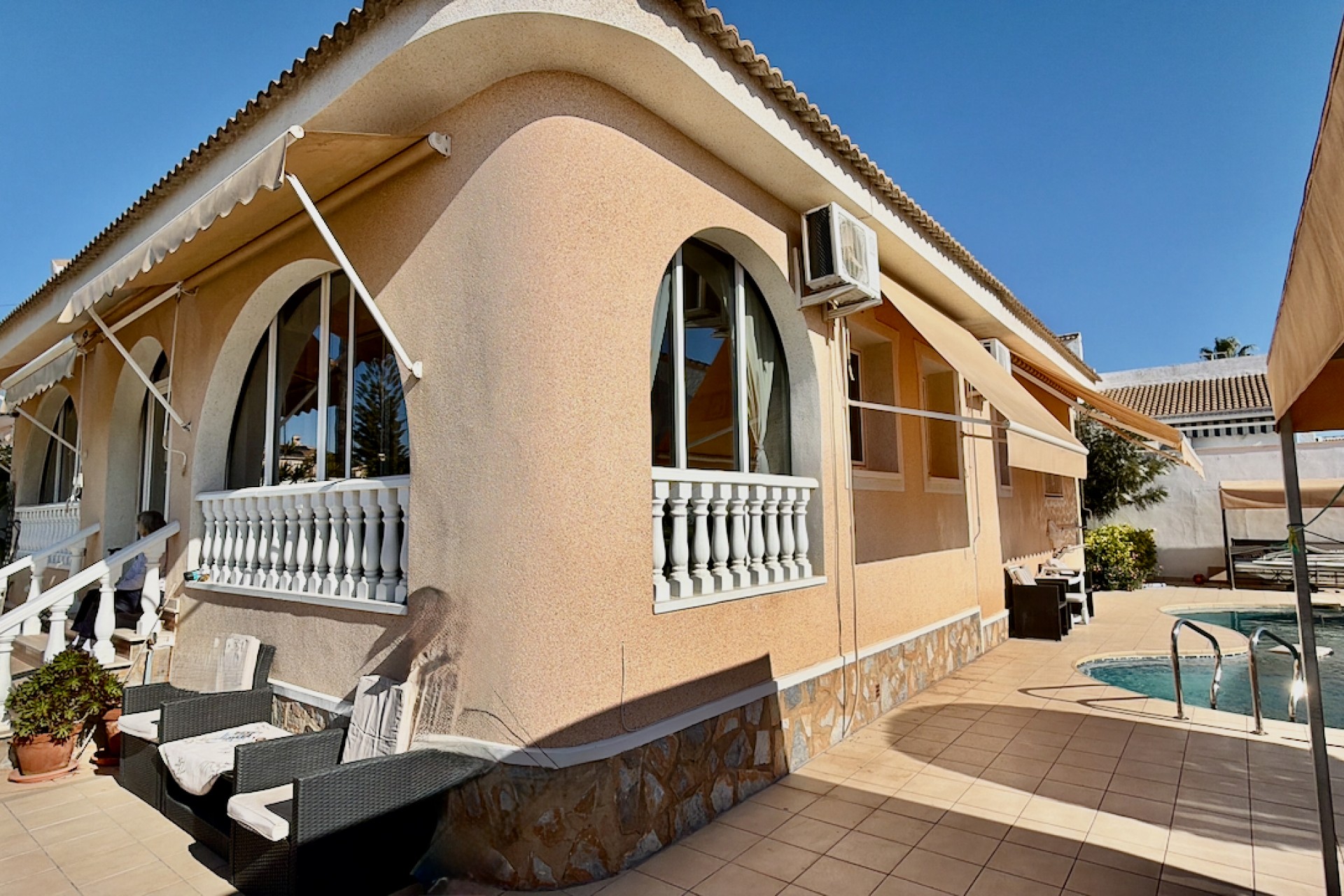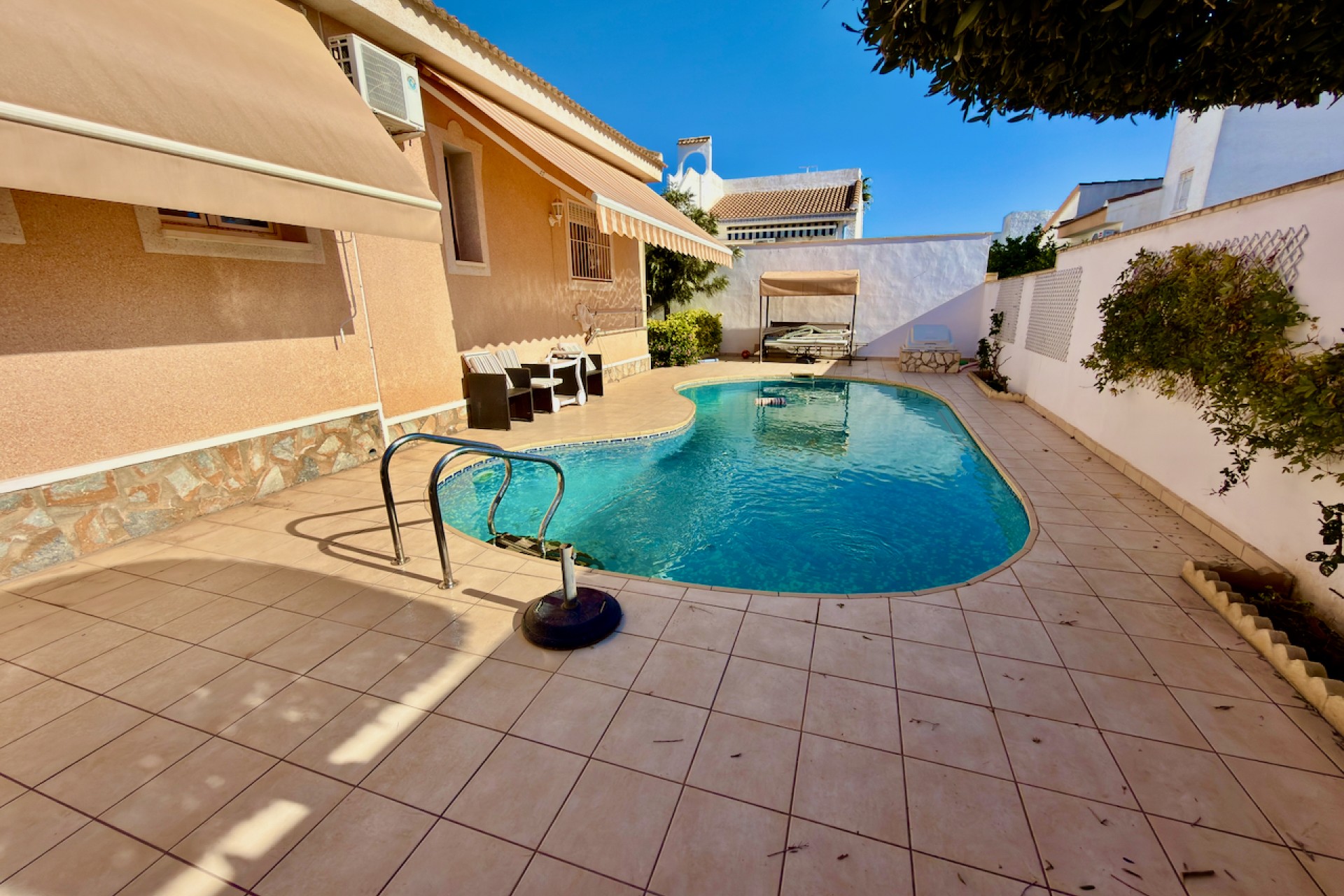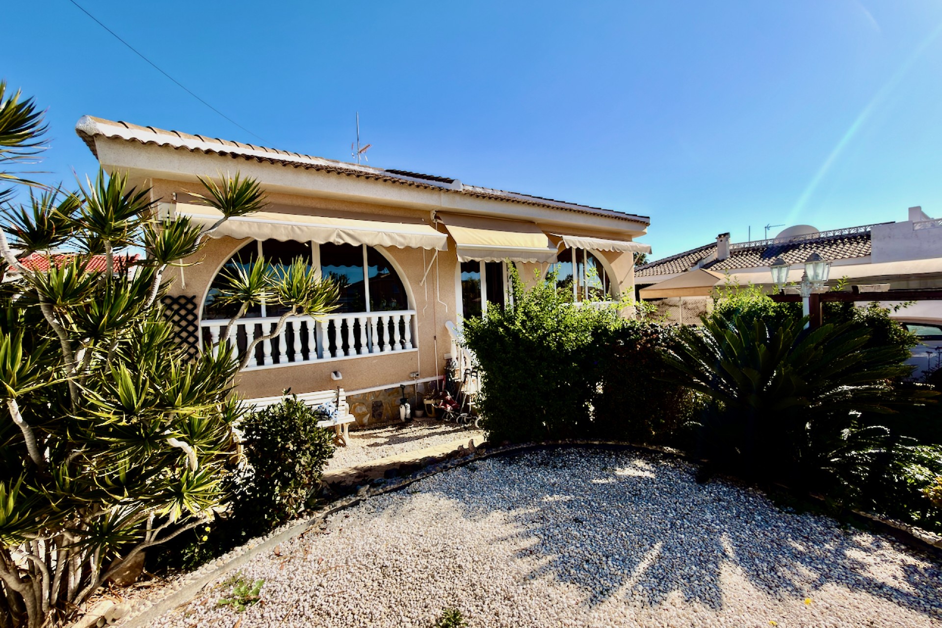 This well-presented three-bedroom villa is set on a generous 575 m² plot, offering privacy, comfort, and an ideal Mediterranean lifestyle. The property benefits from a desirable west-facing orientation, providing abundant natural light and beautiful afternoon and evening sunshine.