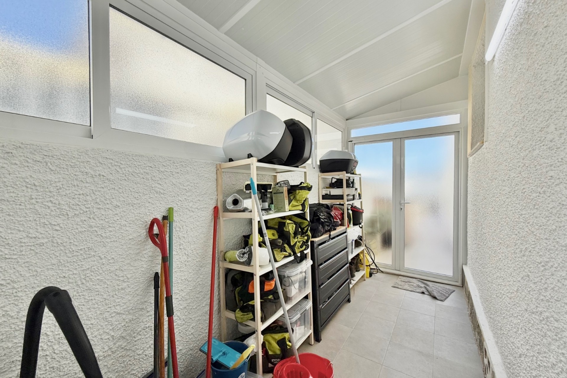 The bungalow offers 2 bedrooms and 1 bathroom, with the bathroom recently renovated and fitted with a modern walk-in shower. The home is equipped with air conditioning, PVC windows, and mosquito nets throughout, ensuring comfort all year round.