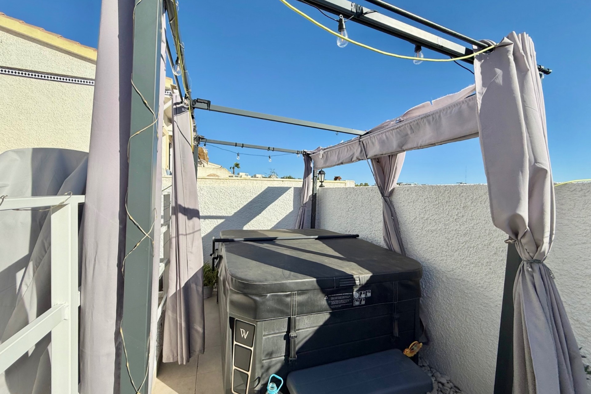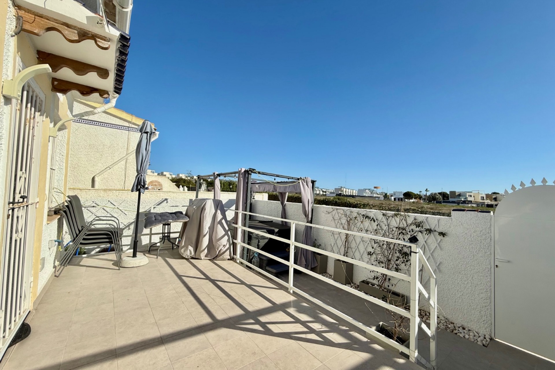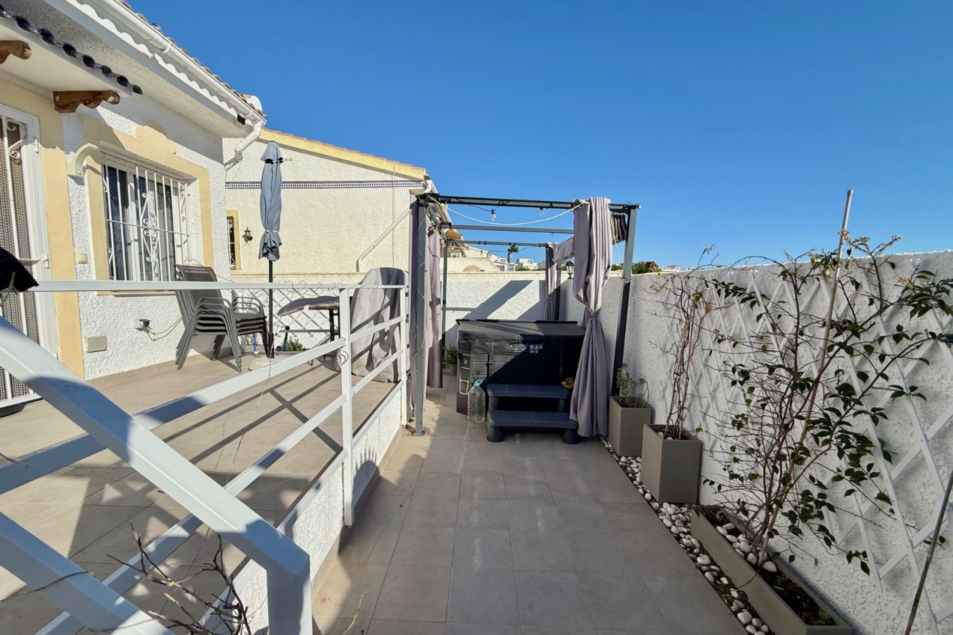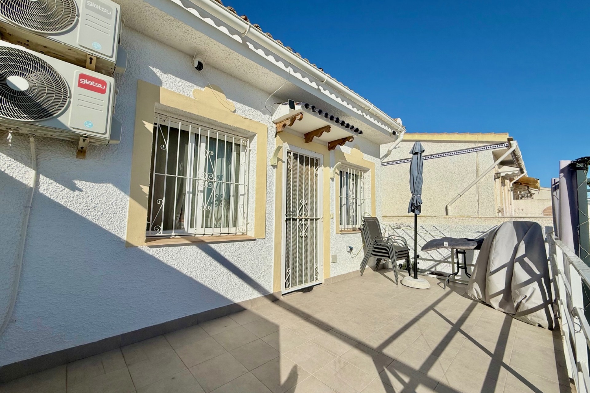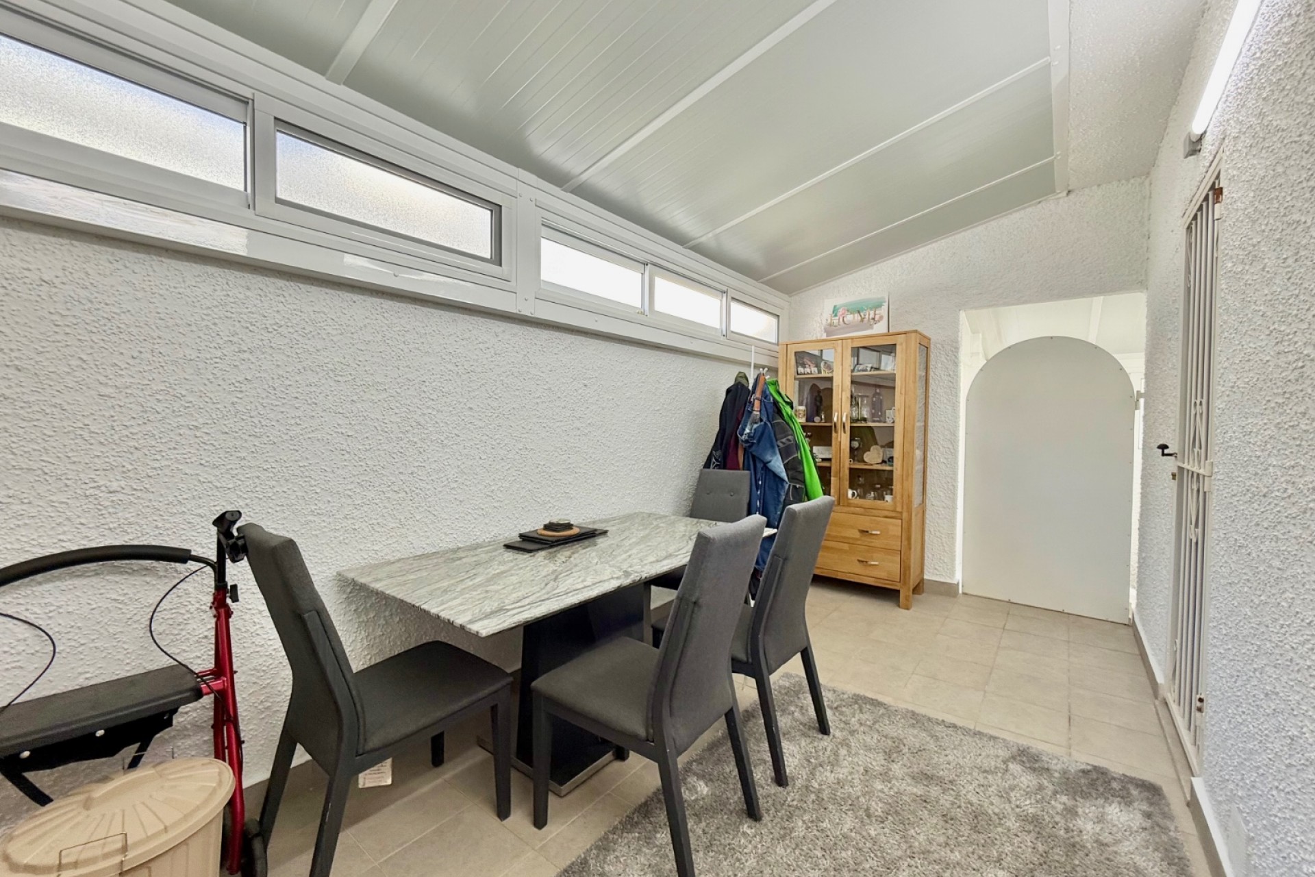 corner-plot bungalow located in a well-maintained gated community in Ciudad Quesada, surrounded by beautifully kept green areas. The property enjoys extra privacy and outdoor space thanks to its corner position.