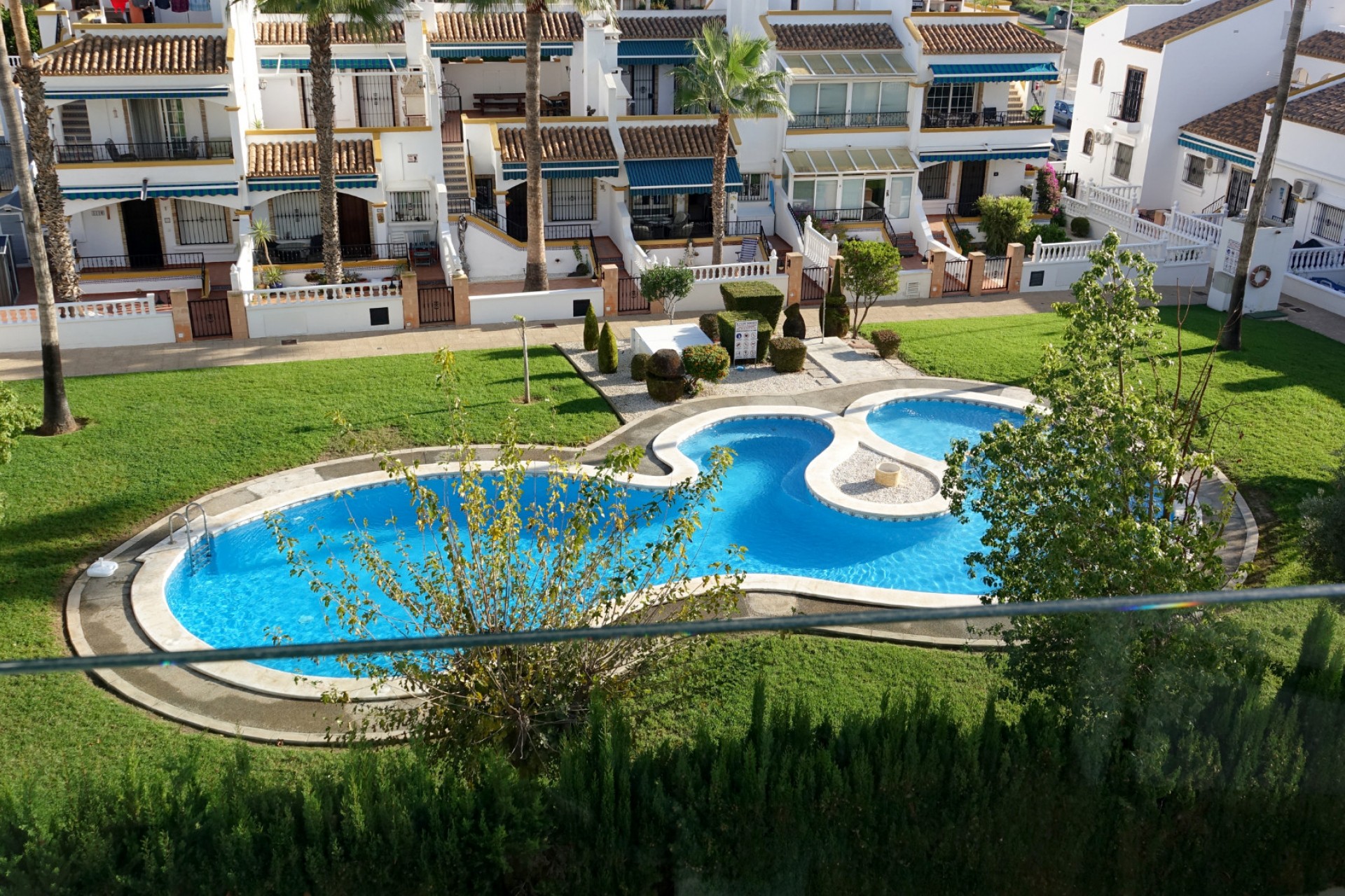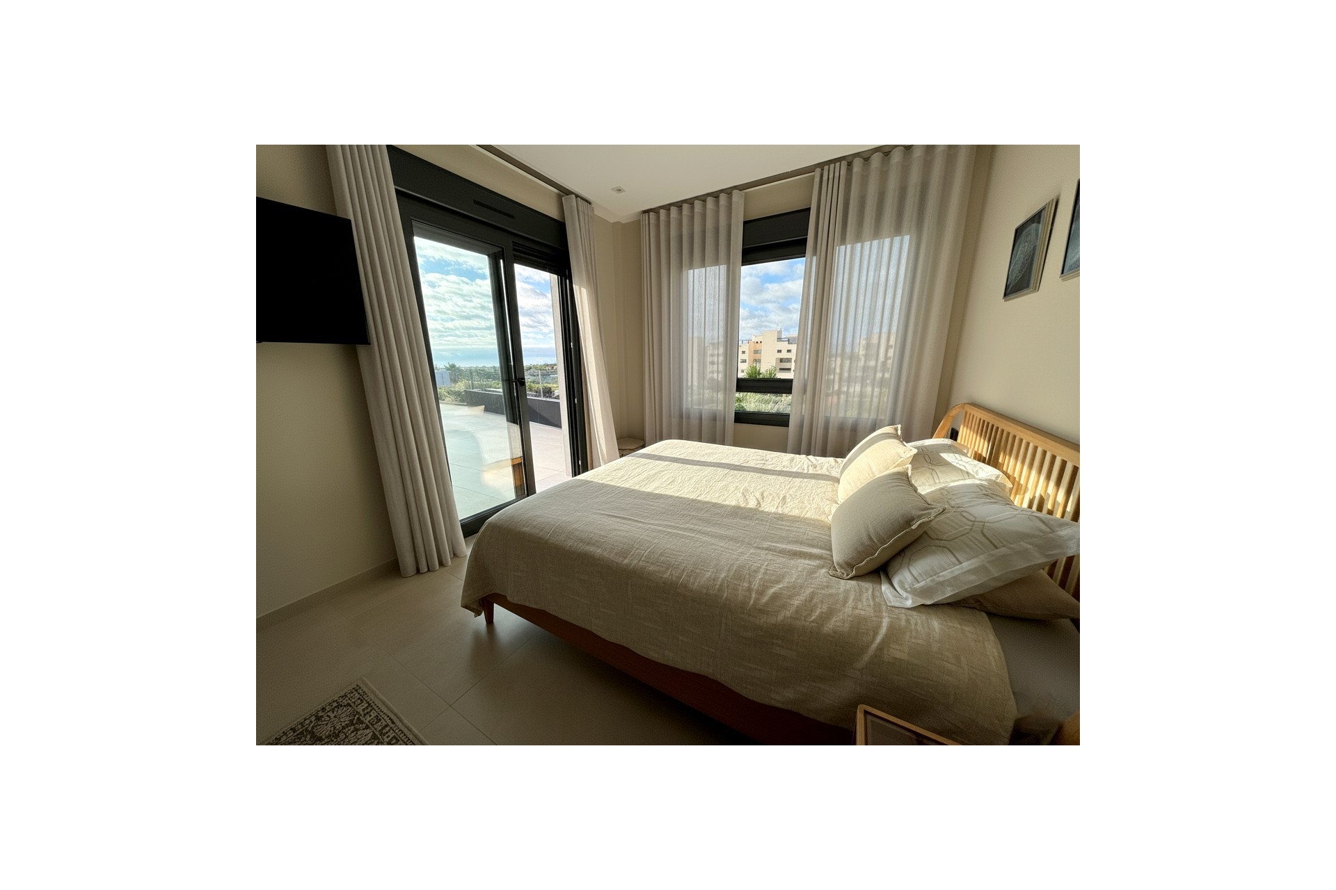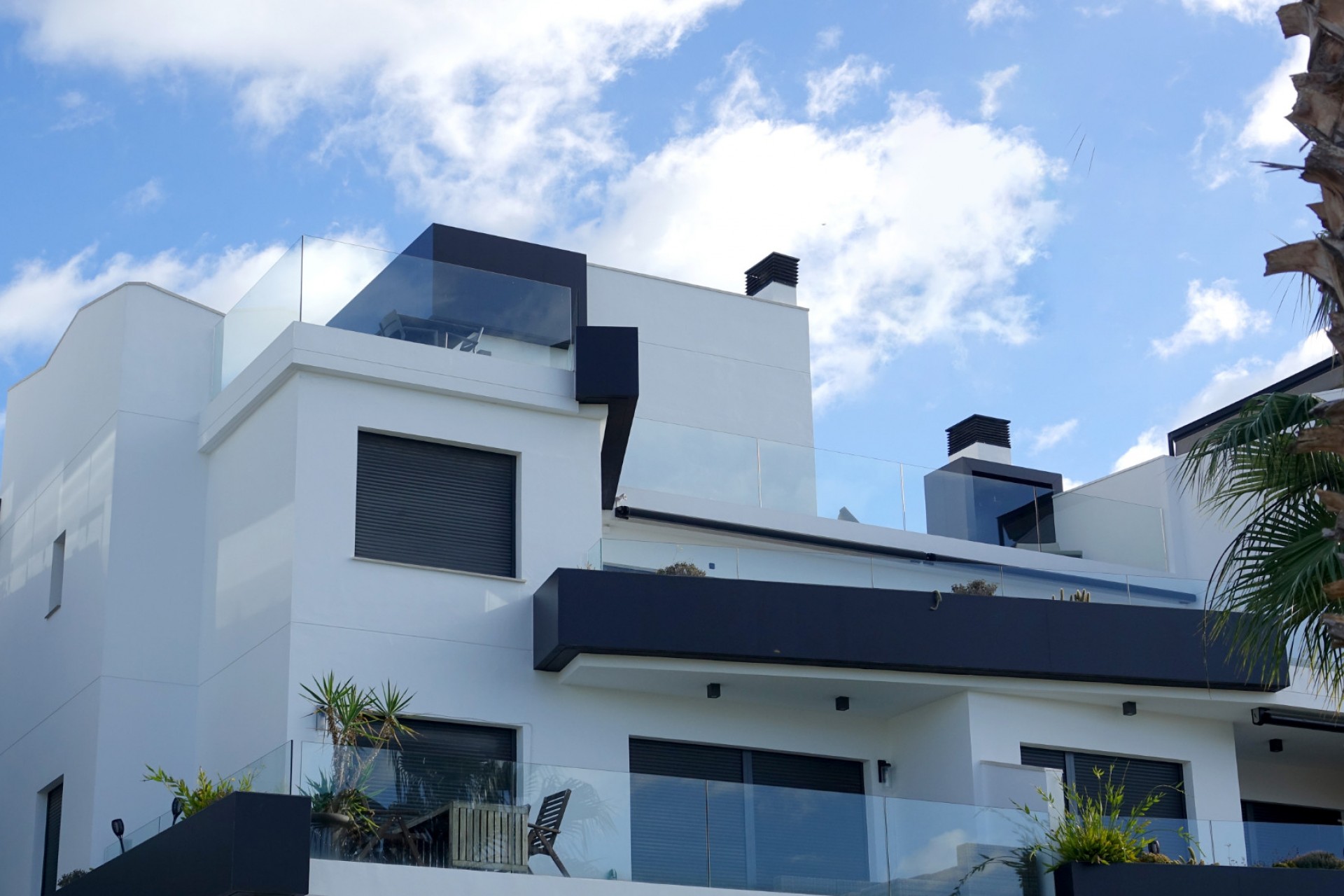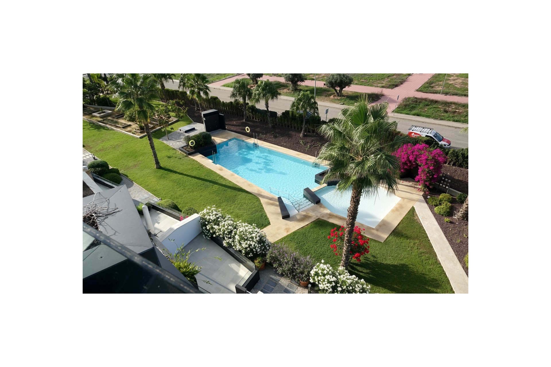 Denna lyxiga takvåning med hög standard ligger i Villamartin, i ett gated community med faciliteter som gym, spa, grönområden och gemensam pool. Den har ett oslagbart läge, nära stormarknader, restauranger, barer, butiker, det kommersiella centrumet La Zenia Boulevard, golfbanan Villamartin och nära stränderna. Takvåningen har 3 sovrum med inbyggda garderober + 2 badrum med duschkabiner och golvvärme. Denna moderna takvåning är mycket ljus och har stora fönster och glasdörrar. Det finns en enorm terrass på 76m2 med utgång från vardagsrummet och sovrummet. Utöver det finns det också ett massivt solarium på 116 m2 med sommarkök, grill och en privat pool med fantastisk utsikt ända ner till havet! Denna takvåning säljs fullt möblerad med alla apparater och dessutom har den 3 parkeringsplatser i underjordiska garage + 3 förråd! Fantastisk möjlighet, perfekt hus i perfekt skick och i perfekt läge! Ring oss och boka ditt besök!
