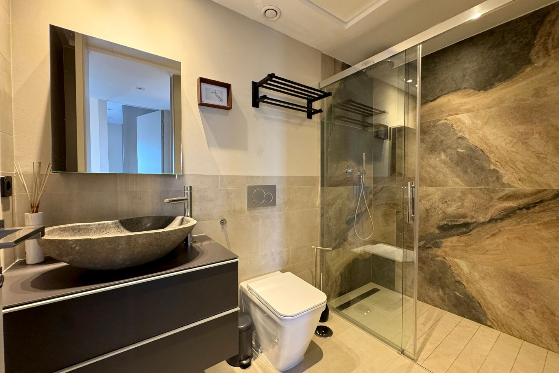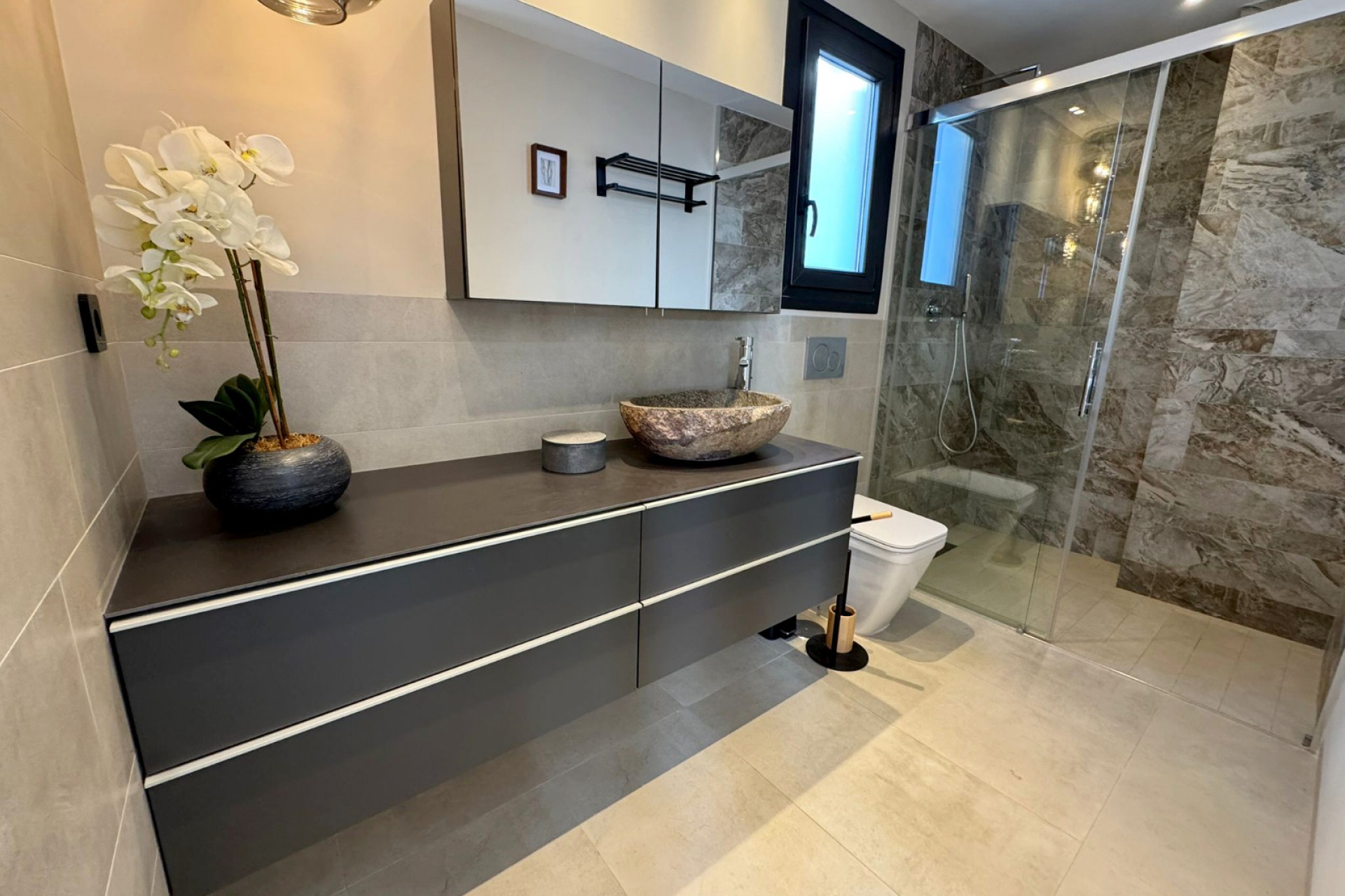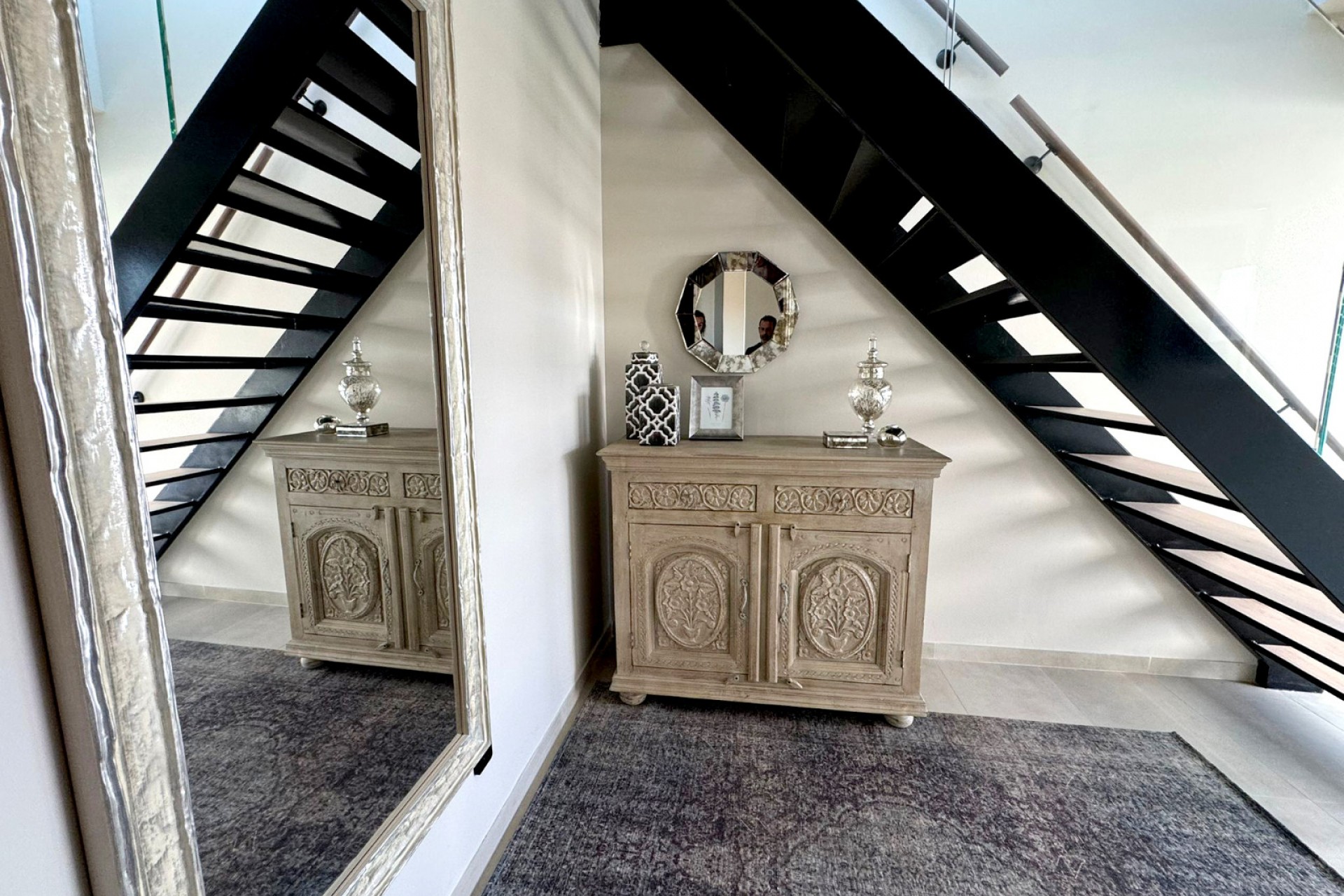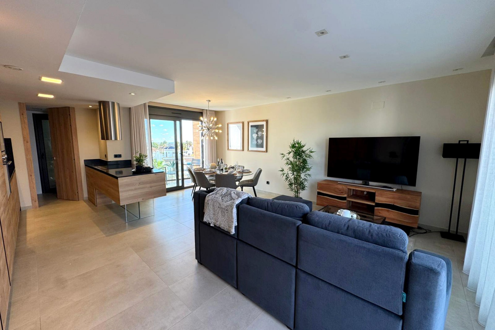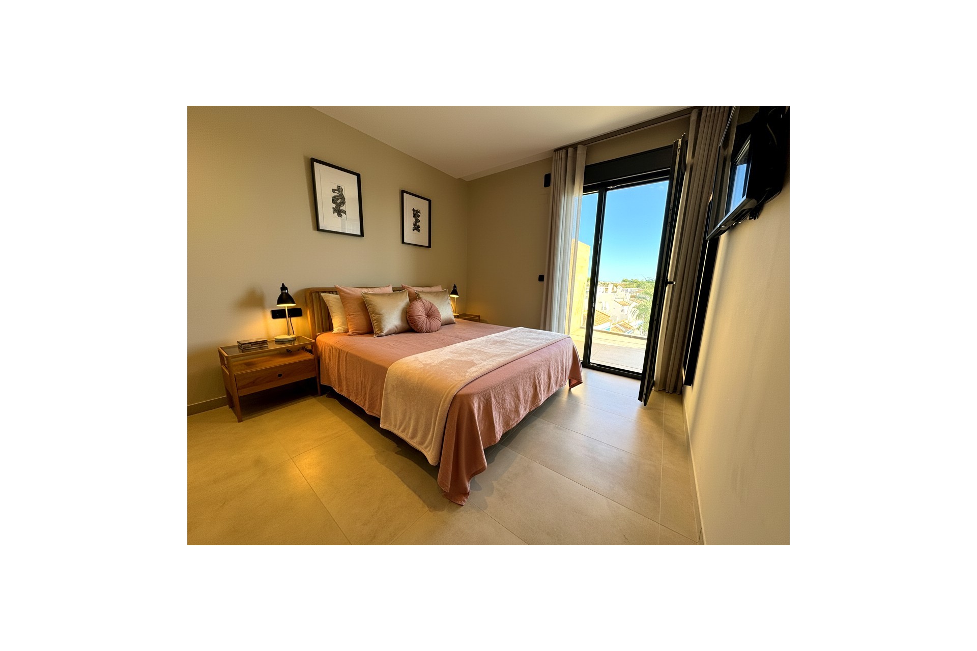 Denna lyxiga takvåning med hög standard ligger i Villamartin, i ett gated community med faciliteter som gym, spa, grönområden och gemensam pool. Den har ett oslagbart läge, nära stormarknader, restauranger, barer, butiker, det kommersiella centrumet La Zenia Boulevard, golfbanan Villamartin och nära stränderna. Takvåningen har 3 sovrum med inbyggda garderober + 2 badrum med duschkabiner och golvvärme. Denna moderna takvåning är mycket ljus och har stora fönster och glasdörrar. Det finns en enorm terrass på 76m2 med utgång från vardagsrummet och sovrummet. Utöver det finns det också ett massivt solarium på 116 m2 med sommarkök, grill och en privat pool med fantastisk utsikt ända ner till havet! Denna takvåning säljs fullt möblerad med alla apparater och dessutom har den 3 parkeringsplatser i underjordiska garage + 3 förråd! Fantastisk möjlighet, perfekt hus i perfekt skick och i perfekt läge! Ring oss och boka ditt besök!