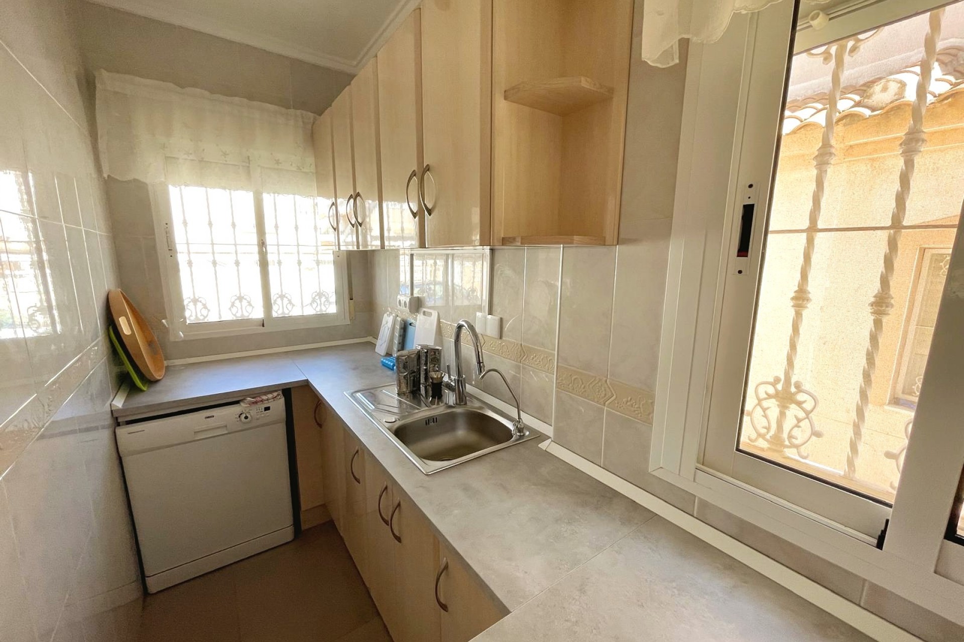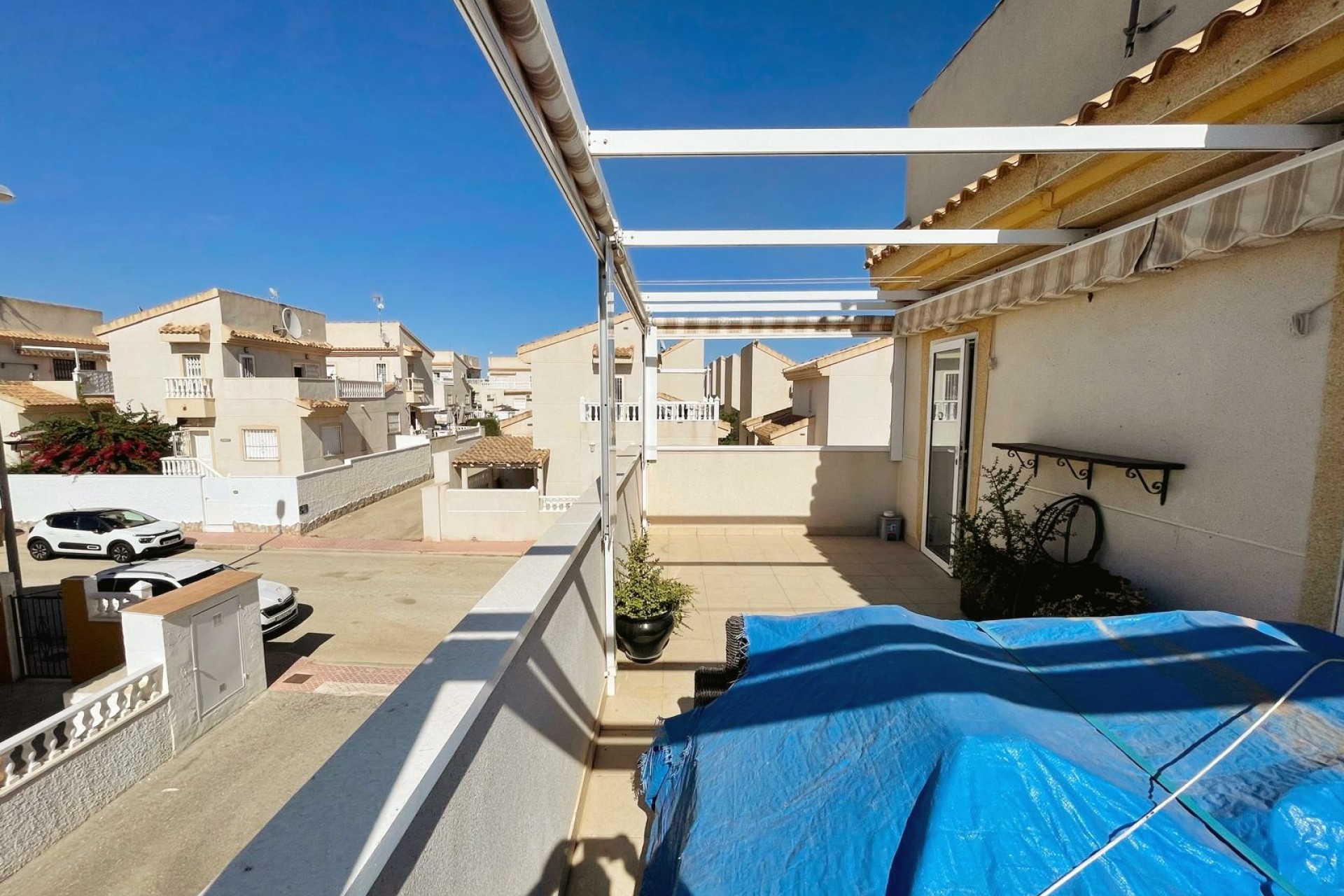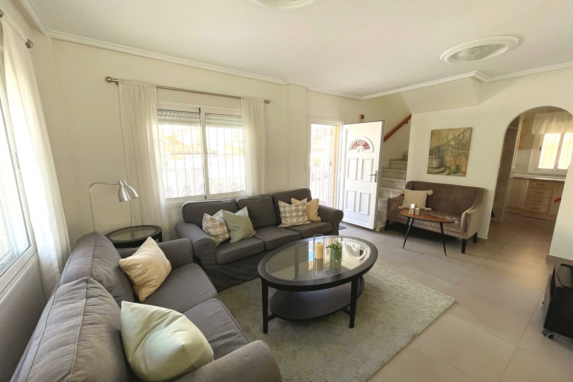 En populär villa i Jazmine-stil presenteras till salu i utmärkt skick och har underhållits till en mycket hög standard. Denna fastighet erbjuder ett rymligt boende med 2 sovrum och 2 badrum, som har omvandlats till en 2-rumsversion med ett utökat vardagsrum och separat matplats. På bottenvåningen finns det stora vardagsrummet/matsalen med tre fönster som släpper in naturligt ljus. Ett komplett renoverat "L"-kök är också utökat vilket ger extra utrymme och är perfekt inrett. En trappa leder upp till första våningen med tillgång till sovrummet och badrummet. Det finns en glasdörr från denna avsats som öppnar upp mot en privat takterrass. Terrassdörrar från sovrummet öppnar också upp mot samma terrass. Utomhus erbjuder denna fastighet ett utmärkt avkopplings- och underhållningsutrymme som har förbättrats med markiser och sittgrupper. Fastigheten har exceptionella förvaringsutrymmen. Visning rekommenderas starkt eftersom denna fastighet har mycket mer att erbjuda.