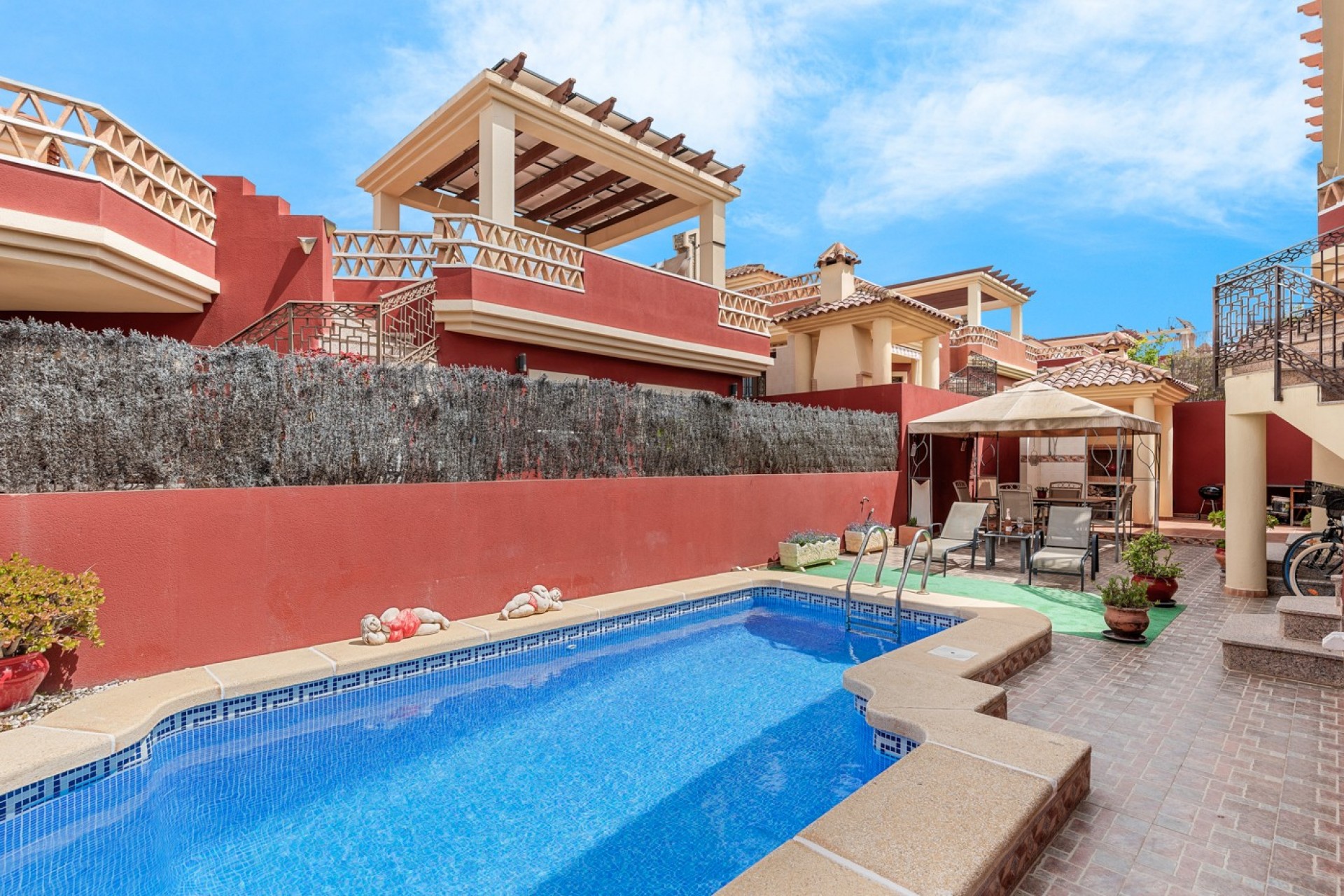 Denna charmiga villa i sydvästläge ligger i det lugna området Lo Crispín, alldeles i utkanten av Ciudad Quesada. Den har 3 rymliga sovrum, 2 badrum, en privat pool på 8x3m och en inbyggd terrass perfekt för avkoppling eller underhållning. Njut av solsken året runt på den privata takterrassen som också har vatten och el. Huset ligger inom gångavstånd till restauranger och barer, vilket gör det idealiskt beläget för både lugnt boende och bekvämlighet. Fastigheten har parkering på tomten och en terrass vid entrén. Huset säljs med möbler, och - Larm - Möblerad - Söderläge - Integrerad luftkonditionering - Vedeldad spis - Ny poolpump - Nyrenoverad pool med LED-belysning IBI: 415 Euro Lo Crispín är ett bostadsområde beläget i kommunen Algorfa, i Vega Baja del Segura-regionen, provinsen Alicante. Det är strategiskt beläget, nära städer som Rojales, Benijófar och Formentera del Segura, och bara några minuter från motorvägen AP-7, vilket ger enkel tillgång till Medelhavets stränder och flygplatserna i Alicante och Murcia.