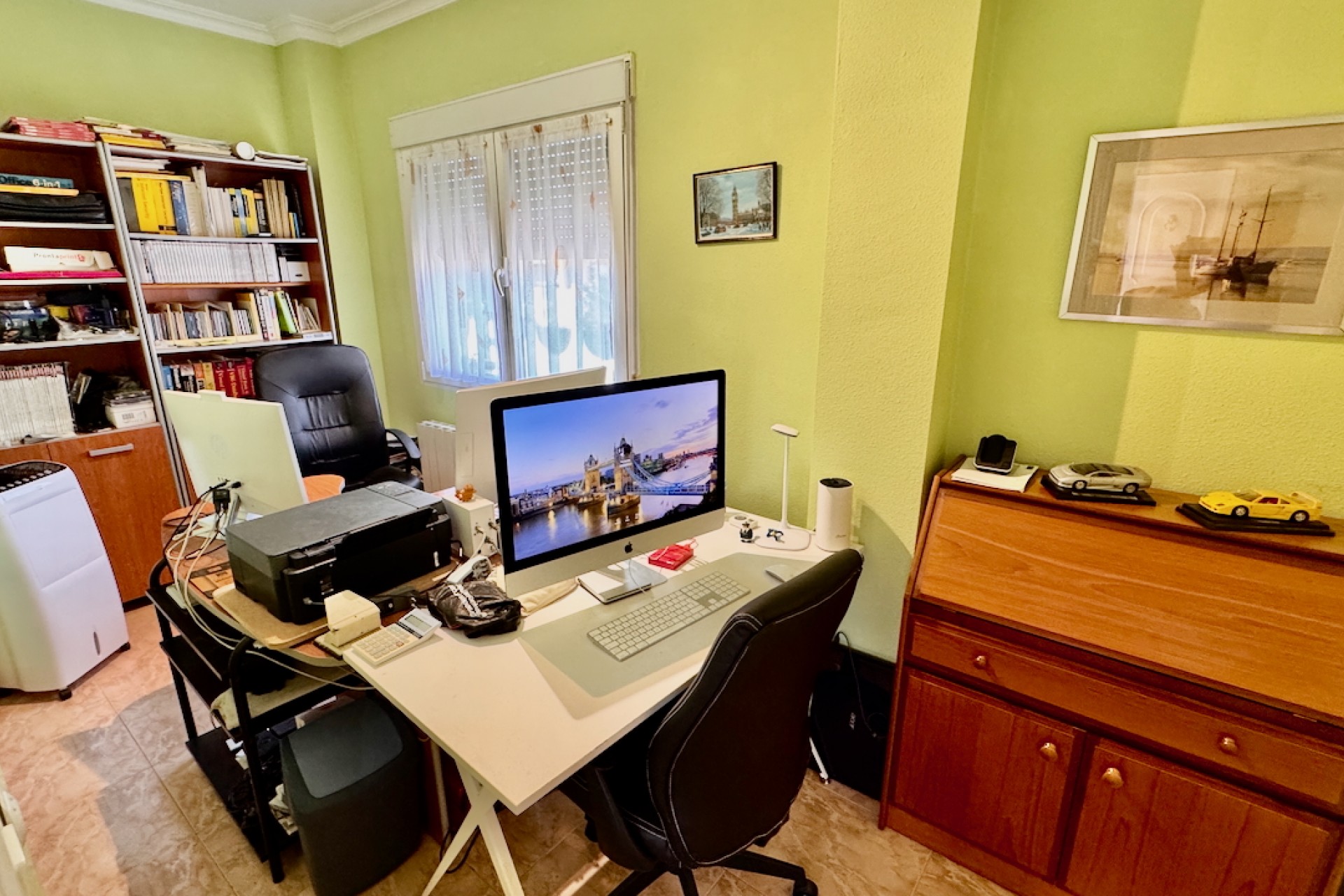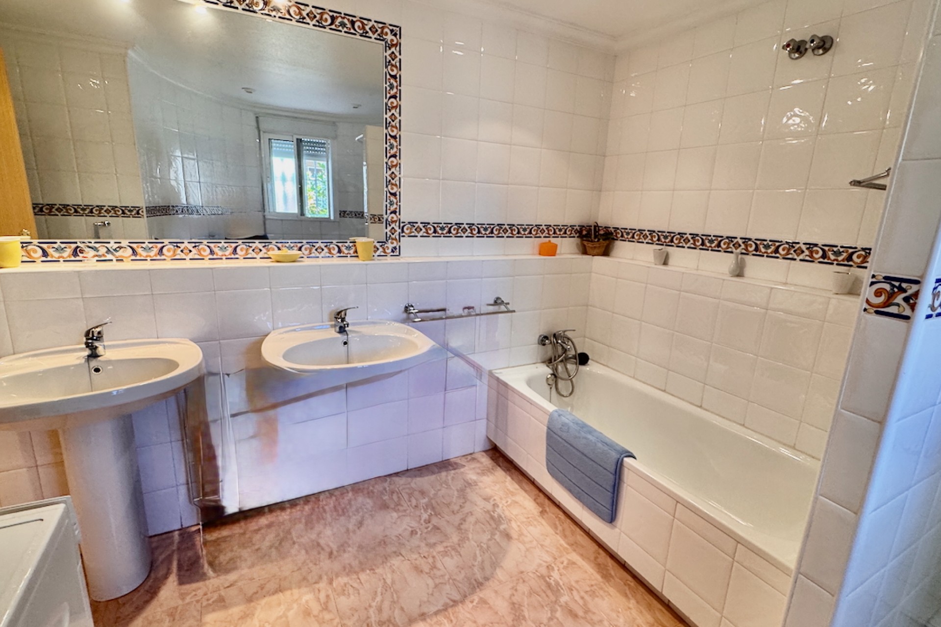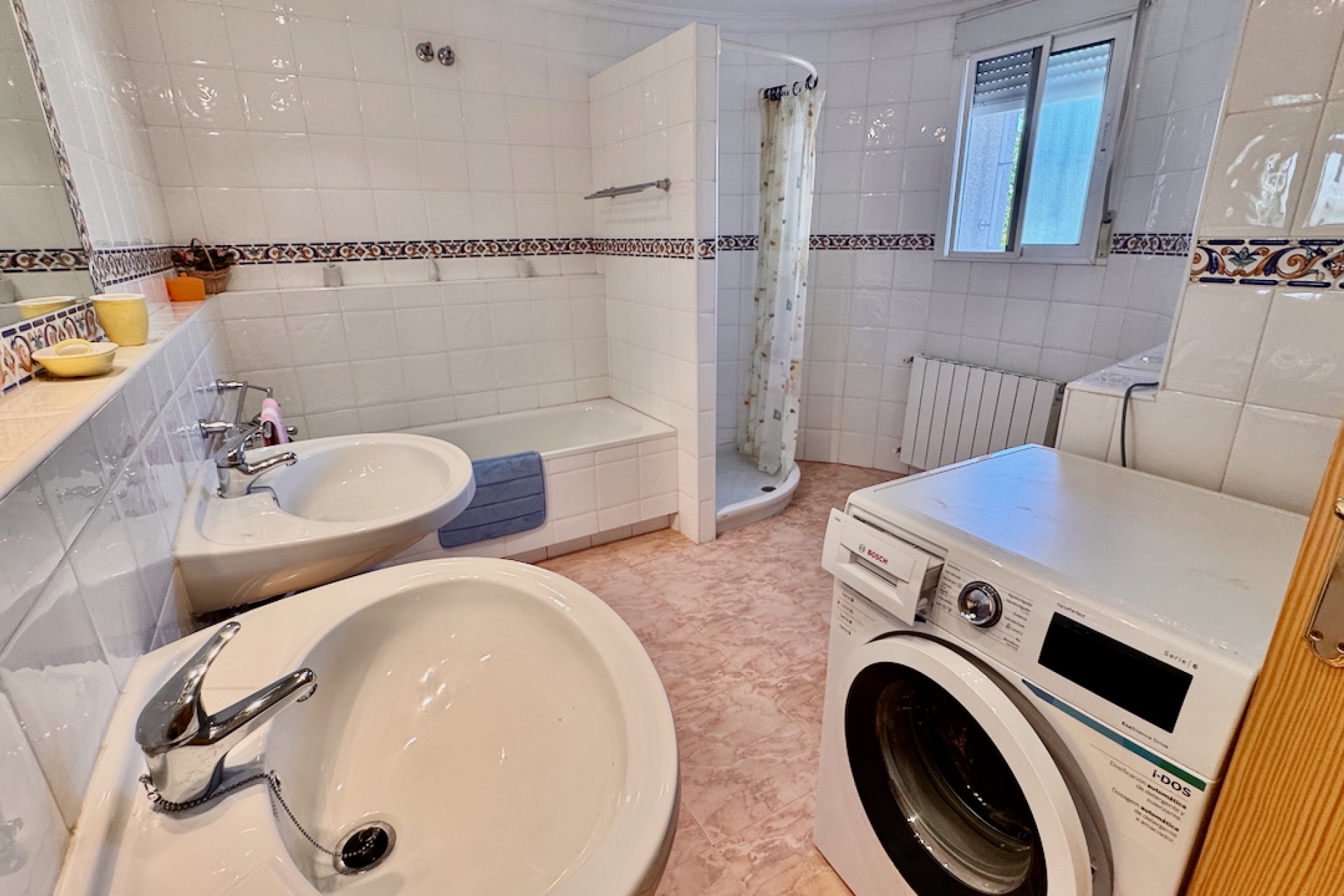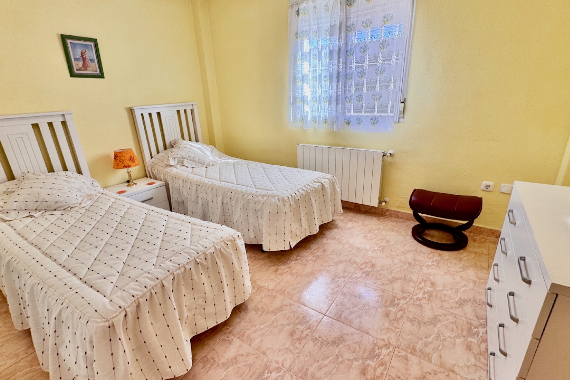 Fastigheten är designad för modernt boende och inkluderar luftkonditionering och oljebaserad centralvärme för komfort året runt, samt en öppen spis för extra charm under de kallare månaderna. Sovrummen med eget badrum erbjuder avskildhet och bekvämlighet, medan inbyggda garderober ger gott om förvaring. Ett separat kök med vitvaror säkerställer praktiska möjligheter, tillsammans med ett grovkök och ett stort förråd för extra utrymme.