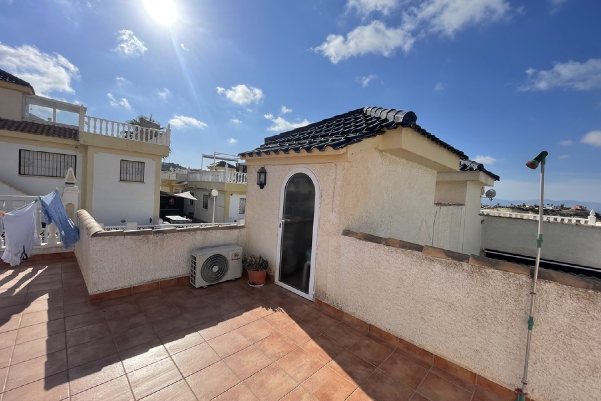 Ljust och rymligt radhus med 3 sovrum i Ciudad Quesada – Uteplats runtomkring och utsikt över golfbananUpptäck detta vackert presenterade radhus med 3 sovrum och 3 badrum i det eftertraktade området Ciudad Quesada, som erbjuder generöst utomhusutrymme, mångsidigt boende och fantastisk utsikt över La Marquesa golfbana.Fastigheten har en uteplats runtomkring och en inglasad veranda, perfekt för året runt-njutning. På nedervåningen finns en rymlig källare med ett stort sovrum med dubbelsäng och ett eget duschrum – perfekt för gäster eller den utökade familjen.Bostadsvåningen har ett ljust vardagsrum och ett välutrustat kök, tillsammans med två sovrum med inbyggda garderober och takfläktar, plus ett familjebadrum. Från vardagsrummet kommer du ut till en charmig innergård med uteplats, helt inglasad i väggar för avskildhet och värme – perfekt för mysiga vinterkvällar. En trappa leder upp till ett stort solrum där du kan njuta av panoramautsikt över golfbanan och den omgivande landsbygden. Detta hem ligger bara 5 minuters promenad från lokala bekvämligheter och erbjuder den perfekta blandningen av komfort, bekvämlighet och livsstil. Kontakta oss idag för att boka en visning eller begära en virtuell rundtur!