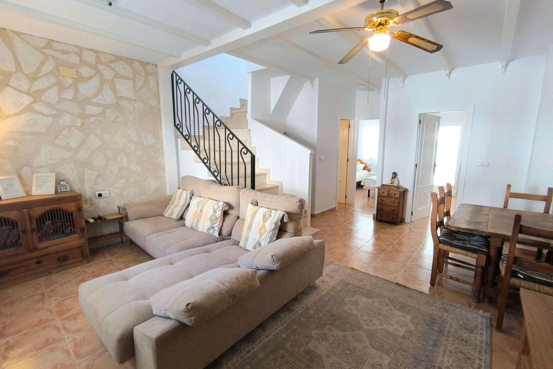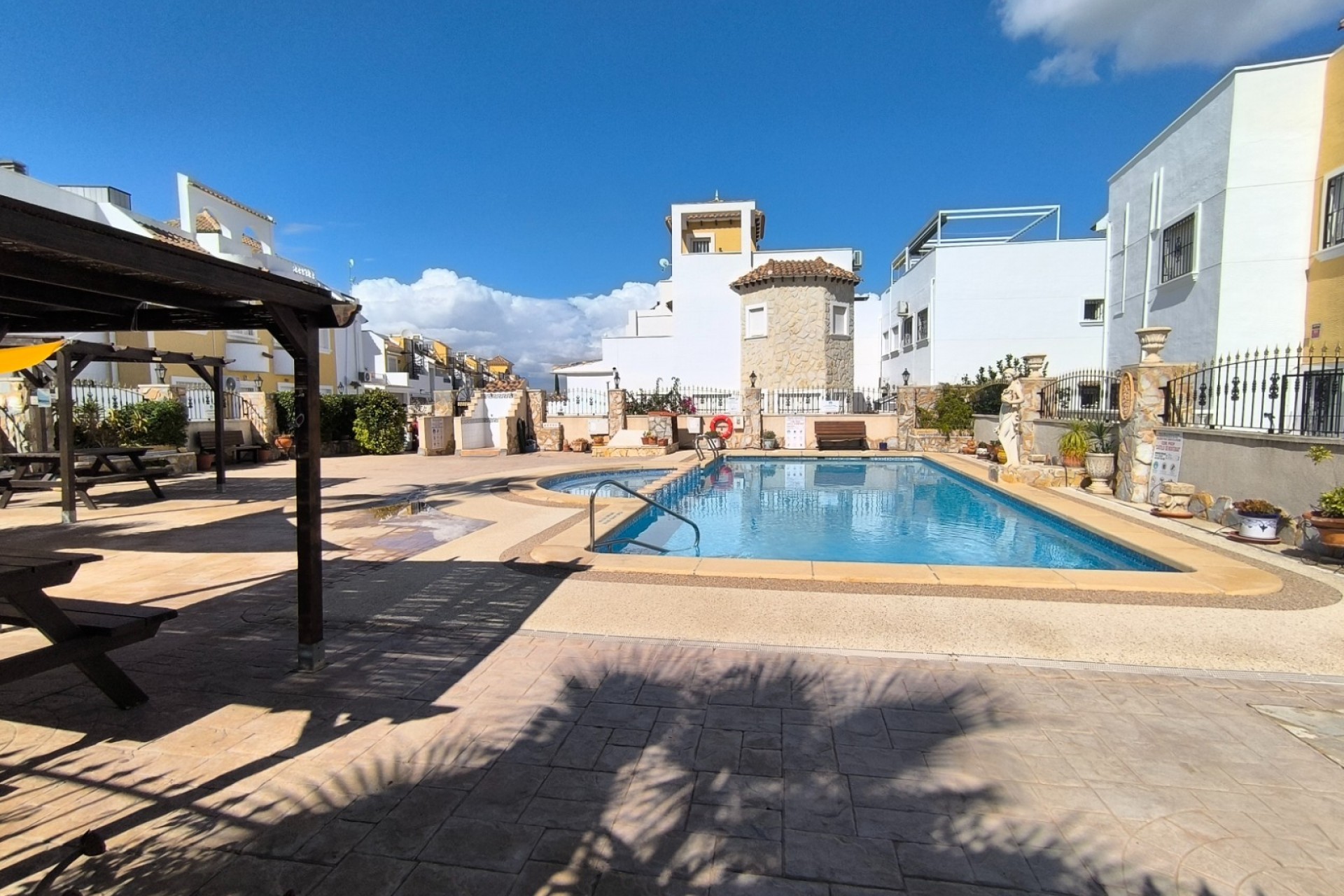 **KOMMER SNART** Upptäck denna förtjusande radhusfastighet inbäddad i den eftertraktade urbanisationen Montemar, Algorfa. Detta rymliga och naturligt ljusa hem erbjuder en perfekt blandning av komfort och stil, perfekt för dem som vill omfamna medelhavslivsstilen. Stig in för att hitta ett generöst vardagsrum och matplats med trappor upp till första våningen. Köket är utrustat med en rad inbyggda skåp och vitvaror, vilket gör det till en fröjd att laga mat. Ett sovrum med dubbelsäng och duschrum på bottenvåningen ger bekvämt boende för gäster eller familjemedlemmar. Gå upp till en central avsats som leder till ytterligare två dubbelrum, tillsammans med ett renoverat badrum med duschkabin. Njut av den fantastiska terrassen i västerläge, perfekt för kvällssolnedgångar, och ett soldränkt solarium som nås via en utvändig trappa, perfekt för att njuta av solen. Utanför har terrassen utökats för att ge gott om plats för stolar och solstolar, och hela området har kaklats om. Den gemensamma poolen och trädgårdsområdet erbjuder en fantastisk plats att koppla av och varva ner. Beläget inom gångavstånd från Algorfa Hotel och nära barer, restauranger och närbutiker i La Finca Commercial Centre, är detta hem inte bara en fastighet; det är en livsstil som väntar på att omfamnas. Missa inte denna fantastiska möjlighet!